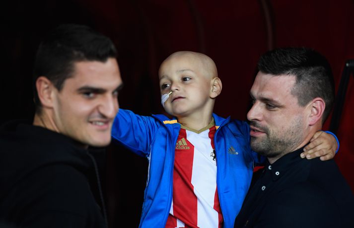 Everton gaf 200.000 pund í söfnun fyrir krabbameinsveikan dreng Ingvi Þór Sæmundsson skrifar 12. september 2016 22:24 Bradley heilsar Ashley Williams, varnarmanni Everton. vísir/getty Bradley Lowery, fimm ára enskur drengur sem glímir við krabbamein, leiddi Jermain Defoe, fyrirliða Sunderland, inn á völlinn þegar liðið mætti Everton á Ljósvangi í kvöld. Bradley litli greindist með krabbamein þegar hann var aðeins eins árs. Hann gekkst undir viðamikla aðgerð árið 2014 þar sem meinið var fjarlægt. En krabbameinið lét aftur á sér kræla í sumar. Meðferðin sem Bradley þarfnast er ekki í boði í Bretlandi og hann þarf því að fara til Bandaríkjanna. Það kostar sitt, nánar tiltekið 700.000 pund, og fjölskylda Bradleys setti af stað söfnun fyrir meðferðinni. Bradley fékk að leiða Defoe inn á völlinn í kvöld og það vakti mikla athygli á söfnuninni. Eftir leikinn bárust svo fréttir af því að Everton hefði gefið 200.000 pund í söfnunina. Félagið greindi einnig frá því að Bradley yrði boðið á leik Everton og Sunderland á Goodison Park seinna á tímabilinu og að áritaðar treyjur frá leiknum í kvöld yrðu settar á uppboð til styrktar söfnuninni. Fjölmargir hafa lagt söfnuninni lið í kvöld en um 500.000 pund hafa þegar safnast.Everton Football Club has pledged a donation of £200,000 to support @Bradleysfight in his brave battle. Donate here: https://t.co/fxR5tYwG5L— Everton (@Everton) September 12, 2016 Enski boltinn Mest lesið Salah skráði sig á spjöld sögunnar í endurkomunni í dag Enski boltinn „Ég bið Lionel Messi innilega afsökunar“ Fótbolti Tvö sjálfsmörk færðu Arsenal fimm stiga forkost á toppnum Enski boltinn Körfuboltakvöld: Tilþrif tímabilsins til þessa Körfubolti „Stundum þarf maður heppni“ Enski boltinn Viktor Bjarki skoraði enn eitt markið Fótbolti Ian Rush lagður inn á sjúkrahús Enski boltinn „Ég held að þetta hafi ekki verið kveðjustund“ Enski boltinn „Verstu 48 klukkustundirnar“ síðan að hann kom til Chelsea Enski boltinn Jónína Þórdís gældi við þrennuna og Ármann fór áfram í bikarnum Körfubolti Fleiri fréttir Salah skráði sig á spjöld sögunnar í endurkomunni í dag „Stundum þarf maður heppni“ Tvö sjálfsmörk færðu Arsenal fimm stiga forkost á toppnum „Verstu 48 klukkustundirnar“ síðan að hann kom til Chelsea Fulham vann í markaleik á Turf Moor Ian Rush lagður inn á sjúkrahús „Kannski áttum við heppnina skilið í dag“ „Ég held að þetta hafi ekki verið kveðjustund“ „Þegar þú spilar fyrir Liverpool verðurðu bara að vinna leiki“ Salah lagði upp í endurkomunni en Ekitike sá um mörkin Palmer skoraði í fyrsta sinn síðan í september Mesta heillaskref ferilsins að hafa verið rekinn Varalesturinn flæktist fyrir þýska tvíeykinu „Held að ég gæti ekki hætt í fótbolta“ Salah snýr aftur eftir sáttafundinn Isak tæpur og Gakpo frá Rooney var hótað lífláti eftir að hann fór til Man Utd Slot fundar með Salah í dag: „Mun ákvarða hver næstu skref verða“ „Liverpool hefði ekkert unnið ef það væri ekki fyrir Mo Salah“ Kærasta Haaland hefur fengið nóg Girti niður um liðsfélagann í markafagni Skuldir Man United nú meira en 127 milljarðar Tóku hetjuna með sér í Evrópuleikinn Af hverju spila ekki fleiri konur Fantasy? Býður Salah velkominn til Sádi-Arabíu Mjög hættulegur vítahringur að mati Arteta Henry ekki hrifinn af hegðun Arsenal-manna í leikslok Sádi-arabísk félög sögð vilja kaupa Mo Salah „Ekki gleyma mér“ Þrír sem Jökull þolir ekki: „Hann er algjört gerpi“ Sjá meira