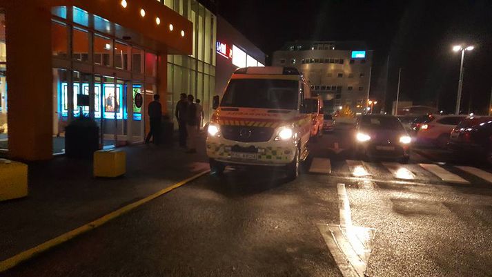 Sjúkralið sinnti útkalli í Kringlunni Nína Hjördís Þorkelsdóttir skrifar 11. september 2016 22:41 Sjúkrabílar á planinu við 2. hæð Kinglunnar í kvöld. Vísir Sjúkralið var kallað út um klukkan tíu í kvöld en maður hné niður við inngang kaffihúsins Café Roma í Kringlunni. Samkvæmt sjónvarvottum voru tvær sjúkrabifreiðir auk tveggja lögreglubíla sendar á vettvang og var maðurinn færður inn í aðra þeirra. Töluverður fjöldi fólks var á bílaplaninu og varð vitni að aðgerðum sjúkraflutningsmanna og lögreglumanna. Um er að ræða innganginn í Kringlubíó. Slökkvilið gat ekki veitt nánari upplýsingar um útkallið að svo stöddu en staðfesti að um veikindi hefði verið að ræða.Mynd af vettvangi.MYND/vísir Mest lesið Samþykktu aldrei að Sanna fengi oddvitasætið Innlent Minnir á hvernig Hitler komst til valda Innlent Þjóðverjar yfirgefa Grænland Erlent Rúmlega tuttugu látnir eftir árekstur tveggja hraðlesta Erlent Önnur stúlka með móður sinni þegar Högni var klófestur Innlent Vilja beita „ofurvopni“ ESB gegn Bandaríkjunum Erlent Líkir kærunni við „faglega aftöku“ Innlent Sambandið aldrei verra: Ísland gæti bæst á listann Innlent Ræddi við Trump: „Hlakka til að sjá hann“ Erlent Boðar leiðtogaráðið á aukafund vegna hótana Trumps Erlent Fleiri fréttir Samþykktu aldrei að Sanna fengi oddvitasætið Minnir á hvernig Hitler komst til valda VG og Sanna sameina krafta sína Sala á grænlenskum á Íslandi nær tvöfaldast Ekkert athugavert við fundinn og stjórnin starfshæf Stjórnvöld „í blindflugi“ í menntamálum í rúman áratug Haldið upp á 80 ára afmæli Hveragerðis allt afmælisárið Sambandið aldrei verra: Ísland gæti bæst á listann Dæmi um að nemendur hafi aldrei mætt í leikfimi Grænlandstollar vonbrigði og verðbólga spillir kjarasamningum Stöðugleikasamningarnir gætu sprungið strax í haust Heimsmálin, Grænland, menntun og fjölmiðlun á Sprengisandi Karólína Helga skákaði sitjandi oddvita í Hafnarfirði Ísland standi með Grænlandi og Danmörku Vonar að skólarnir verði frjálsir frá símum í haust Álagning aldrei hærri: Eldsneytisverð hefði átt að lækka enn frekar Líkir kærunni við „faglega aftöku“ „Vegferð ákæruvaldsins til skammar“ Menntamálaráðherra tekur yfir hjúkrunarheimilin Fjögur handtekin á Akureyri grunuð um innbrot Viðvarandi óvissuástand bitni á langtímaáætlunum fyrirtækja Einn endaði á hliðinni og þrjú klemmdust á milli Var í símanum við neyðarlínuna þegar ekið var aftan á hann Ákvörðunin á ábyrgð stjórnenda Icelandair en ekki flugmanna „Hef hvergi hallað réttu máli“ Önnur stúlka með móður sinni þegar Högni var klófestur Fá þau að vera aftur á lista með Hildi? Fimm bíla árekstur á Reykjanesbraut og tveir fluttir á slysadeild Eigum eftir að sjá hvort Guðbrandur bæti upp fyrir hegðun sína Umfangsmikil lögregluaðgerð við Glerárgötu á Akureyri Sjá meira