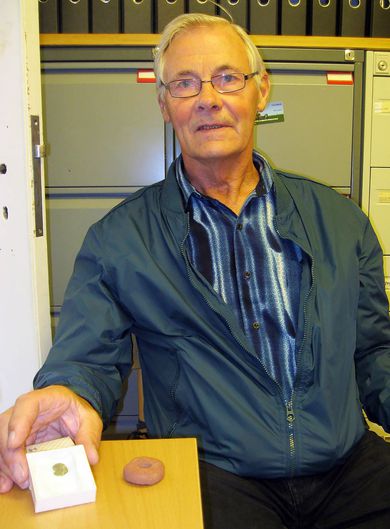 Mynt frá því er Ólafur kyrri réð ríkjum yfir Íslandi var skilað til minjavarðar Norðurlands í síðustu viku. Peningurinn fannst skömmu eftir heimsstyrjöldina síðari en ástæða þess að honum var skilað nú er fréttaflutningur af fornminjafundi liðinnar viku. „Þetta er mynt sem hefur fylgt mér lengi. Ég held ég hafi fundið hana skömmu fyrir 1950,“ segir Hermann Jónsson, fyrrverandi hafnarvörður á Akureyri.Hermann Jónsson með myntina.„Ég var bara patti, um sjö ára að ég held, að leika mér að bílum í moldinni heima þegar ég rakst á hann. Einhverra hluta vegna ákvað ég að taka hann upp. Síðan þá hef ég geymt myntina.“ Hermann ólst upp á Mýlaugsstöðum í Aðaldal en flutti til Akureyrar árið 1963. Peningurinn var með í för. Hann segist lengi hafa ætlað sér að fara með hann til minjavarðar en það hafi alltaf gleymst þar til nú. „Ég fór með hann núna í síðustu viku eftir að það var sagt frá sverðinu sem fannst í Skaftárhreppi. Það var vítamínsprautan sem þurfti til,“ segir Hermann. Peningurinn er tæpir fimmtán millimetrar í þvermál og úr silfri. Fyrri eigandi hans hefur sennilega notað hann sem hálsmen því á einum stað í jaðri hans hefur verið gert lítið gat. Þar má ímynda sér að snæri hafi verið dregið í gegn og myntin sett um háls einhvers. „Peningurinn hefur örlítið látið á sjá síðan ég fann hann því ég man að fyrst þegar ég fann hann var gatið heilt. Hann hefur aðeins tærst upp en táknin á báðum hliðum sjást enn nokkur greinilega. Tíminn vinnur á honum líkt og öðrum hlutum.“ Mynt frá þessum tíma er afar fágæt, bæði hér á landi sem og í öðrum löndum, segir Anton Holt myntsérfræðingur. Þó hafa nokkrar slíkar fundist hér víða um land. „Það eru helst Þingvellir sem skera sig úr hvað fjölda fundinna mynta varðar enda fornleifauppgreftir þar verið reglulegir,“ segir Anton. Fréttin birtist fyrst í Fréttablaðinu.