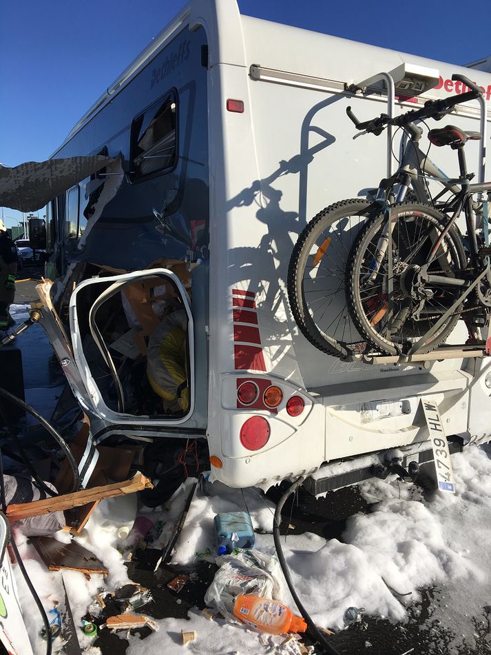 Sprenging þegar metangasi var dælt á própangaskút á stöð N1 við Bíldshöfða Atli Ísleifsson skrifar 27. september 2016 14:06 Sprenging varð þegar erlendur ferðamaður reyndi að dæla metangasi á própangaskút í húsbíl á stöð N1 við Bíldshöfða á öðrum tímanum í dag. Eggert Þór Kristófersson, forstjóri N1, segir að engar upplýsingar hafi fengist um slys á fólki. Slökkvilið var sent á vettvang vegna sprengingarinnar.Vísir/Friðrik þór halldórssonMynd/Jarosław GaniecVísir/Friðrik þór halldórsson Tengdar fréttir Metanleki á stöð N1 við Bíldshöfða Slökkvilið hefur sent bíla á vettvang. 27. september 2016 13:38 Mest lesið Önnur stúlka með móður sinni þegar Högni var klófestur Innlent Líkir kærunni við „faglega aftöku“ Innlent Boðar 10 prósenta toll á Norðurlönd, Breta, Frakka, Þjóðverja og fleiri Erlent Var í símanum við neyðarlínuna þegar ekið var aftan á hann Innlent Þúsundir baula á bandaríska sendiherrann Erlent Danmörk „pínulítið land“ með „pínulítinn her“ Erlent Einn endaði á hliðinni og þrjú klemmdust á milli Innlent Álagning aldrei hærri: Eldsneytisverð hefði átt að lækka enn frekar Innlent Menntamálaráðherra tekur yfir hjúkrunarheimilin Innlent „Hef hvergi hallað réttu máli“ Innlent Fleiri fréttir Karólína Helga skákaði sitjandi oddvita í Hafnarfirði Ísland standi með Grænlandi og Danmörku Vonar að skólarnir verði frjálsir frá símum í haust Álagning aldrei hærri: Eldsneytisverð hefði átt að lækka enn frekar Líkir kærunni við „faglega aftöku“ „Vegferð ákæruvaldsins til skammar“ Menntamálaráðherra tekur yfir hjúkrunarheimilin Fjögur handtekin á Akureyri grunuð um innbrot Viðvarandi óvissuástand bitni á langtímaáætlunum fyrirtækja Einn endaði á hliðinni og þrjú klemmdust á milli Var í símanum við neyðarlínuna þegar ekið var aftan á hann Ákvörðunin á ábyrgð stjórnenda Icelandair en ekki flugmanna „Hef hvergi hallað réttu máli“ Önnur stúlka með móður sinni þegar Högni var klófestur Fá þau að vera aftur á lista með Hildi? Fimm bíla árekstur á Reykjanesbraut og tveir fluttir á slysadeild Eigum eftir að sjá hvort Guðbrandur bæti upp fyrir hegðun sína Umfangsmikil lögregluaðgerð við Glerárgötu á Akureyri Öryrkjar eru með hærri laun en eldri borgarar Borgarstjóri fór með rangt mál Gagnrýnin hugsun skipti máli Krafa um að Margrét Löf verði gerð arflaus fer fyrir Landsrétt Hófu niðurrif á félagsheimilinu í leyfisleysi: „Skaðinn er skeður“ Fjórir slást um oddvitasæti Viðreisnar Afsögn þingmanns, hótanir Trumps og í beinni frá Svíþjóð Mun hærri dánartíðni og meiri örorka hjá fyrrum vöggustofubörnum „Í mínum huga eru þetta klárar ærumeiðingar“ Vilja Laugardalshöll líkt og þeim var lofað Kviknaði í Svarta sauðnum í Þorlákshöfn Taldi ekki sérstaka nauðsyn á að hneppa Helga Bjart í varðhald Sjá meira