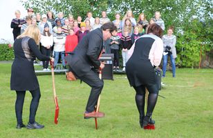 Hoppandi heilbrigðisráðherra á Hvolsvelli Kristján Þór Júlíusson heilbrigðisráðherra þurfti að hoppa og taka vel á því á skóflunni þegar hann tók fyrstu skóflustunguna að nýrri viðbyggingu við dvalar- og hjúkrunarheimilið Kirkjuhvol á Hvolsvelli í dag. 26. ágúst 2016 18:19
