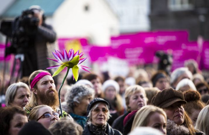Myndaveisla frá Kvennafrídeginum: „Það velur engin kona að fá lægri laun en karl“ Tryggvi Páll Tryggvason skrifar 24. október 2016 17:32 Það var gríðarlega vel mætt á Austurvöll í dag. Vísir/Ernir Þúsundir kvenna söfnuðust saman á Austurvelli eftir að hafa lagt niður störf klukkan 14.38. Kvennafrídagurinn fór fram í fjórða sinn í dag. „Það velur engin kona að vera kúguð. Það velur engin kona að fá lægri laun en karl. Ef ójafnrétti væri sjálfstætt val þá værum við ekki hér," sagði Una Torfadóttir en kynslóðir kvenna ávörpuðu fundinn sem stýrt var af Ólafía Hrönn Jónsdóttur og Katrínu Halldóru Sigurðardóttur. Baráttufundnir voru einnig haldnir á Akureyri, Grundarfirði, Hellu, Höfn í Hornafirði, Neskaupstað og Þorlákshöfn en hér að neðan má sjá myndir sem ljósmyndarar Vísis tóku á Austurvelli í dag.Vísir/ErnirVísir/StefánVísir/ErnirVísir/ErnirVísir/ErnirVísir/ErnirSumir vitnuðu í þekkta dægurlagatextaVísir/ErnirVísir/ErnirVísir/ErnirVísir/ErnirVísir/ErnirVísir/ErnirVísir/ErnirVísir/ErnirVísir/StefánVísir/StefánVísir/StefánVísir/StefánÞað var mjög fjölmennt á Austurvelli í kvöld.Vísir/StefánVísir/Stefán Mest lesið Myndskeiðið segi ekki alla söguna Innlent Útlit fyrir nauman sigur frjálslyndra og fyrsta samkynheigða forsætisráðherra landsins Erlent Reynsluboltum sagt upp í skugga ráðgjafabruðls Innlent Djúp lægð nálgast landið úr suðri Veður Vill hefja tilraunir með kjarnavopn að nýju Erlent Fólk sæki um námsmannaleyfi í annarlegum tilgangi Innlent Séreignarleiðin gerð varanleg og nýtist til tíu ára Innlent Engar uppsagnir í farvatninu Innlent „Samþykki“ tekið upp í frönskum lögum í kjölfar Pelicot málsins Erlent „Alveg brjálaður yfir því að hann sé að hjóla á götunni“ Innlent Fleiri fréttir Fagnar aðgerðum en telur húsnæðispakkann „fremur rýran“ Úrskurðarnefnd klofin en framkvæmdaleyfi stendur Engar uppsagnir í farvatninu Þrír handteknir á stolnum bíl og dýnur teknar ófrjálsri hendi Létu sleðaveðrið ekki fram hjá sér fara Séreignarleiðin gerð varanleg og nýtist til tíu ára Myndskeiðið segi ekki alla söguna Vinstri grænir í Reykjavík gagnrýna leikskólaplan borgarinnar Reynsluboltum sagt upp í skugga ráðgjafabruðls Þúsundir nýrra íbúða og óvissu eytt: „Verið að einfalda og hagræða“ „Alveg brjálaður yfir því að hann sé að hjóla á götunni“ Fólk sæki um námsmannaleyfi í annarlegum tilgangi Aðgerðir í húsnæðismálum og þung stemning hjá ríkislögreglustjóra Ekið á unga stúlku á Ásbrú Skjálfti í Bárðarbungu mældist um fjórir að stærð Boða róttækar breytingar á byggingarreglugerð Draga úr skattfrelsi fólks sem safnar íbúðum Svona lítur fyrsti húsnæðispakki ríkisstjórnarinnar út Vandræðamál hjá Hafró og Landspítala bera af í fjölda og kostnaði Snjóhengjur geti skapað hættu Tugir ökumanna í vandræðum á Suðurnesjum Vélfagsmönnum heitt í hamsi á fundi Viðreisnar Góður grunnur en ekki nóg til að opna Þurftu að halda peppfund á lygilegum óhappadegi Lokuðu veginum um Kjalarnes vegna veðurs Fundinum lokið án niðurstöðu Kynna fyrsta húsnæðispakka ríkisstjórnarinnar Leita konu sem ók á konu og stakk af Metfjöldi árekstra í ófærðinni í gær og Vélfagsmenn tóku yfir fund Viðreisnar „Græna gímaldið“ fer ekki fet Sjá meira