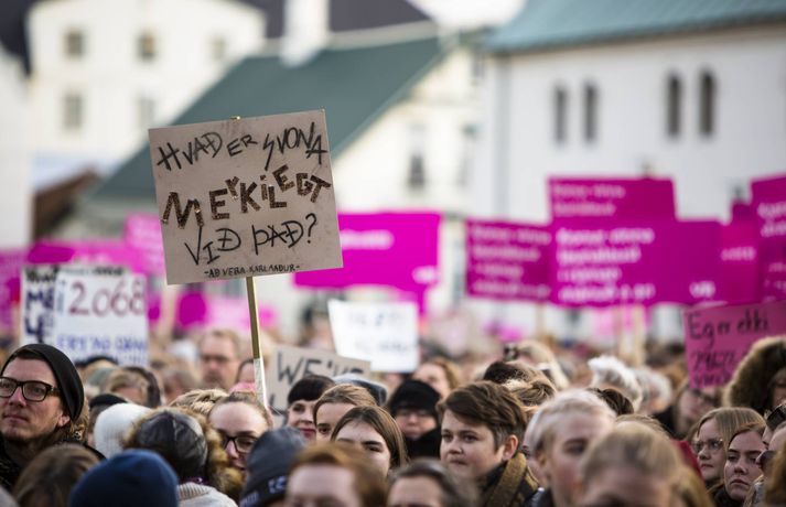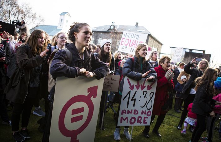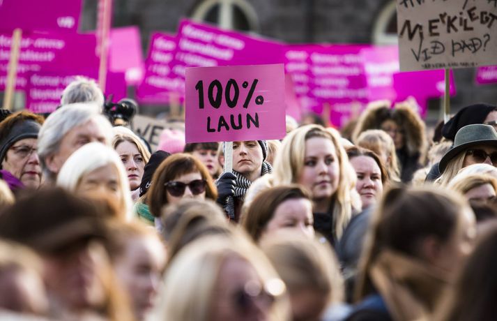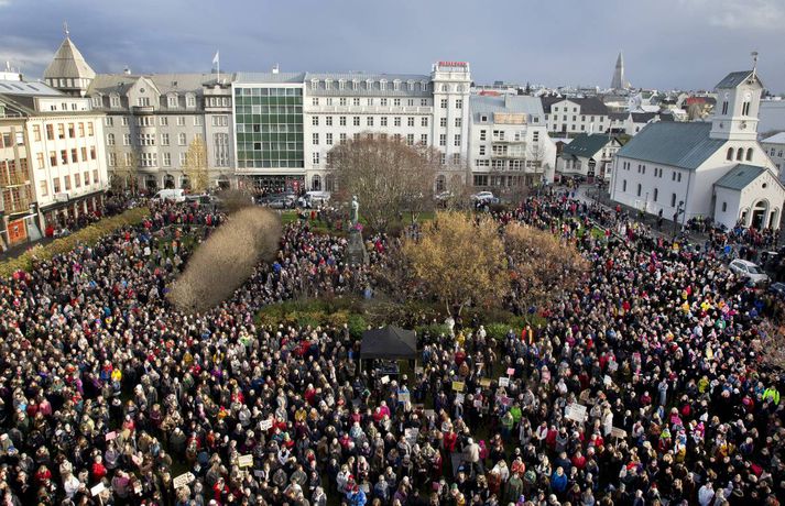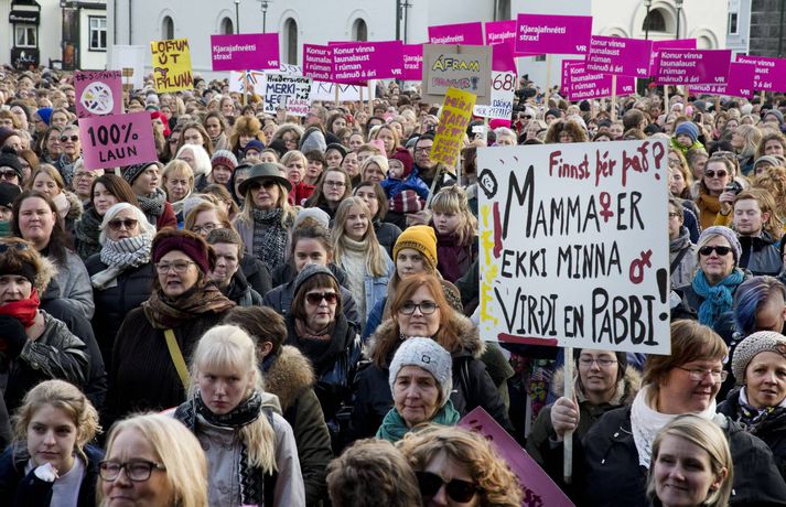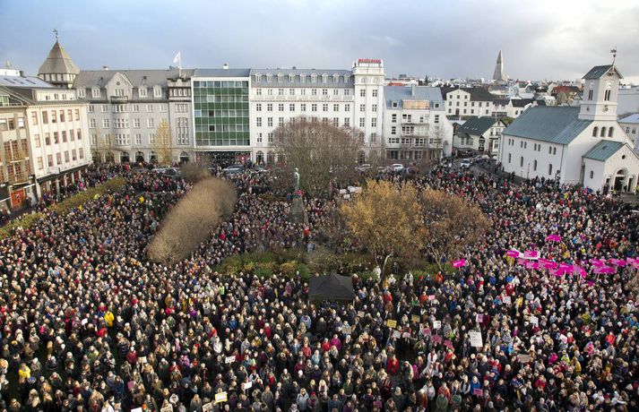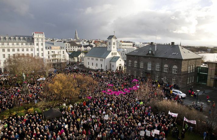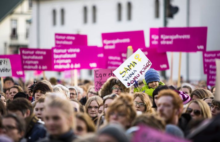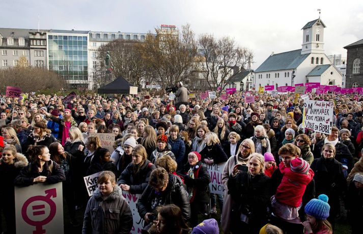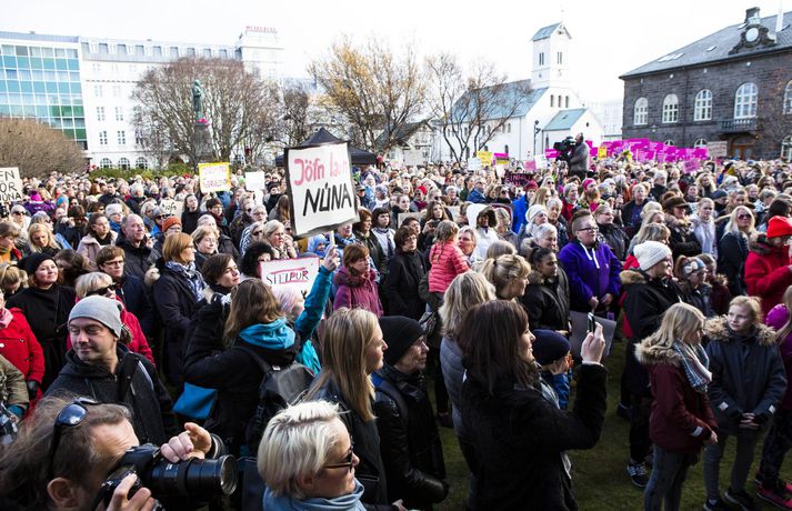 Þúsundir kvenna söfnuðust saman á Austurvelli eftir að hafa lagt niður störf klukkan 14.38. Kvennafrídagurinn fór fram í fjórða sinn í dag. „Það velur engin kona að vera kúguð. Það velur engin kona að fá lægri laun en karl. Ef ójafnrétti væri sjálfstætt val þá værum við ekki hér," sagði Una Torfadóttir en kynslóðir kvenna ávörpuðu fundinn sem stýrt var af Ólafía Hrönn Jónsdóttur og Katrínu Halldóru Sigurðardóttur. Baráttufundnir voru einnig haldnir á Akureyri, Grundarfirði, Hellu, Höfn í Hornafirði, Neskaupstað og Þorlákshöfn en hér að neðan má sjá myndir sem ljósmyndarar Vísis tóku á Austurvelli í dag.Vísir/ErnirVísir/StefánVísir/ErnirVísir/ErnirVísir/ErnirVísir/ErnirSumir vitnuðu í þekkta dægurlagatextaVísir/ErnirVísir/ErnirVísir/ErnirVísir/ErnirVísir/ErnirVísir/ErnirVísir/ErnirVísir/ErnirVísir/StefánVísir/StefánVísir/StefánVísir/StefánÞað var mjög fjölmennt á Austurvelli í kvöld.Vísir/StefánVísir/Stefán