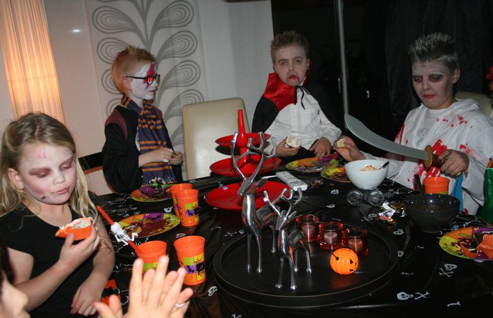 Amma hrærir í blóðsúpu 31. október 2016 10:00 Blóðsúpa og brauðfingur eru á boðstólnum í Hrekkjavökupartýi Þorgrðar Hafsteinsdóttur. Þorgerður Hafsteinsdóttir Óhugguleg hljóð munu heyrast úr bílskúr í Hafnarfirði í kvöld en fjölskylda Þorgerðar Hafsteinsdóttur tekur Hrekkjavökuna alvarlega. Húsið er skreytt hátt og lágt og amman hrærir í eldrauða blóðsúpu.„Við höfum slegið upp Hrekkjavökupartýi annað hvert ár. Byrjuðum á því fyrir mörgum árum, löngu áður en hrekkjavakan fór að festa sig að ráði í sessi hér á Íslandi. Systir mín er gift Ameríkana og hann kom með þessa hefð inn í fjölskylduna,“ segir Þorgerður Hafsteinsdóttir, hársnyrtir sem blæs til hrekkjavökuveislu í kvöld með fjölskyldunni. „Við leggjum mikinn metnað í þetta, heimilið er allt undirlagt og við tökum allavega tvo daga í að skreyta. Yfirleitt búum við til draugahús í bílskúrnum. Krökkunum finnst þetta alveg frábærlega skemmtilegt,“ segir Þorgerður. „Ég á fjóra stráka, 14, 16, 25 og 28 ára Það er enginn þeirra vaxinn upp úr þessu. Þessi 25 ára tók til dæmis að sér að græja draugahúsið síðast. Það heyrast meira að segja óhugguleg hljóð í draugahúsinu og svo var útbúinn einhver ógeðslegur karl sem lá dauður í baðkarinu. Það hefur ýmislegt verið græjað.“Þora krakkarnir í hverfinu að banka upp á? „Það var eiginlega ekkert um að krakkar færu milli húsa hér í kring fyrr en í fyrra, en þá vorum við ekki með draugahúsið, við gerum þetta bara annað hvert ár. Við verðum með hrekkjavöku í ár og tókum alla helgina í að undirbúa og skreyta,“ segir Þorgerður. „Við bjóðum gestum til okkar og hver og ein fjölskylda kemur með eitthvað ógeðslegt á matarborðið. Síðast bauð ég upp á horugan Shrek, úr grænlituðu skyri. Það hafði enginn lyst á því, sem var dálítið fyndið. Yfirleitt er líka blóðsúpa á borðum, sem er bara tómatsúpa. Mamma mín, amman í hópnum sér alltaf um að útbúa súpuna og svo bökum við brauðfingur sem við dýfum í.“ Mest lesið Dagurinn þegar Bessastaðatjörn varð vettvangur harmleiks Lífið Að lifa drauminn: Englafjárfestir, uppistandari, móðir, með sér yngri manni og og og... Áskorun „Sílíkon er eitthvað sem mun fara með mér í gröfina“ Lífið Brúðurin hljóp grátandi út áður en Victoria dansaði við Brooklyn Lífið Húsó fjarlægðir af Rúv Menning Móðirin hljóp frá þremur börnum og „fór í Kanann“ Lífið Kannast ekki við að vera genginn til liðs við Samfylkinguna Lífið Aron Can og Erna selja en elska eldhúsbúrið Lífið Atvinnulaus aumingi trompar dauðakölt Gagnrýni Gisti þar sem Verdi andaðist fyrir hreina tilviljun Lífið Fleiri fréttir Gisti þar sem Verdi andaðist fyrir hreina tilviljun Dagurinn þegar Bessastaðatjörn varð vettvangur harmleiks Gæti vaknað einn daginn og ætlað á þing Kannast ekki við að vera genginn til liðs við Samfylkinguna „Sílíkon er eitthvað sem mun fara með mér í gröfina“ Aron Can og Erna selja en elska eldhúsbúrið Brúðurin hljóp grátandi út áður en Victoria dansaði við Brooklyn Fyrrverandi bassaleikari Scorpions látinn Rifjar upp misgóðar minningar í sölutilkynningunni „Mig langar bara að vera upprétt og sterk“ Tinna Hrafns og Sveinn selja á Laugarásveginum Löggan byrjar á TikTok með því að gasa Egil og Rikka Kvenskælingar svekktir eftir að hafa lent í hakkavél MR tvisvar í röð Heated Rivalry-stjörnur verða á Ólympíuleikunum Fengu gefins sjö nýjar þrautir frá breska þrautahöfundinum Mari og Njörður eiga von á sumarbarni Vinsældir þessarar siðspilltu moldvörpu eru þér að kenna Kemur Önnu miðli til varnar: „Þið megið segja að ég sé auðtrúa asni“ Ofurnæmni Önnu Birtu: Hefur heyrt hugsanir fólks í Kringlunni Désirée prinsessa látin Staðgöngumóðir „öruggasta leiðin“ til að stækka fjölskylduna Auglýsing Blush sé fyrir neðan allar hellur Kynntist manninum á Tinder í Covid Vance á von á barni Heiða og Hildur djömmuðu með Breiðhyltingum Ekki fyrsti fótboltamaður Binna: „Við getum alveg hist aftur og riðið“ Ótrúlegur dagur Vignis: Lottóvinningur, 180 í pílu og sigur á Carlsen Vesturbæingar blótuðu þorrann langt fram á nótt Valdi sér fylkingu í Beckham-deilunum Móðirin hljóp frá þremur börnum og „fór í Kanann“ Sjá meira