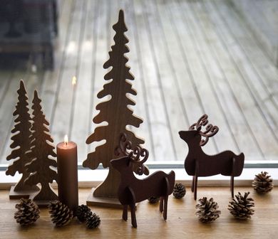 Vala Karen Guðmundsdóttir hefur einfaldan stíl þegar kemur að jólaskrauti, henni líkar best við náttúrulegt skraut og notar mikið brúnan og hvítan lit. „Ég skreyti töluvert fyrir jólin og tíni skrautið fram smám saman á aðventunni. Ég hef ekki mikið af seríum, bara helling af kertum og eitthvað af ljósum,“ lýsir Vala spurð um hvernig jólaskraut hún hafi á heimilinu. Hún bætir við að hún sé ekki mikið fyrir að halda upp á gamalt dót, hún skipti skrautinu reglulega út, og því sé lítið af jóladótinu hennar sem hafi einhverja sögu.„Ég elska köngla og nota þá mjög mikið. Þeir smellapassa inn í minn náttúrulega stíl og ég tíni mikið af þeim sjálf,“ segir Vala.Fjölskylda Völu, hún og maður hennar og tvær dætur þeirra, halda fast í tvær hefðir á aðventunni. Önnur þeirra er sú að þau fara í sumarbústað og baka fullt af piparkökum og mála á þær. „Við förum alltaf upp í bústað og höfum það kósí, bökum og skrifum á jólakort. Nema í fyrra þá sendi ég í fyrsta skipti engin jólakort og er enn með í maganum yfir af því, ég ætla aldrei að sleppa því aftur. Bústaðarferðin er einn af okkar föstu liðum á aðventunni. Hinn er sá að við förum alltaf út í skóg að ná okkur í jólatré. Jólatrén okkar hafa verið frekar há síðustu ár en við slysuðumst fyrir mörgum árum til að kaupa svo stórt tré að það var hægt að teygja sig til að setja toppinn á það af efri hæðinni sem er opin að hluta og síðan þá hefur það þurft að vera þannig,“ segir hún og hlær.Vala setur alltaf epli í körfu og setur fyrir utan útidyrnar ásamt lukt og grenitré. Henni finnst það gefa hátíðlegan svip.Jólatré í gamaldags stíl keypti Vala fyrir fáum árum. Hún segir tréð vera eftirmynd af jólatrjám sem notuð voru fyrr á tímum. Stundum hafi þau verið skreytt með greni en tréð er alltaf látlaust hjá Völu, með hvítum kertum. MYNDIR/HANNAStofuhillan er huggulega skreytt með látlausu skrauti. Það kemur falleg og notaleg birta af litlu kertahúsunum að sögn Völu.Glerkúluna fékk Vala fyrir mörgum árum í Rúmfatalagernum. Hún á nokkrar kúlur sem hanga uppi, skreyttar á misjafnan máta. "Ég er með kerti í nokkrum og svo kemur ofsalega vel út að hafa svona einfalda jólalega skreytingu í þeim."Fallega skreyttur bakki með greni, kertum og hreindýri. Vala notar bakkann stundum til að hafa aðventukransinn á.Vala notar krukkurnar mikið til að skreyta og skipta þær um svip með árstíðum. Núna eru þær í jólalegum búningi.Kökudunkana keypti Vala nýlega í IKEA. Hún segir í léttum dúr að hún geri þó ekki mikið af smákökum, bara aðeins til að sýnast.