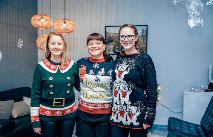 Jólapeysuflipp í Borgartúninu - Myndir Stefán Árni Pálsson skrifar 5. desember 2016 17:00 Skemmtileg jólaopeysustemning. Jólapeysur njóta vaxandi vinsælda um heim allan og eru þær alltaf meira sjáanlegri í þjóðfélaginu frá ári til árs. Starfsfólk Nýherja þykir með hressara móti og virðist alltaf vera til í smá gleði. Í tilefni komandi jóla henti starfsfólkið sér í jólapeysur á dögunum og er óhætt að segja að þær voru nú misfallegar eins og má sjá á meðfylgjandi myndum. Mest lesið „Að fá þessa greiningu er ekki endapunktur“ Lífið Fortíðarþrá einkenndi endurkomuna á stóra sviðið Lífið Neyðarlegast að handleggsbrjóta vinkonu á sviði Lífið Ekki er allt sem sýnist í Dimmu Tónlist Eilíf glötun bíður ekki endilega bóka í ruslagámum Lífið Krakkatía vikunnar: Skoffín, geitur og jarðarber Lífið Allir og amma þeirra í bókaklúbb Lífið Steig fram eftir að sex ára dóttir hennar varð fyrir rasisma Lífið Brúðkaupsdagurinn skilaði rúmum þremur milljónum Lífið Ákváðu að gifta sig strax þegar ljóst var að tíminn væri naumur Lífið Fleiri fréttir Fortíðarþrá einkenndi endurkomuna á stóra sviðið Eilíf glötun bíður ekki endilega bóka í ruslagámum „Að fá þessa greiningu er ekki endapunktur“ Neyðarlegast að handleggsbrjóta vinkonu á sviði Krakkatía vikunnar: Skoffín, geitur og jarðarber Allir og amma þeirra í bókaklúbb Brúðkaupsdagurinn skilaði rúmum þremur milljónum Tónlist sem tekur á skömm og ótta með nokkrum blótsyrðum Steig fram eftir að sex ára dóttir hennar varð fyrir rasisma Mildari og þolinmóðari við sjálfa sig eftir greininguna Fréttatía vikunnar: Bó, vatn og vopnahlé Leitaði upprunans og fékk óvænta frænku í heimsókn Páll Edwald og Selma Eir trúlofuð „Er ég að klikka strax í 50?“ „Maður þarf að gera alla hluti upp“ Umdeildi brautryðjandinn Afrika Bambaataa allur Lærði að lifa lífinu upp á nýtt eftir alvarleg veikindi Sjarmatröllið sem setti popptónlist í öndvegi Halla gerir undantekningu vegna andlátsins Það er komið gó hjá Bó Svala minnist pabba síns Tekur við af dóttur kærastans Lifir með sjúkdóminum en lætur ekkert stöðva sig Skilnaður foreldranna mótað hana einna mest Hórdómur vinsældanna: Núll stjörnur Hvað veistu um… styttur í Reykjavík? Söfnuðu kleinuhringjum ofan í fötu með skrautlegri aðferð Algengur misskilningur að hávært fólk sé með mesta sjálfstraustið The Streets koma fram á Iceland Airwaves „Það er enginn að fara senda þig í stríð“ Sjá meira