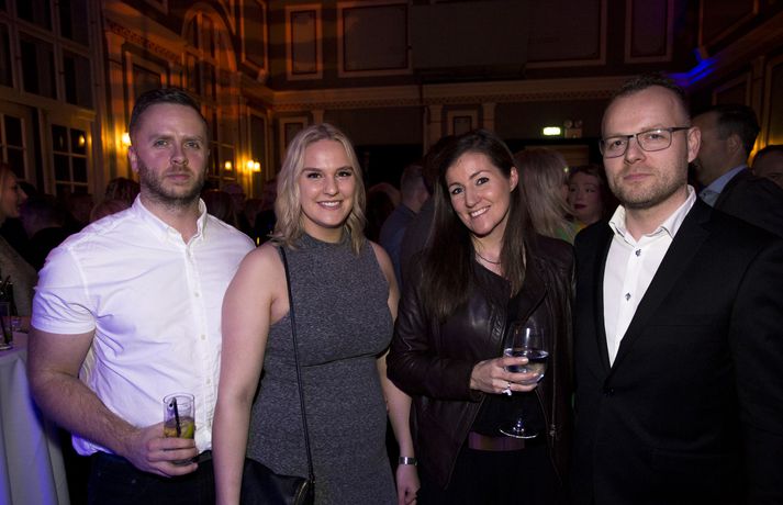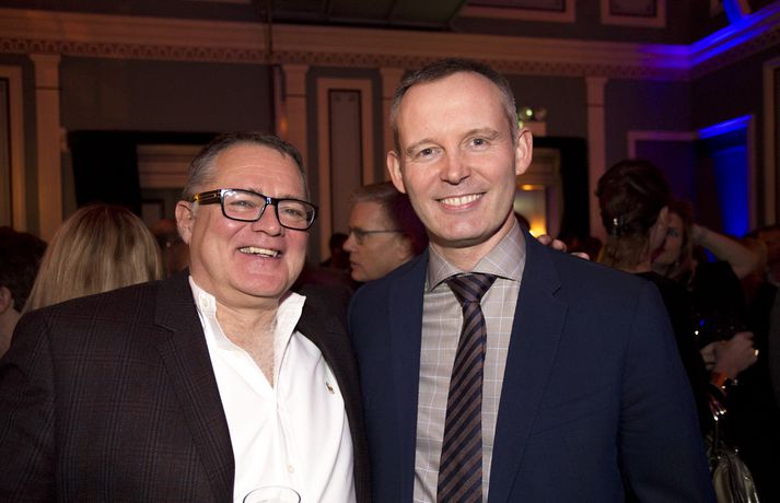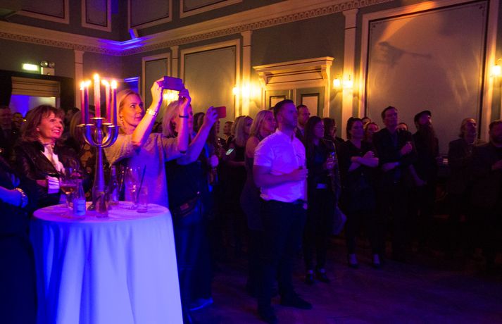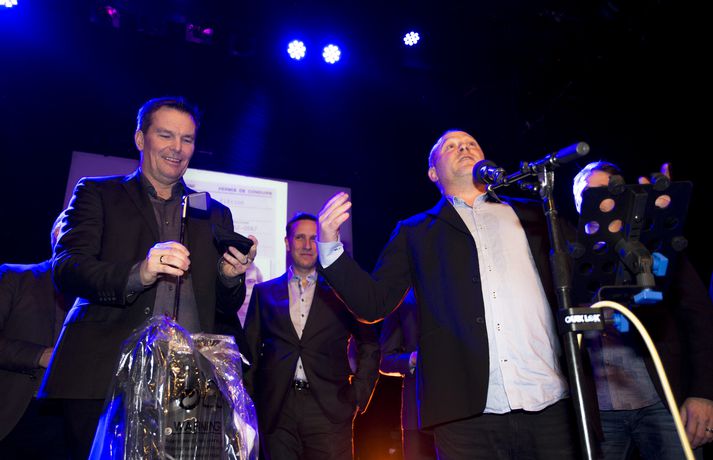 Það var sannarlega stuð og stemning þegar sjónvarpsmaðurinn og hrekkjalómurinn Logi Bergmann fagnaði fimmtugsafmæli sínu í Iðnó í gærkvöldi. Margt var um manninn enda Logi komið víða við á ferli sínum í fjölmiðlum og voru samstarfsmenn af RÚV og Stöð 2 fjölmargir. Vinir Loga úr Stullunum komu afmælisbarninu á óvart með nýju glæsilegu golfsetti fyrir lengra komna en skemmtiatriðin voru úr öllum áttum. Jón Jónsson náði öllum salnum á sitt band sem söng fallega til afmælisbarnsins og Ómar Ragnarsson brá svo á leik til heiðurs hjónunum Loga og Svanhildi Hólm.Sjá einnig: Logi Bergmann dreginn sundur og saman í háði Áður en yfir lauk hafði Emmsjé Gauti troðið en hljómsveitin Márar með Róbert Marshall í broddi fylkingar spilaði fyrir dansi fram á nótt. Afmælisgestir skemmtu sér konunglega en hér að neðan má sjá myndir úr veislunni sem Andri Marinó Karlsson, ljósmyndari á Fréttablaðinu og Vísi, tók í gærkvöldi.