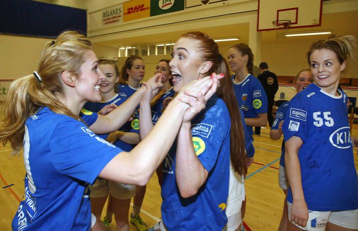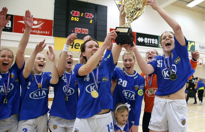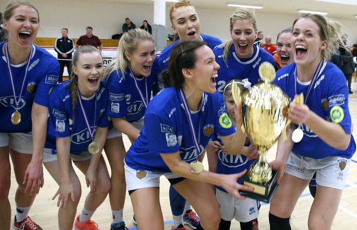 Umfjöllun, viðtöl og myndir: Fram - Stjarnan 23-22 | Fram varði titilinn Anton Ingi Leifsson skrifar 28. desember 2016 20:00 Leikmenn Fram fagna í leikslok. vísir/stefán Fram er Flugfélags Íslands meistari eftir sigur á Stjörnunni í úrslitaleiknum í Hertz-höllinni á Seltjarnanesi í kvöld, 23-22. Þetta er annað árið í röð sem Fram hirðir þennan bikar.Stefán Karlsson, ljósmyndari Fréttablaðsins og Vísis, var í Hertz-höllinni í kvöld og tók meðfylgjandi myndir. Staðan í hálfleik var 11-9 eftir dálítið kaflaskiptan fyrri hálfleik þar sem liðin skiptust á að taka syrpur, en í síðari hálfleik reyndust Fram stúlkur sterkari eftir æsispennandi lokakafla. Þær verja því titilinn og tryggja sér Evrópusæti, en lokatölur uðu 23-22. Sóknarleikur beggja liða datt inn af og til og þá sýndu liðin góða takta takta, en allt of mikið var um klaufaleg mistök og stundum voru gæðin einfaldlega ekki mikil. Liðin héldust þó hönd í hönd nánast allan fyrri hálfleikinn, en Stjarnan virtist vera slíta sig frá Fram þegar Stefanía Theódórsdóttir kom Garðbæingum í 9-7 þar sem Framarar klúðruðu hverju dauðafærinu á fætur öðru. Þá vöknuðu ríkjandi deildarbikarmeistarar. Þær skoruðu fjögur næstu mörk og Guðrún Ósk Maríasdóttir varði víti frá Rakel Dögg Bragadóttur í þann mund sem leiktíminn rann út. Fram því með tveggja marka forskot, 11-9, þegar gengið var til búningsherbergja. Hægt og rólega sigu Fram-stúlkur fram úr. Þær voru skynsamari á boltann og það virtist sem Stjarnan hafði dálítið misst trúna á verkefninu, um stundasakir að minnsta kosti, en þær spiluðu ve í fyrri hálfleik og voru undir. Það er ákveðin mótsögn í því og það er spurning hvort að það hafi eitthvað farið fyrir brjóstið á þeim. Helena Rut hélt Stjörnunni á floot, en hún skoraði alls sjö mörk og mörg þeirra þegar Stjarnan var í erfiðri stöðu. Hún hélt Stjörnunni á floti, en um miðbik hálfleiksins var Fram á fínu skriði og breyttu þær stöðunni úr 15-14 í 20-15. Þá héldu flestir að leiknum væri lokið. Stjarnan var ekki á sama máli. Með mikill eljusemi og dugnaði komust þær hægt og rólega inn í leikinn og Stefanía Theódórsdóttir minnkaði muninn í eitt mark þegar minna en mínúta var eftir. Fram tapaði boltann, Stjarnan geystist í sókn, en tapaði boltanum klaufaleg og Fram-stúlkur fögnuðu gífurlega. Annað árið í röð sem Fram tryggir sér Evrópusæti eftir deildarbikarinn, en Ragnheiður Júlíusdóttir skoraði sex mörk fyrir Fram og var markahæst. Steinunn Björnsdóttir skoraði fimm mörk, en hún og Hildur Þorgeirsdóttir ná frábærlega saman. Guðrún Ósk átti fínan leik í markinu. Áðurnefnd Helena Rut skoraði sjö mörk fyrir Stjörnuna, en Stefanía Theodórsdóttir kom næst með fimm mörk. Hafdís Lilja Torfadóttir varði tólf mörk í markinu.Sigurbjörg: Höfðum gott af fríinu „Þetta var rosaleg spenna arna í lokin. Þetta var dálítið sveiflukenndur leikur,” sagði Sigurbjörg Jóhannsdóttir, fyrirliði Fram og leikstjórnandi, eftir sigurinn í Flugfélag Íslands-deildarbikarnum í samtali við íþróttadeild 365. „Við byrjuðum þetta illa og vorum svo komnir í góða stöðu þarna í fyrri hálfleik, en það er eins og spennustigið hafi orðið of hátt um miðbikð í síðari hálfleik.” „Það virtist vera komin smá þreyta í okkur. Við fórum að gera mistök og okkur var refsað. Þá er ofboðslega stutt í hættu,” en Fram hefur enn ekki tapað leik það sem af er keppnistímabili. Sigurbjörg segir að Fram sé að verða sterkari og sterkari sem ein liðsheild. „Við erum alltaf að læra og við erum orðnar gífurlega sterkar í því að leysa úr erfiðum stöðum og komum til baka og náum að klára þessa leiki.” Þetta er annað árið í röð sem Fram vinnur þennan deildarbikar og segir Sigurbjörg að þær hafi einfaldlega gaman af þessum leikjum milli jóla og nýárs. „Við þurfum alltaf að vinna fyrir honum og við höfum gaman að þessum leikjum milli jóla og nýárs, þannig að það er vonandi að við höldum þessu áfram.” Aðspurð hvort Fram-stúlkur hafi eitthvað vilja fara í þetta frí sem var í desember taplausar sagði Sigurbjörg þær hafi haft gott af smá hvíld. „Við höfðum gott af fríinu og ég held að við höfum gert það. Það verður mjög erfitt að koma inn í seinni hlutann svona taplausar. Auðvitað vilja allar vinna okkur og þá er enn mikilvægara fyrir okkur að halda einbeitingu,” sagði Sigurbjörg að lokum.Harri: Við reyndum það „Við misstum þetta aðeins frá okkur um miðbik síðari hálfleikinn. Þær fengu aðeins of mörg einföld mörk,” sagði Halldór Harri Kristjánsson, þjálfari Stjörnunnar, í samtali við íþróttadeild 365 í leikslok. „Við vorum mjög nálægt því að jafna, en það var synd að ná ekki að nýta síðustu sóknina,” en Stjarnan hafði minnkað fimm marka forskot Fram í eitt mark. Þeir fóru hins vegar afar illa með síðustu sóknina og köstuðu boltanum bara útaf. Stjarnan spilaði fínan bolta lungað úr fyrri hálfleik en slæmur kafli undir lok hálfleiksins leiddi það að verkum að liðið var tveimur mörkum undir í hálfleik. Halldór var sammála undirrituðum að það hafi verið einkennilegt. „Mér fannst við góðar í fyrri hálfleik, en við vorum að klúðra dálítið mikið af færum og mér fannst við gera það allan leikinn. Ég hefði hins vegar viljað sjá jafnan leik í hálfleik eða við yfir, en svo var ekki. Fram var betra liðið í dag og óska þeim til hamingju með það.” „Stelpurnar höfðu alltaf trú á þessu og við fengum hörkuleik. Það var grátlegt við misstum hann þarna i lokin, en það var lítill tími og mikill hasar.” Haraldur Ingólfsson, go