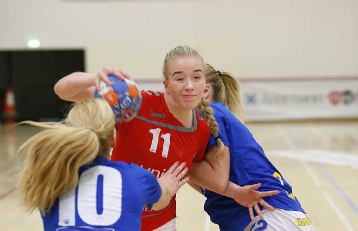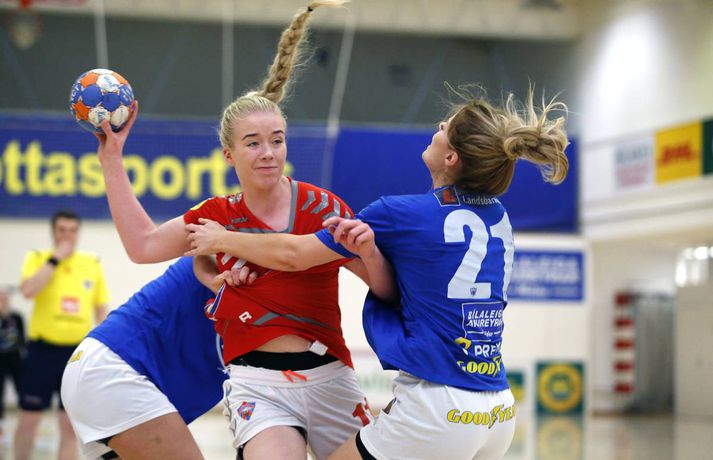 Fram í úrslit þrátt fyrir slæma byrjun | Myndir Ingvi Þór Sæmundsson skrifar 27. desember 2016 17:29 Ragnheiður Júlíusdóttir skoraði sex mörk fyrir Fram. vísir/stefán Fram er komið úrslit Flugfélags Íslands mótsins eftir þriggja marka sigur á Val, 26-23, í fyrri undanúrslitaleiknum í dag.Stefán Karlsson, ljósmyndari Fréttablaðsins og Vísis, var í Hertz-höllinni í dag og tók meðfylgjandi myndir. Eftir 11 mínútur benti fátt til þess að Fram væri að fara í úrslitaleikinn en þá var staðan 2-7 fyrir Val. Fram svaraði með þremur mörkum og þegar liðin gengu til búningsherbergja var munurinn aðeins eitt mark, 11-12. Í seinni hálfleiknum var Fram svo mun sterkari aðilinn og hafði góð tök á leiknum. Margir lögðu hönd á plóg hjá Fram en alls komust níu leikmenn liðsins á blað í leiknum. Á meðan skoruðu Diana Satkauskaite og Morgan Marie Þorkelsdóttir 16 af 23 mörkum Vals. Á endanum munaði þremur mörkum á liðunum, 26-23. Ragnheiður Júlíusdóttir var markahæst í liði Fram með sex mörk en Satkauskaite skoraði 10 mörk fyrir Val. Það kemur í ljós í kvöld hvort Fram mætir Stjörnunni eða Haukum í úrslitaleiknum á morgun.Mörk Fram: Ragnheiður Júlíusdóttir 6/2, Steinunn Björnsdóttir 5, Hildur Þorgeirsdóttir 5, Sigurbjörg Jóhannsdóttir 3, Guðrún Þóra Hálfdánardóttir 2, Hulda Dagsdóttir 2, Rebekka Rut Skúladóttir 1, Elísabet Gunnarsdóttir 1/1, Marthe Sördal 1.Mörk Vals: Diana Satkauskaite 10/2, Morgan Marie Þorkelsdóttir 6/1, Kristine Häheime Vike 3, Birta Fönn Sveinsdóttir 2, Gerður Arinbjarnar 2. Olís-deild kvenna Mest lesið Harma rasíska og transfóbíska grein liðsfélaga Sveindísar Fótbolti Liverpool loks á sigurbraut á ný Enski boltinn Amad bjargaði stigi fyrir United Enski boltinn Gjöf frá mömmu vatt rækilega upp á sig Sport Alfreð hissa: Veit að Íslendingar geta mun betur Handbolti Andri Lucas var kóngurinn á King Power í dag Enski boltinn „Fannst þetta verða svartara og svartara“ Handbolti Segir sönginn um Jota á tuttugustu mínútu hafa áhrif á leik Liverpool Enski boltinn Arsenal með sjö stiga forystu á toppnum Enski boltinn Liverpool féll síðast þegar liðið tapaði fimm í röð Enski boltinn Fleiri fréttir KA/Þór gerði jafntefli við botnliðið Valskonur unnu 24 marka sigur og ÍR upp í annað sætið „Fannst þetta verða svartara og svartara“ Alfreð hissa: Veit að Íslendingar geta mun betur Andri kallaður inn í hópinn fyrir meiddan Hauk Arnór Snær snýr aftur heim Besta handboltadeild heims missir aðalstyrktaraðila sinn Grafalvarleg staða: „Þurfum að fara í sársaukafullar aðgerðir“ ÍR áfram eftir sigur í Mosfellsbæ Uppgjörið: Þýskaland - Ísland 42-31 | Þrot í Þýskalandi Tilkynnti um óléttu og nýjan samning á sama tíma Patrekur hættur eftir dapurt gengi Stjörnunnar Rekinn fyrir ummæli sín um krabbameinssjúka handboltagoðsögn Janus Daði myndaður í heimsókn hjá Barcelona Epicbet sýni handboltann í leyfisleysi: „Enda ólöglegar síður“ Teitur inn í landsliðið Gísli bjó til meira en þriðjung markanna Haukur magnaður í sigri Löwen Blær skoraði þrjú og lagði upp jöfnunarmarkið KA/Þór sótti sigur gegn Fram og stigalausar Stjörnukonur Fram kjöldró HK og spenna í Eyjum Meistararnir unnu gegn ÍBV og ÍR hafði betur gegn Selfyssingum Donni og félagar björguðu stigi undir lokin Afturelding komst upp að hlið Hauka Seldu bleika búninginn hennar Herrem fyrir meira en milljón „Leið vel þegar ég fór inn úr færinu“ Uppgjörið FH - Haukar 27-26 | Birgir Már tryggði FH sigur eftir spennutrylli Bernard fór mikinn en Valsmenn sluppu með sigurinn Fyrsti sigur Þórsara síðan í byrjun september Ómar Ingi með fullkomnan leik í Meistaradeildinni Sjá meira
