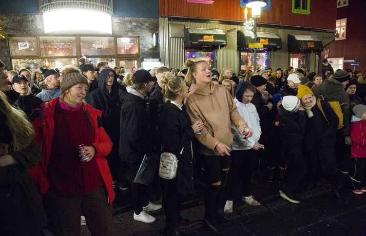 Eins og við var að búast var góð stemning á tónleikum Sturla Atlas og 101 Boys á Þorláksmessu í verslun Macland. Hjómsveitin hélt uppi stuðinu inni í versluninni á meðan áhorfendur stóðu fyrir utan og fylgdust með. Eins og sjá má á meðfylgjandi myndum var mikið stuð á Laugaveginum.