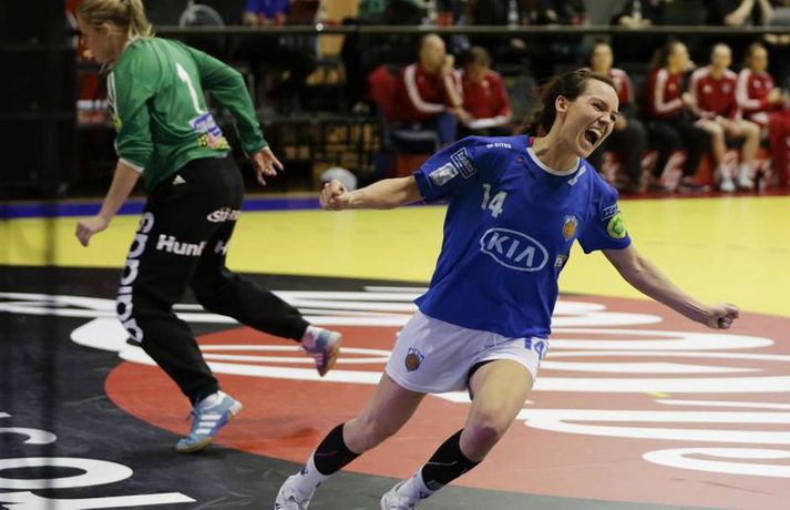 Umfjöllun, viðtöl og myndir: Haukar - Fram 21-28 | Fram mætir Stjörnunni í úrslitum Guðmundur Marinó Ingvarsson í Laugardalshöll skrifar 23. febrúar 2017 21:30 Sigurbjörg Jóhannsdóttir fagnar marki. vísir/hanna Fram mætir Stjörnunni í úrslitum Coca-Cola bikars kvenna í handbolta eftir 28-21 sigur á Haukum í undanúrslitum í Laugardalshöll í kvöld. Fram var 12-9 yfir í hálfleik.Hanna Andrésdóttir, ljósmyndari Fréttablaðsins og Vísis, var í Laugardalshöllinni í kvöld og tók meðfylgjandi myndir. Fram byrjaði leikinn mun betur. Haukar skoruðu þriðja mark sitt ekki fyrr en á 17. mínútu en þá hafði Fram náði fjögurra marka forystu. Haukar náðu að minnka muninn í eitt mark þegar fimm mínútur voru til hálfleiks en Fram náði að auka forystu sína í þrjú mörk fyrir hálfleik. Haukar áttu í miklum vandræðum gegn sterkri vörn Fram og fyrir aftan vörnina var Guðrún Ósk Maríasdóttir í miklu stuði. Elín Jóna Þorsteinsdóttir markvörður Hauka hélt sínu liði inni í leiknum í fyrri hálfleik með góðri markvörslu en hún varði ófá dauðafærin. Fram byrjaði seinni hálfleikinn einnig af krafti og náði mest sjö marka forystu þegar 19 mínútur voru eftir af leiknum. Haukar skoruðu aðeins 12 mörk fyrstu 40 mínútur leiksins sem er til marks um frábæra vörn Fram í leiknum. Haukar treystu um of á Ramune Pekarskyte í sóknarleiknum og þurfti hún á mun meiri hjálp að halda í leiknum. Haukar náðu þó að minnka muninn í tvö mörk en hafði ekki kraft til að komast nær Fram sem sigldi á ný framúr undir lok leiksins og vann að lokum sannfærandi sigur. Eins og áður segir voru markverðir liðanna öflugir og Ramune bar sóknarleik Hauka uppi. Hildur Þorgeirsdóttir átti greiða leið að marki Hauka framan af leik og Steinunn Björnsdóttir skilaði sínu að vanda. Það var þó Hafdís Iura sem stal senunni með frábærri innkomu í leikinn í seinni hálfleik en hún og Ragnheiður Júlíusdóttir skoruðu 4 mörk hvor seint í leiknum. Fram mætir Stjörnunni í úrslitaleiknum á laugardaginn klukkan 13.30 í Laugardalshöllinni.Steinunn: Góð tilfinning að vera hér Það sást langar leiðir að Fram hungraði virkilega mikið að fara alla leið í úrslitaleikinn hið minnsta og það tók Steinunn Björnsdóttir fyrirliði Fram undir. „Já klárlega. Það er langt síðan við vorum hér síðast. Tilfinningin að vera hér er góð og okkur langaði að vera hér eins lengi og við getum,“ sagði Steinunn. Fram náði sjö marka forystu snemma í seinni hálfleik en Haukar náðu að minnka muninn í tvö mörk. „Við missum þetta aðeins niður. Ég fékk að sjálfsögðu heimskulegar tvær mínútur en við sýnum karakter að koma til baka og vinna leikinn með sjö mörkum.“ Fram byrjaði leikinn með framliggjandi vörn sem skilaði þeim árangri að Haukar skoruðu sitt þrjðja mark ekki fyrr en á 17. mínútu. „Við komum þeim jafnvel á óvart með að byrja í 3-3 vörn. Þær voru kannski ekki tilbúnar í það og þá náum við sjálfstrausti í okkar leik og náum að halda það út. „Þær skora bara 12 mörk á 40 mínútum sem sýnir hve góða vörn við vorum að spila og Guðrún (Ósk Maríasdóttir) er alltaf jafn sterk fyrir aftan,“ sagði Steinunn. Fram tapaði fyrstu tveimur leikjum sínum á tímabilinu áður en liðið vann síðasta leik sinn fyrir bikarúrslitahelgina. „Við misstum aðeins jafnvægið í tveimur deildarleikjum en náum svo að vinna Gróttu sannfærandi og virðumst vera komnar á gott skrið aftur. „Við erum gríðarlega ánægðar með að vera komnar áfram. Við höfum spilað tvo mjög spennandi leiki við Stjörnuna í vetur og þetta verður skemmtilegur leikur,“ sagði Steinunn að lokum um úrslitaleikinn sem er framundan á laugardaginn.Karen: Tökum rugl ákvarðanir Haukar skoruðu aðeins tvö mörk fyrstu 16 mínúturnar í kvöld en Karen Helga Díönudóttir vill alls ekki meina að of hátt spennustig sé ástæða slakrar byrjunar liðsins. „Nei, það getur ekki verið afsökun. Við erum að gera þetta í fjórða skipti. Það er ekki hægt að fela sig á bakvið það,“ sagði Karen. „Við förum ekki nógu vel eftir skipulaginu. Við vissum nákvæmlega hvað þær voru að fara að gera. Við vissum að Hildur ætti að skjóta. Við mætum henni ekki og hún hittir. Þá er þetta erfitt.“ Fram byrjaði leikinn spilandi 3-3 vörn sem virtist slá Hauka útaf laginu. Karen segir að þetta hefði samt ekki átt að koma Haukum á óvart. „Þær hafa gert þetta nokkrum sinnum á móti okkur áður. Þetta ætti ekki að koma okkur á óvart þó þetta liti út fyrir að hafa gert það,“ sagði Karen. Haukar náðu að minnka muninn í tvö mörk þegar innan við tíu mínútur voru eftir af leiknum en það vantaði herslumuninn hjá liðinu að koma sér enn nær eða jafna leikinn. „Mér finnst við taka óþarfa ákvarðanir þegar við erum á grensunni. Við tökum rugl ákvarðanir í sóknarleiknum og gerum asnaleg mistök sem við eigum ekki að gera á þessu stigi. „Varnarlega létum við ekki finna nógu vel fyrir okkur. Þá er lítið hægt að gera og þær voru bara betri,“ sagði Karen að lokum.Steinunn í harðri baráttu við Karenu Helgu Díönudóttur.vísir/hannaKaren Helga reynir skot að marki Fram.vísir/hanna Olís-deild kvenna Mest lesið Harma rasíska og transfóbíska grein liðsfélaga Sveindísar Fótbolti Amad bjargaði stigi fyrir United Enski boltinn Gjöf frá mömmu vatt rækilega upp á sig Sport Alfreð hissa: Veit að Íslendingar geta mun betur Handbolti Andri Lucas var kóngurinn á King Power í dag Enski boltinn „Fannst þetta verða svartara og svartara“ Handbolti Segir sönginn um Jota á tuttugustu mínútu hafa áhrif á leik Liverpool Enski boltinn Arsenal með sjö stiga forystu á toppnum Ens