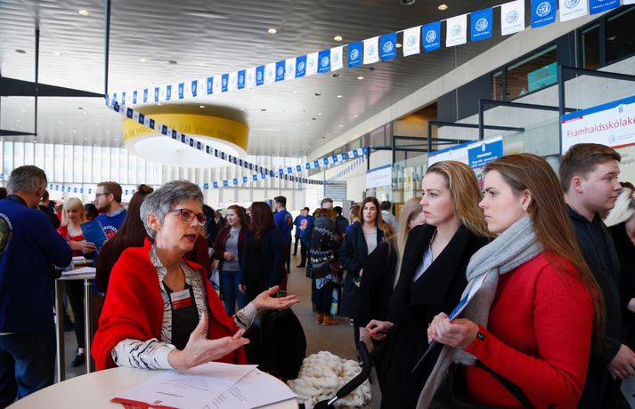 Allir háskólar landsins halda Háskóladaginn í sameiningu í dag. Mikill fjöldi hefur nú þegar sótt skólana heim til þess að kynna sér allt nám sem í boði í háskólunum á Íslandi. Dagurinn hófst klukkan 12 og lýkur 16. Það var Forseti Íslands Herra Guðni Th. Jóhannnesson sem opnaði daginn, sem haldinn er á hverju ári. Það er hvergi jafn auglóst og einmitt á Háskóladaginn hve námsframboð á Íslandi er gott og fjölbreytt. Hægt er að velja úr yfir 500 námsleiðum í sjö háskólum. Þannig ættu allir að geta fundið sér nám við sitt hæfi. Það eru ekki bara námskynningarnar sem heilla í dag því dagskráin er fjölbreytt í húsakynnum HÍ, HR og LHÍ þar sem kynningarnar fara fram. Gestir og gangandi geta gert ýmislegt sér til skemmtunar á Háskóladeginum. Sprengjugengi HÍ er með sýningar í Háskólabíói. Þar sýnir Háskóladansinn líka listir sínar og boðið verður upp á vísindabíó. Vísindasmiðjan verður á sínum stað þannig öll fjölskyldan ætti að geta haft gaman af. Einnig verður hægt að næla sér í axlarnudd og mælingu á blóðþrýstingi. Hjá HR er hægt að setjast upp í bílhermi og kanna viðbragðstímann þegar snjallsími er notaður við akstur, kanna kasthraða og styrk golfsveiflunnar. Boðið verður upp á akstur í loftknúnum bíl og og hægt verður að setja á sig sýndarveruleikagleraugu til þess að athuga hvort fólk sé haldið fælni. Í Listaháskólanum springur reglulega eitthvað út sem tónlistarflutningur og gjörningar og í skoðunarferðum um húsnæðið verða verkstæðin í Laugarnesi skoðuð, vinnurými nemenda og nemendasýningar. Háskóladagurinn mun svo í framhaldi af ofangreindum degi leggja land undir fót og heimsækja átta skóla utan höfuðborgarsvæðisins dagana 7. - 29. mars. Allir eru velkomnir. Háskólarnir sjö eru HA, HÍ, HR, LHÍ, Háskólinn á Bifröst, Landbúnaðarháskólinn og Háskólinn á Hólum. Háskóladagurinn á ferð og flugi 7. mars - Fjölbrautarskóla Suðurnesja 9. mars - Menntaskólanum á Ísafirði 10. mars - Fjölbrautarskóla Vesturlands á Akranesi 15. mars - Menntaskólanum á Egilsstöðum 16. mars - Menntaskólanum á Akureyri 16. mars - Verkmenntaskólanum á Akureyri 20. mars - Fjölbrautarskóla Vestmannaeyja 29. mars - Fjölbrautarskóla Suðurlands á Selfossi