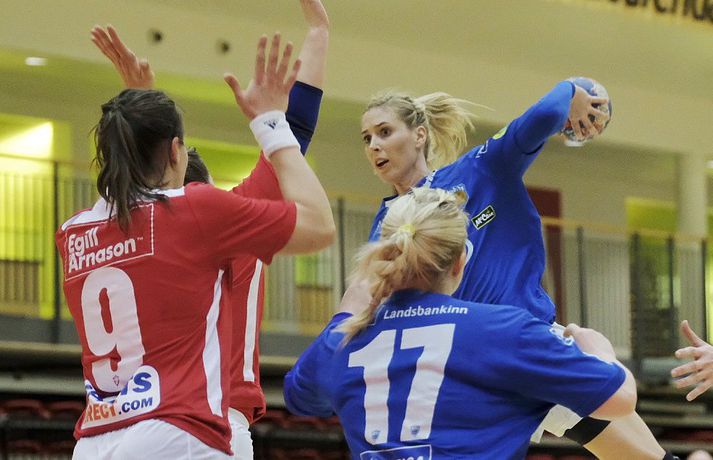 Fram heldur toppsætinu eftir sigur á Hlíðarenda 24. mars 2017 21:50 Steinunn Björnsdóttir í baráttunni í kvöld. vísir/anton Fram átti ekki í teljandi vandræðum með Val í stórleik kvöldsins í Olís-deild kvenna. Fram vann að lokum með sex marka mun, 26-20. Fram leiddi í hálfleik með einu mörkum, 26-20, og í síðari hálfleik náðu þau að halda forskotinu og halda toppsætinu. Fram er með 33 stig en Valur áfram í sjötta sætinu. Ragnheiður Júlíusdóttir var einu sinni sem oftar markahæst hjá Fram með átta mörk, en hjá Val var það Diana Satkausskaite sem var atkvæðamest með níu mörk. Haukar unnu fimm marka sigur Fylki í Árbænum í hinum leik kvöldsins, en lokatölur urðu 30-25 eftir að Haukar höfðu leitt með átta mörkum í hálfleik, 18-10. Guðrún Erla Bjarnadóttir lék á alls oddi í liði Hauka og skoraði tíu mörk, en næst kom Brynhildur Sól Eddudóttir með fimm. Haukar í þriðja sæti deildarinnar. Thea Imani Sturludóttir skoraði mest fyrir Fylki sem situr á botninum eða sex mörk talsins, en Fylkir er einmitt með sex stig. Olís-deild kvenna Mest lesið Harma rasíska og transfóbíska grein liðsfélaga Sveindísar Fótbolti Amad bjargaði stigi fyrir United Enski boltinn Gjöf frá mömmu vatt rækilega upp á sig Sport Alfreð hissa: Veit að Íslendingar geta mun betur Handbolti Andri Lucas var kóngurinn á King Power í dag Enski boltinn „Fannst þetta verða svartara og svartara“ Handbolti Segir sönginn um Jota á tuttugustu mínútu hafa áhrif á leik Liverpool Enski boltinn Arsenal með sjö stiga forystu á toppnum Enski boltinn Liverpool féll síðast þegar liðið tapaði fimm í röð Enski boltinn Andri Lucas í beinni í Doc Zone: „Við setjum hann í skeytin“ Enski boltinn Fleiri fréttir KA/Þór gerði jafntefli við botnliðið Valskonur unnu 24 marka sigur og ÍR upp í annað sætið „Fannst þetta verða svartara og svartara“ Alfreð hissa: Veit að Íslendingar geta mun betur Andri kallaður inn í hópinn fyrir meiddan Hauk Arnór Snær snýr aftur heim Besta handboltadeild heims missir aðalstyrktaraðila sinn Grafalvarleg staða: „Þurfum að fara í sársaukafullar aðgerðir“ ÍR áfram eftir sigur í Mosfellsbæ Uppgjörið: Þýskaland - Ísland 42-31 | Þrot í Þýskalandi Tilkynnti um óléttu og nýjan samning á sama tíma Patrekur hættur eftir dapurt gengi Stjörnunnar Rekinn fyrir ummæli sín um krabbameinssjúka handboltagoðsögn Janus Daði myndaður í heimsókn hjá Barcelona Epicbet sýni handboltann í leyfisleysi: „Enda ólöglegar síður“ Teitur inn í landsliðið Gísli bjó til meira en þriðjung markanna Haukur magnaður í sigri Löwen Blær skoraði þrjú og lagði upp jöfnunarmarkið KA/Þór sótti sigur gegn Fram og stigalausar Stjörnukonur Fram kjöldró HK og spenna í Eyjum Meistararnir unnu gegn ÍBV og ÍR hafði betur gegn Selfyssingum Donni og félagar björguðu stigi undir lokin Afturelding komst upp að hlið Hauka Seldu bleika búninginn hennar Herrem fyrir meira en milljón „Leið vel þegar ég fór inn úr færinu“ Uppgjörið FH - Haukar 27-26 | Birgir Már tryggði FH sigur eftir spennutrylli Bernard fór mikinn en Valsmenn sluppu með sigurinn Fyrsti sigur Þórsara síðan í byrjun september Ómar Ingi með fullkomnan leik í Meistaradeildinni Sjá meira