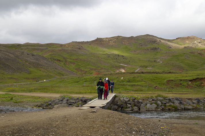 Íslenskur unglingur bjargaði slösuðum ferðamanni í Reykjadal Kristín Ólafsdóttir skrifar 31. mars 2017 20:37 Ferðamenn við gönguleið upp að heitu laugunum í Reykjadal. Vísir/Pjetur Kanadískur ferðamaður brenndist alvarlega á fæti þegar hún fór ofan í heita laug í Reykjadal í febrúar síðastliðnum. Íslenskur unglingur, sem staddur var á svæðinu við björgunaræfingar, var á meðal þeirra sem komu henni í læknishendur. Nicole Rakowski, 24 ára kona frá borginni Hamilton í Kanada, kom hingað til lands ásamt tveimur vinkonum sínum. Þær hugðust verja síðasta degi ferðalagsins í Reykjadal en um klukkutíma tekur að ganga upp að heitum laugum sem orðnar eru mjög vinsælar meðal ferðamanna.Íslenskur unglingur og bandarískur slökkviliðsmaður komu til bjargarFjölmennt var á svæðinu þegar vinkonurnar bar að garði. Ekki er vitað nákvæmlega hvar í ánni óhappið átti sér stað en fullyrt er að fólk hafi setið og baðað sig rétt hjá slysstað. Rakowski steig af viðarpalli, sem lagður er meðfram heitu laugunum í Reykjadal, og ofan á moldarflag. Moldarflagið gaf sig undan þunganum og Rakowski sökk ofan í sjóðandi heitt vatn. „Ég fann strax að þetta var sjóðheitt,“ segir Rakowski um slysið. „Ég öskraði eins hátt og ég gat. Ég fann moldina sjóða á fótunum á mér en ég komst ekki upp úr“. Vinkonur hennar drógu hana upp á bakkann og hrópuðu á hjálp. Lee Ricasa, slökkviliðsmaður frá Kaliforníu, heyrði þær kalla og hóf björgunaraðgerðir. Hann, með aðstoð íslenskra og þýskra vegfarenda, bar Rakowski niður fjallið. Hún hafði þá misst meðvitund. Á leiðinni niður mættu þeir íslenskum unglingi, sem fyrir einskæra tilviljun var þar staddur við björgunaræfingar. Hann kallaði á hjálp í gegnum talstöð en vinkonum Rakowski hafði ekki tekist að ná sambandi við neyðarlínuna. Að sögn Rakowski liðu tveir og hálfur tími frá því að slysið átti sér stað og þangað til hún komst á sjúkrahús í Reykjavík.Segja svæðið illa merktRicasa, einn björgunarmannanna, segir viðvörunum á svæðinu ábótavant. Þær séu til staðar en að það sé enn fremur erfitt að átta sig á því hvar vatnið sé hættulega heitt. Rakowski segist ekki hafa séð nein skilti sem vöruðu hana við því að fara ofan í ána á þessum stað. Hún er þó þakklát fyrir skjót viðbrögð þeirra sem hjálpuðu henni og segir þá hafa bjargað lífi sínu. Mest lesið Virðist ekki vera hægt á Íslandi Viðskipti innlent Trump nefnir nýja kynslóð orrustuskipa í höfuðið á sjálfum sér Erlent Hyggst kæra dyraverði Auto til lögreglu Innlent Hiti geti mest náð átján stigum Veður „Ótrúlega sorglegt að pabbi sé búinn að vera svona lengi í þessari stöðu“ Innlent Ný könnun Maskínu: „Væri alveg ný staða í íslenskum stjórnmálum“ Innlent Ráðist á pilt á heimleið Innlent Stytting framhjá Blönduósi ekki á samgönguáætlun Innlent Fjölgun eldri kvenna í Kvennaathvarfi: „Þessar konur bíða ekki“ Innlent Gaf fingurinn á Miklubraut Innlent Fleiri fréttir Fjölgun eldri kvenna í Kvennaathvarfi: „Þessar konur bíða ekki“ Ráðist á pilt á heimleið Stytting framhjá Blönduósi ekki á samgönguáætlun Vestmannaeyingar fá að eiga Vestmannaeyjar Hyggst kæra dyraverði Auto til lögreglu „Ótrúlega sorglegt að pabbi sé búinn að vera svona lengi í þessari stöðu“ Höfðu samband við dönsku herstjórnina á Grænlandi Ný könnun Maskínu: „Væri alveg ný staða í íslenskum stjórnmálum“ Glæný Maskínukönnun og jólaóveður Ársæll hringdi beint í utanríkisráðherra eftir fundinn Ósannað að fimmtán ára stúlka hafi stungið sextán ára pilt tvisvar Sameina Farice, Öryggisfjarskipti og hluta Neyðarlínunnar Gaf fingurinn á Miklubraut Birtir drög að lögum um lagareldi: Hyggst leggja niður Fiskeldissjóð Hundrað og fjörutíu milljarða bótakrafa á Samherja sé súrrealísk Skemmdir í kirkjugörðum vegna aksturs utan vegar Ólýsanlegur harmur fyrir fjölskylduna og söfnun hleypt af stokkunum „Ég hef aldrei upplifað annan eins harm“ Vill leiða lista Sjálfstæðismanna í Reykjanesbæ „Þetta hefur verið þungur tími“ Naut aðstoðar samskiptasérfræðinga vegna veiðigjaldamálsins Hrindir af stað söfnun fyrir móður stúlkunnar sem lést í Suður-Afríku Varð vitni að ótrúlegum norðurljósum: „Mér fannst þetta magnað“ Færir nýársboðið fram á þrettándann Fjórir fluttir á sjúkrahús eftir bílveltu á Suðurlandi Leggur aftur til hverfislögreglustöð í Breiðholti Nú má heita Love, Tóní, Ranimosk og Draumur Kvartar til umboðsmanns og vonar að Vegagerðin sjái að sér Ætlar ekki að beita sér í máli starfsmanns Útlendingastofnunar „Ég vil ekki nokkurn tímann sjá neitt svona aftur“ Sjá meira