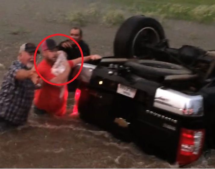 Óveðrið í Texas: Hetjur björguðu kornabörnum frá drukknun Anton Egilsson skrifar 1. maí 2017 11:54 Tvö kornabörn voru hætt komin þegar bíll sem þau voru farþegar í valt ofan í vatnsmikinn skurð og endaði á hvolfi. Mótorhjólaökumenn sem áttu leið hjá komu börnunum tveimur til bjargar. Samkvæmt frétt Sky voru börnin stödd í bílnum ásamt föður sínum en þau hugðust flýja öflugan hvirfilbyl sem reið yfir hluta Texas fylkis í Bandaríkjunum um helgina. Á leið þeirra valt bíllinn og endaði á hvolfi ofan í vatnsmiklum skurði. Sátu börnin tvö föst inn í bílnum þar til að nokkrir mótorhjólaökumenn sem komu auga á bílinn óðu út í skurðinn til þess að hjálpa föðurrnum að bjarga börnunum. Tókst þeim eftir mikið erfiði að rífa hurðir bílsins upp og koma börnunum tveimur út heilum á húfi. Hetjudáð mótorhjólaökumannanna náðist á myndband sem sjá má hér að neðan. Viðkvæmir eru varaðir við því að horfa á myndskeiðið. Mest lesið „Dorrit og eiginmaður hennar frá Íslandi eru hér“ Innlent Fjöldi ásakana um brot gegn barnungum stúlkum Erlent „Mjög áhugaverð umræða“ Innlent Fífldjarft að fara í formanninn en varaformannsembættið...? Innlent Nýbirt skjöl varpa ljósi á dánarstund Epstein Erlent Jói Fel málar með puttunum Innlent Játaði brot sín og sleppur ekki aftur við fangelsisvist Innlent Maður hlotið stórfellt líkamstjón eftir árás ungmenna Innlent Þúsundir kvartana vegna leigubílaaksturs en fagnar breytingum Innlent Vísar því á bug að HSÍ fái ekkert fyrir sinn snúð Innlent Fleiri fréttir Fjöldi ásakana um brot gegn barnungum stúlkum Nýbirt skjöl varpa ljósi á dánarstund Epstein Ákæru fyrir manndráp vísað frá Trump útnefnir Warsh sem næsta seðlabankastjóra Tíu ákærðir fyrir að drepa friðaða úlfa Trump vill hafa Pútín og Xi út af fyrir sig Hýdd 140 sinnum fyrir áfengisneyslu og kynlíf utan hjónabands Trump segir Pútín hafa samþykkt hlé á árásum á Kænugarð Njósnastjóri Trumps leitar að kosningasvindli Reyndi að frelsa Mangione vopnaður pítsaskera Saksóknarar hóta uppreisn í Minneapolis „Hættulegasti maður Noregs“ fannst látinn í fangaklefa Segir Venesúela munu þurfa að sækja um úthlutun úr eigin olíusjóði í Katar Ellefu meðlimir glæpafjölskyldu teknir af lífi í Kína Fundu fjarlægustu vetrarbrautina hingað til Segir útsendara „mögulega“ ekki hafa fylgt verkreglum Segir Trump ekki reiðan Íslandi Dómsdagsklukkan færð fram Sendir herskipaflota að Íran og hótar „ofbeldi“ Helsta klappstýran sögð slegin yfir sálarástandi Trumps Verða ekki viðstödd réttarhöld stjúpsonarins Vilja veita þúsundum sem dvelja ólölega á Spáni dvalarleyfi Ná saman um myndun minnihlutastjórnar í Hollandi Maður sprautaði illa lyktandi vökva á Ilhan Omar Róa á nýnasistamið í leit að ICE-liðum Dómari stöðvar brottflutning Liam og föður hans Bandaríkin hyggja á heræfingar í Mið-Austurlöndum Svíar líta til kjarnorkuvopna Tónninn breytist með yfirmannaskiptum hjá ICE Tala fallinna og særðra nálgast tvær milljónir Sjá meira