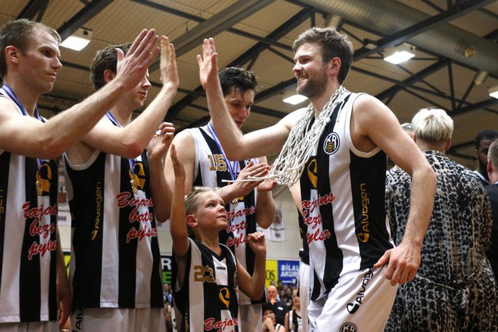 Fyrirliði KR fékk freistandi tilboð frá öðru félagi en fer ekki neitt Óskar Ófeigur Jónsson skrifar 9. júní 2017 07:45 Brynjar Þór Björnsson fagnar hér fjórða Íslandsmeistaratitlinum í röð með liðsfélögum sínum. Víisr/Andri Marinó Brynjar Þór Björnsson, fyrirliði Íslands- og bikarmeistara KR, hefur framlengt samning sinn við KR og fær því tækifæri til að lyfta Íslandsbikarnum fimmta árið í röð á næsta tímabili. Brynjar fékk freistandi tilboð frá öðru íslensku félagi og það er að heyra á Brynjari að það var að toga í hann að yfirgefa Vesturbæinn og prófa eitthvað nýtt. „Það hefði verið mjög skemmtilegt að takast á við það verkefni en maður er svo mikill KR-ingur að það hefði verið erfitt að slíta sig frá félaginu,“ sagði Brynjar Þór í viðtali við Andra Yrkil Valsson í Morgunblaðinu. „Ég er ánægður að hafa loksins tekið ákvörðun. Það er þungu fargi af mér létt núna,“ sagði Brynjar Þór ennfremur í viðtalinu. Brynjar hefur bara leikið með KR hér á Íslandi og er leikjahæsti leikmaður félagsins frá upphafi í úrvalsdeild karla. Hann lék eitt ár sem atvinnumaður í Svíþjóð en snéri aftur heim eftir það. Brynjar Þór hefur orðið Íslandsmeistari sjö sinnum (2007, 2009, 2011, 2014, 2015, 2016 og 2017) og bikarmeistari þrisvar sinnum (2011, 2016 og 2017) og er því kominn í hóp sigursælustu körfubolta manna Íslands frá upphafi þrátt fyrir að vera ekki enn búinn að halda upp á þrítugsafmælið sitt. KR getur unnið Íslandsmeistaratitilinn fimmta árið í röð á næsta tímabili og freistar þess auk þess að vinna tvöfalt þriðja árið í röð. Dominos-deild karla Mest lesið Áfallið staðreynd og Isak búinn í aðgerð Enski boltinn Einn leikmaður með samning og völlurinn ólöglegur Fótbolti Vildi tapa legg: „Mesti hávaði sem ég hef heyrt“ Sport Salah færði Egyptum draumabyrjun Fótbolti Hættur aðeins þrítugur Golf Steraleikarnir segi ungu fólki að það sé aldrei nógu fullkomið Sport Afkáralegt fagn hjá hetju Sambíu Fótbolti Aron Einar lagði upp dýrmætt sigurmark Fótbolti Sagði látna systur sína hafa tryggt sigurinn ótrúlega Sport Sjáðu geggjaðan snúning Alberts áður en hann skoraði frábært mark Fótbolti Fleiri fréttir Stórstjarna úr WNBA-deildinni í heimsókn á Íslandi ÍR-ingar bæta við sig reyndum og hittnum Króata Í bann fyrir að kasta flösku í barn Hjalti Þór ráðinn aðalþjálfari Álftaness Kolbrún María kom við sögu í endurkomu Hannover Næstframlagshæstur í grátlegu tapi Fékk næstum 4,5 milljóna króna sekt fyrir að sýna dómara fingurinn „Komum eins og aumingjar inn í þennan leik“ „Jólasteikin mun bragðast betur í ljósi þessa sigurs“ Stjarnan - Álftanes 108-104 | Unnu grannaslaginn naumlega Uppgjörið: Ármann - ÍA 102-83 | Ármann náði í gríðarlega mikilvæg stig í fallbaráttunni með sigri gegn Skagamönnum Jokic tók NBA-met af Abdul-Jabbar í nótt KR á frábærum stað en getur ekki unnið titilinn Útilokar ekki breytingar: „Er klárlega að líta í kringum mig“ Uppgjörið: Keflavík - Njarðvík 93-83 | Enn taplausir í Sláturhúsinu „Ánægður að spila ekki betur en þetta en vinna samt“ „Svo lengi sem það er ekki jákvæð og góð umfjöllun um okkur erum við sáttir“ „Hefðum þurft að hafa heppnina með okkur í liði“ ÍR - Valur 82-85 | Baráttusigur í Breiðholti „Sáttur að geta farið heim, borðað vel og fengið mér nokkra kalda“ Tindastóll - KR 130-117 | Kláruðu gestina í seinni hálfleik Þór Þ. - Grindavík 94-106 | Baráttusigur gegn löskuðu liði Þórs Liðsfélagar Guðbjargar ekki fæddir þegar hún spilaði fyrsta leikinn Þola þeir ekki gott umtal? „Helmingur minna leikmanna skilur ekki íslensku“ „Ef við hefðum ekki verið að setja þessi skot þá hefðum við skíttapað“ KR á toppinn Uppgjörið: Grindavík - Haukar 92-93 | Fullkomin jólagjöf Spilaði 13 mínútur en var stigahæstur Rýndu í gamlar myndir: „Svakalega ertu kringlóttur í framan“ Guðbjörg fyrsta konan í fjögur hundruð leikina Sjá meira
