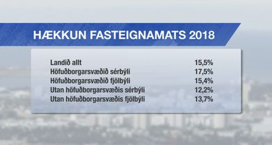 Heildarfasteignamat íbúða fer í tæpa fimm þúsund milljarða á næsta ári Heimir Már Pétursson skrifar 2. júní 2017 19:30 Fasteignamat hækkar að meðaltali um 13,8 prósent frá þessu ári. vísir/eyþór Fasteignamat íbúðar- og atvinnuhúsnæðis á Íslandi fyrir næsta ár er 7.300 milljarðar króna og hækkar að meðaltali um 13,8 prósent frá þessu ári. Hækkun á mati íbúðarhúsnæðis er mest á Húsavík af öllum bæjum landsins eða 42,2 prósent sem formaður Byggðaráðs bæjarins skrifar á aukna ferðaþjónustu og framkvæmdir á Bakka. Fasteignaverð á höfuðborgarsvæðinu hefur hækkað mikið á undanförnum árum enda skortur á íbúðahúsnæði. Hækkun fasteignamats íbúðarhúsnæðis fyrir næsta ár á höfuðborgarsvæðinu er mest í Blesugróf eða 27,8 prósent og verður heildarfasteignamat íbúðarhúsnæðis á landinu á næsta ári rétt tæpar 5 billjónir eða 4.980 milljarðar króna.Hækkunin er örlítið minni utan höfuðborgarsvæðisins eða 12,2 prósent í sérbýli og 13,7 prósent í fjölbýli.Meðaltals hækkun fasteignamats íbúðarhúsnæðis á landinu öllu er 15,8 prósent. Á höfuðborgarsvæðinu er meðaltalshækkun í sérbýli 17,5 prósent og 15,4 prósent í fjölbýli. Hækkunin er örlítið minni utan höfuðborgarsvæðisins eða 12,2 prósent í sérbýli og 13,7 prósent í fjölbýli. Húsavík sker sig hins vegar úr hvað varðar hækkun fasteignamats í einstökum bæjarfélögum en þar hækkar matið um hvorki meira né minna en 42,2 prósent og í sveitarfélaginu Kjósahreppi er hækkunin svipuð eða 41,3 prósent. Óli Halldórsson formaður Byggðaráðs Húsavíkur og Norðurþings segir uppbygginguna á Bakka hluta af skýringunni á mikilli hækkun fasteignamats. „Þá hefur ferðaþjónustan verið að eflast mjög hratta á Húsavík og það er alveg ljóst að þessir tveir þættir eru kannski mest afgerandi í þessari hækkun á húsnæðisverði. Þar sem ferðaþjónustan bæði fyrir starfsfólk og kúnna pressar á húsnæðismarkaðinn en einnig auðvitað þessi uppbyggingartími á Bakka,“ segir Óli. Af einstökum hverfum á höfuðborgarsvæðinu er hækkunin mest í Blesugróf eins og áður sagði eða 27,8 prósent og síðan í neðra Breiðholti 21,5 prósent og 20 prósent í Fellunum. Í miðborginni er meðaltalshækkunin í kring um 16 prósent, en getur þó farið vel yfir tuttugu prósent á einstökum svæðum miðborgarinnar. Kjartan Hallgeirsson, formaður Félags fasteignasala segir hækkun fasteignamatsins, í takti við ástandið á markaðnum.Það eru búnar að vera miklar hækkanir mörg ár í röð, er það gott?„Það er alltaf betra að hækkanir séu jafnt og þétt. Í takti við kaupmátt og aðstæður í landinu. Þannig að þessar öru hækkanir frá síðasta ári; ég get ekki sagt að þær séu slæmar, en þær hefðu mátt vera jafnari.“Eftirspurnin er auðvitað gífurleg, sérstaklega hér á höfuðborgarsvæðinu? „Já, eins og staðan er í dag vantar okkur íbúðir inn á markaðinn. Í augnablikinu er lítið til sölu þótt við sjáum fram á að það eigi eftir að batna á næstu misserum,“ segir Kjartan Hallgeirsson. Mest lesið Virðist ekki vera hægt á Íslandi Innlent Hiti geti mest náð átján stigum Veður Hyggst kæra dyraverði Auto til lögreglu Innlent „Ótrúlega sorglegt að pabbi sé búinn að vera svona lengi í þessari stöðu“ Innlent Ný könnun Maskínu: „Væri alveg ný staða í íslenskum stjórnmálum“ Innlent Gaf fingurinn á Miklubraut Innlent Stytting framhjá Blönduósi ekki á samgönguáætlun Innlent „Bandaríkin eiga ekki að taka yfir Grænland“ Erlent Breiddi út faðminn fyrir rasista: „Þið þurfið ekki að biðjast afsökunar á að vera hvít lengur“ Erlent „Ég hef aldrei upplifað annan eins harm“ Innlent Fleiri fréttir Virðist ekki vera hægt á Íslandi Stytting framhjá Blönduósi ekki á samgönguáætlun Vestmannaeyingar fá að eiga Vestmannaeyjar Hyggst kæra dyraverði Auto til lögreglu „Ótrúlega sorglegt að pabbi sé búinn að vera svona lengi í þessari stöðu“ Höfðu samband við dönsku herstjórnina á Grænlandi Ný könnun Maskínu: „Væri alveg ný staða í íslenskum stjórnmálum“ Glæný Maskínukönnun og jólaóveður Ársæll hringdi beint í utanríkisráðherra eftir fundinn Ósannað að fimmtán ára stúlka hafi stungið sextán ára pilt tvisvar Sameina Farice, Öryggisfjarskipti og hluta Neyðarlínunnar Gaf fingurinn á Miklubraut Birtir drög að lögum um lagareldi: Hyggst leggja niður Fiskeldissjóð Hundrað og fjörutíu milljarða bótakrafa á Samherja sé súrrealísk Skemmdir í kirkjugörðum vegna aksturs utan vegar Ólýsanlegur harmur fyrir fjölskylduna og söfnun hleypt af stokkunum „Ég hef aldrei upplifað annan eins harm“ Vill leiða lista Sjálfstæðismanna í Reykjanesbæ „Þetta hefur verið þungur tími“ Naut aðstoðar samskiptasérfræðinga vegna veiðigjaldamálsins Hrindir af stað söfnun fyrir móður stúlkunnar sem lést í Suður-Afríku Varð vitni að ótrúlegum norðurljósum: „Mér fannst þetta magnað“ Færir nýársboðið fram á þrettándann Fjórir fluttir á sjúkrahús eftir bílveltu á Suðurlandi Leggur aftur til hverfislögreglustöð í Breiðholti Nú má heita Love, Tóní, Ranimosk og Draumur Kvartar til umboðsmanns og vonar að Vegagerðin sjái að sér Ætlar ekki að beita sér í máli starfsmanns Útlendingastofnunar „Ég vil ekki nokkurn tímann sjá neitt svona aftur“ Gyðingar á Íslandi upplifa aukinn ótta Sjá meira