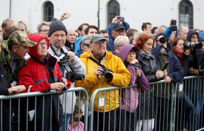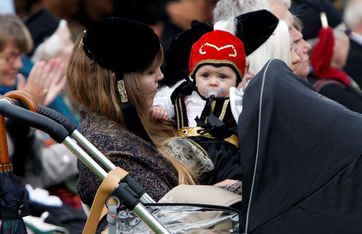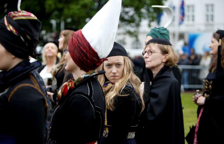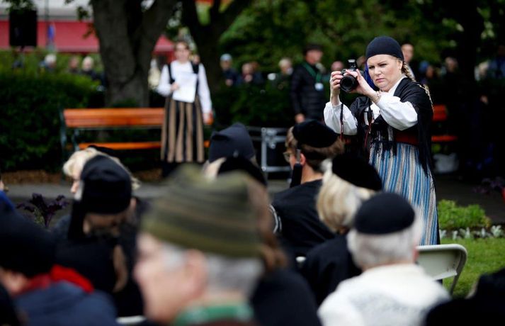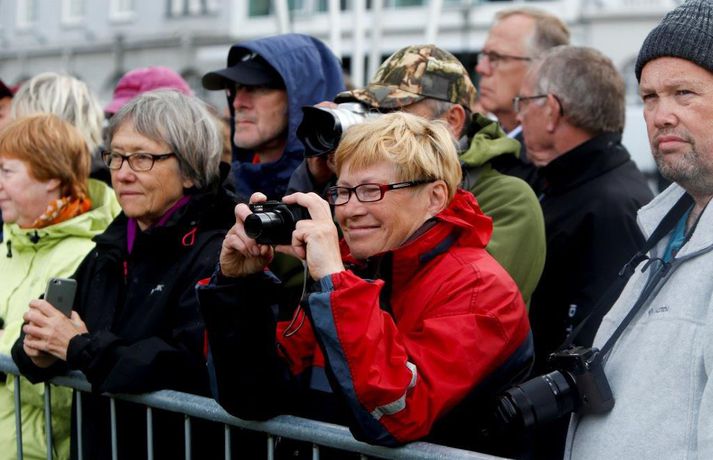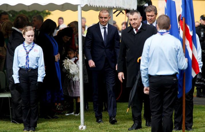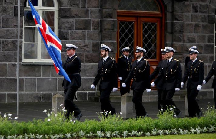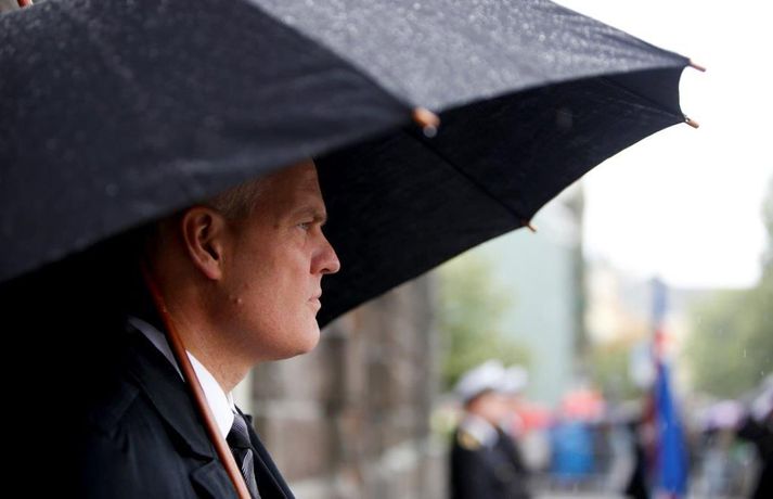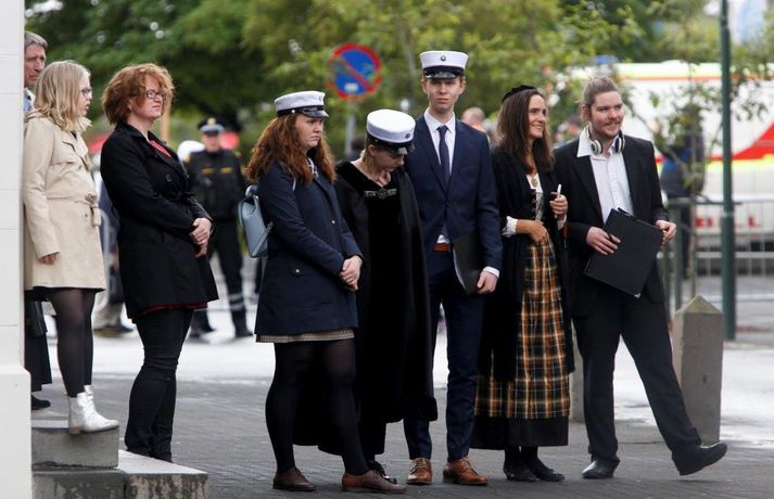 Sjálfstæði Íslands fagnað í vætunni Kjartan Kjartansson skrifar 17. júní 2017 14:19 Ungir sem aldnir létu smá rigningu ekki aftra sér frá því að fagna þjóðhátíðardeginum. Vísir/Andri Marinó Guðni Th. Jóhannesson, forseti Íslands, lagði blómsveig við styttuna af Jóni Sigurðssyni í fyrsta skipti þegar þjóðhátíðardeginum var fagnað á Austurvelli fyrir hádegi. Fjallkonan að þessu sinni var Þóra Einarsdóttir, söngkona. Hátíðarathöfnin á vegum Alþingis og forsætisráðuneytisins hófst á Austurvelli kl. 11.15. Hún hófst á því að Guðni lagði blómsveig frá íslensku þjóðinni að minnisvarða Jóns Sigurðssonar. Að því loknu hélt Bjarni Benediktsson, forsætisráðherra, hátíðarræðu þar sem hann fjallaði meðal annars um öryggismál.Sjá einnig:Gera allt til að tryggja öryggi landsmanna Þóra reyndist vera fjallkonan að þessu sinni en leynd hvílir ávalt yfir hver hlýtur það hlutverk fram að athöfninni. Mótettukór Hallgrímskirkju og Graduale Futuri, eldri barnkór Langholtskirkju syngja og lúðrasveit Reykjavíkur leikur.Sumir nýttu tækifærið og mótmæltu Bjarna Benediktssyni, forsætisráðherra.Vísir/Andri MarinóGuðni Th.Jóhannesson forseti og Bjarni Benediktsson, forsætisráðherra, búa sig undir að hefja athöfnina.Vísir/Andri MarinóÍ sönnum þjóðhátíðaranda rigndi á viðstadda á Austurvelli.Vísir/Andri Marinó.Lögreglan var með töluverðan viðbúnað við Austurvöll en hún var ekki áberandi vopnuð.Vísir/Andri MarinóVísir/Andri Marinó 17. júní Mest lesið Kókaínkóngur handtekinn á Spáni Erlent Sonur Beckham sviptur ökuréttindum Erlent Kallar nú sjálfur eftir birtingu Epstein-skjalanna Erlent Eldur í ökutæki í Bríetartúni Innlent „Þar erum við eftirbátar nágrannaþjóðanna“ Innlent Játuðu morð á almennum borgurum en voru aldrei sóttir til saka Erlent Loftslagskvíði geti ýtt undir fíkniefnaneyslu Erlent Hækka viðbúnaðarstigið í Bretlandi Erlent Segir forsetann tala fyrir einangrun Innlent Lenti utan vegar vestan við Grundarfjörð Innlent Fleiri fréttir Eldur í ökutæki í Bríetartúni „Þar erum við eftirbátar nágrannaþjóðanna“ Börn sækist í bækur á ensku Minntust þeirra sem hafa látist í umferðinni 70 ára afmæli Tónlistarskóla Árnesinga fagnað Bílbelti bjarga mannslífum og stafrænt kynferðisofbeldi færist í aukana Lenti utan vegar vestan við Grundarfjörð Verði að tryggja að á íslensku megi alltaf finna svar Dröfn og Samtökin ’78 verðlaunuð á degi íslenskrar tungu „Unga fólkið okkar er umkringt efni á ensku“ Beltunum að þakka að bræðurnir séu enn á lífi Keldnakirkja á Keldum er 150 ára Telur bílbeltið hafa bjargað lífi sínu Hvaða oddviti er duglegastur að mæta? Yfir helmingur þeirra sem lést í bílslysi innanbæjar beltislaus Telja íslenskuna geta horfið með einni kynslóð Evrópumál, lánakjör og baráttan fyrir íslenskri tungu í stafrænum heimi Lögregla leysti upp unglingapartý í Árbæ Ekkert „en“ á eftir því að beita maka sinn ofbeldi Lögreglumenn náðu stjörnuhrapi á eftirlitsmyndavél Ræðst í úttekt á bókamarkaðnum „Nú ætla menn að kollvarpa þessu kerfi, fyrir hvað?“ Flugvél lenti í Keflavík vegna bilunar Glæsilegir forystuhrútar á Syðra – Velli í Flóa Áköf undirskriftakeppni hafin vegna jarðganga Tryggja þurfi að ráðamenn hlaupi ekki í störf hjá ESB Vara við mögulegri glerhálku í kvöld „Kerfinu kollvarpað“, jólabókaflóð og forystusauðir Höfðu eftirlit með fangageymslu lögreglu Sakar kaupendur um að hafa aldrei greitt fyrir veitingastaðina Sjá meira