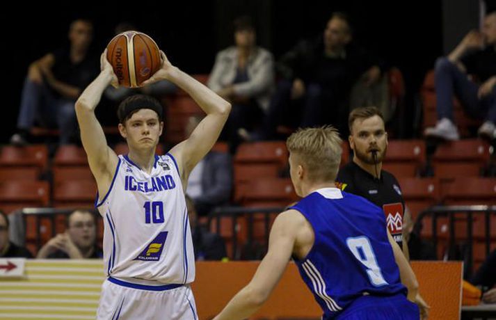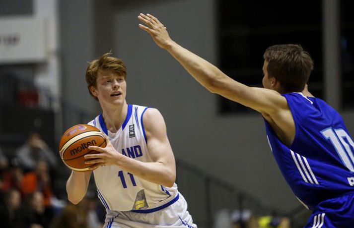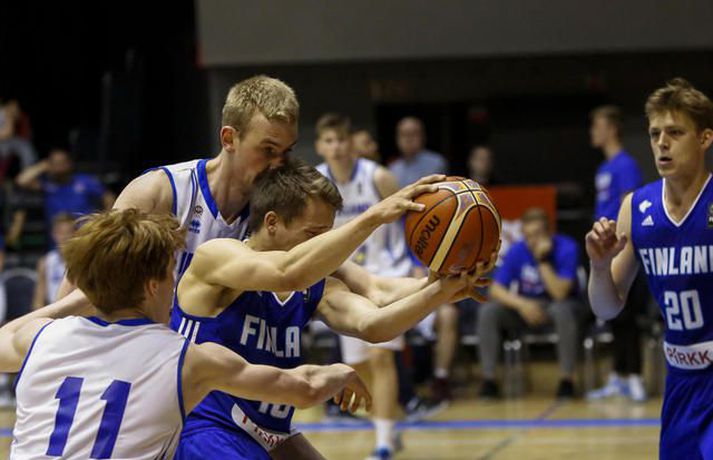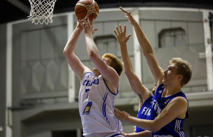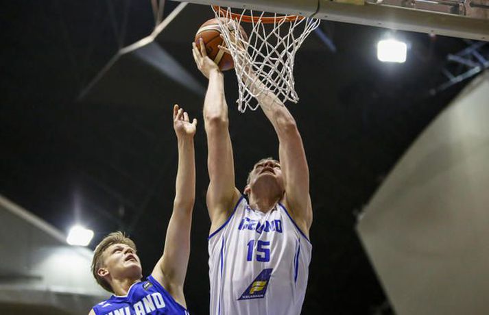 Tryggvi fór mikinn í íslenskum sigri Ingvi Þór Sæmundsson skrifar 21. júní 2017 22:05 Finnsku leikmennirnir réðu lítið við Tryggva. vísir/ernir Íslenska körfuboltalandsliðið skipað leikmönnum 20 ára og yngri tryggði sér sigur á fjögurra liða æfingamóti með því að vinna Finnland, 75-60, í Laugardalshöllinni í kvöld.Ernir Eyjólfsson, ljósmyndari Fréttablaðsins og Vísis, var í Laugardalshöllinni í kvöld og náði þessum skemmtilegu myndum sem má sjá hér að neðan. Fyrir leikinn voru Finnar með fullt hús stiga en Íslendingar náðu gullinu með því að vinna í kvöld. Tryggvi Snær Hlinason átti sannkallaðan stórleik gegn Finnum. Risinn úr Bárðardalnum skoraði 17 stig, tók 11 fráköst, gaf fimm stoðsendingar og varði fimm skot. Kári Jónsson skoraði 14 stig, tók fimm fráköst og gaf fjórar stoðsendingar og Þórir Guðmundur Þorbjarnarson skoraði 12 stig og tók níu fráköst. Þá skilaði Kristinn Pálsson 10 stigum. Mótið var fyrsti liðurinn í undirbúningi íslenska liðsins fyrir EM í Grikklandi seinna í sumar. Ísland keppir þá í A-deild í fyrsta sinn. Næsta verkefni íslensku strákanna er æfingamót í Grikklandi þar sem þeir mæta heimamönnum, Ítalíu og Spáni.Ísland - Finnland 75-60 (13-14, 25-10, 22-18, 15-18)Ísland: Tryggvi Snær Hlinason 17/11 fráköst/5 stoðsendingar/5 varin skot, Kári Jónsson 14/5 fráköst, Þórir Guðmundur Þorbjarnarson 12/9 fráköst, Kristinn Pálsson 10, Halldór Garðar Hermannsson 6/4 fráköst, Snorri Vignisson 6/4 fráköst, Breki Gylfason 5, Ingvi Þór Guðmundsson 3, Eyjólfur Ásberg Halldórsson 2, Snjólfur Marel Stefánsson 0/4 fráköst.Finnland: Matias Suvanto 12/5 fráköst, Lassi Nikkarinen 10, Teemu Knihtinen 8/4 fráköst, Eero Innamaa 6, Edon Maxhuni 6, Aatu Kivimäki 5, Henri Kantonen 5, Jyri Eboreime 3, Hannes Koskinen 3/4 fráköst, Robertt Bärlund 2.vísir/ernirvísir/ernir Körfubolti Tengdar fréttir Íslensku strákarnir gáfu eftir á lokasprettinum Íslenska karlalandsliðið skipað leikmönnum 20 ára og yngri tapaði fyrir Ísrael, 74-81, í öðrum leik sínum á æfingamóti sem fer fram hér á landi þessa dagana. 20. júní 2017 21:59 Ísland tryggði sér sigurinn með því að skora síðustu sjö stigin Íslenska karlalandsliðið í körfubolta skipað leikmönnum 20 ára og yngri vann flottan sigur á Svíum, 58-61, í fyrsta leik sínum á fjögurra liða æfingamóti sem fer fram hér á landi. 19. júní 2017 22:09 Nýjasti atvinnumaður Íslendinga sá fyrsta körfuboltaleikinn fyrir fjórum árum Miðherjinn stóri og stæðilegi, Tryggvi Snær Hlinason, er sem kunnugt er genginn í raðir Spánarmeistara Valencia frá Þór Ak. 20. júní 2017 21:30 Mest lesið Hafnaði 34 milljónum: „Vil ekki styðja kerfi sem býr til fíkn og eyðileggur líf“ Sport Segir starfið í húfi hjá Alfreð Handbolti Sjáðu fyrsta mark Wirtz, laglega sjálfsmarkið og Watkins stúta Chelsea Enski boltinn Gray hetja Tottenham Enski boltinn Littler sjóðheitur en sá fjórði besti varð fyrir áfalli Sport Calvert-Lewin skoraði í sjötta leiknum í röð Enski boltinn Van Gerwen: „Alveg sama um Luke og Luke“ Sport Salah sakaður um dýfu: „Getum ekki keppt við Egypta og dómarana“ Fótbolti Liverpool-skotmarkið ekki á förum í janúar Enski boltinn Arnar Þór ráðinn til FIFA: „Himinlifandi að hafa fengið þetta starf“ Fótbolti Fleiri fréttir Tapaði fyrir Barcelona Njarðvík búin að losa sig við De Assis Gerir grín að klæðaburði liðsfélaga síns Elvar stigahæstur en fékk ekki sigur í jólagjöf Martin mættur aftur inn á völlinn og liðið hans endaði taphrinuna Jókerinn með tölvuleikjatölfræði á jóladag Meisturunum fatast flugið „af því hitt liðið er betra“ Jólagleði í Garðinum Jólagjöf í Keflavík: Remy Martin snýr aftur Missti alveg stjórn á skapinu en það skilaði sigri Stórstjarna úr WNBA-deildinni í heimsókn á Íslandi ÍR-ingar bæta við sig reyndum og hittnum Króata Í bann fyrir að kasta flösku í barn Hjalti Þór ráðinn aðalþjálfari Álftaness Kolbrún María kom við sögu í endurkomu Hannover Næstframlagshæstur í grátlegu tapi Fékk næstum 4,5 milljóna króna sekt fyrir að sýna dómara fingurinn „Komum eins og aumingjar inn í þennan leik“ „Jólasteikin mun bragðast betur í ljósi þessa sigurs“ Stjarnan - Álftanes 108-104 | Unnu grannaslaginn naumlega Uppgjörið: Ármann - ÍA 102-83 | Ármann náði í gríðarlega mikilvæg stig í fallbaráttunni með sigri gegn Skagamönnum Jokic tók NBA-met af Abdul-Jabbar í nótt KR á frábærum stað en getur ekki unnið titilinn Útilokar ekki breytingar: „Er klárlega að líta í kringum mig“ Uppgjörið: Keflavík - Njarðvík 93-83 | Enn taplausir í Sláturhúsinu „Ánægður að spila ekki betur en þetta en vinna samt“ „Svo lengi sem það er ekki jákvæð og góð umfjöllun um okkur erum við sáttir“ „Hefðum þurft að hafa heppnina með okkur í liði“ ÍR - Valur 82-85 | Baráttusigur í Breiðholti „Sáttur að geta farið heim, borðað vel og fengið mér nokkra kalda“ Sjá meira