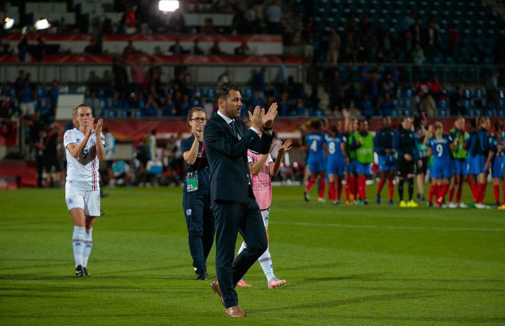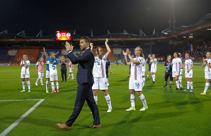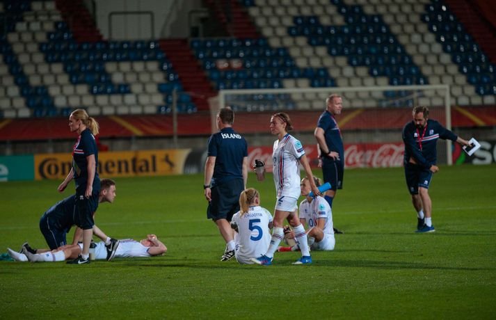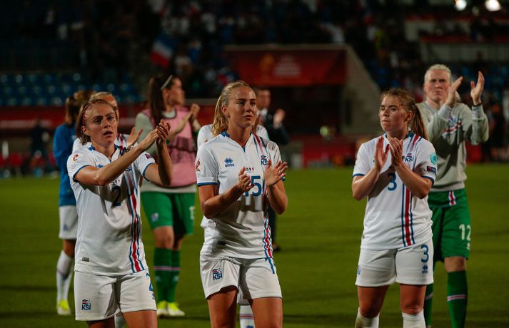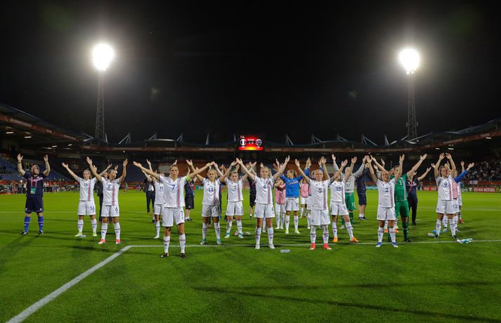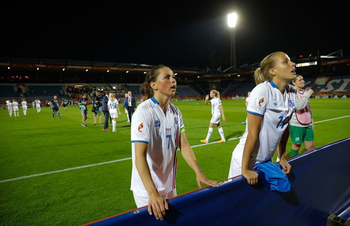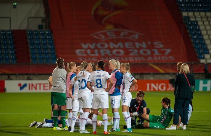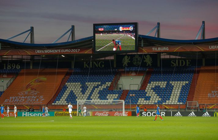 Stelpurnar okkar voru heldur betur svekktar með 1-0 tapið gegn Frakklandi í fyrsta leik liðsins á EM 2017 í kvöld. Eina markið kom úr vítaspyrnu á 85. mínútu sem stelpurnar voru verulega ósáttar með enda var brotið á Fanndísi Friðriksdóttur í fyrri hálfleik innan teigs. Vilhelm Gunnarsson, ljósmyndari Fréttablaðsins og Vísis, var á vellinum í Tilburg í dag og tók þessar glæsilegu myndir af stelpunum okkar og áhorfendum á leiknum.Umfjöllun um leikinn má lesa hér, einkunnir leikmanna eru hér og á EM-síðunni má finna allt efni kvöldsins.vísir/vilhelmvísir/vilhelm