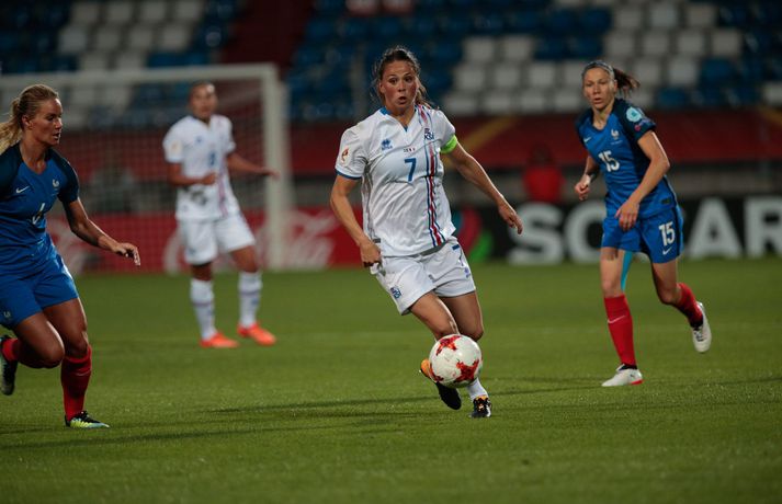 Ingibjörg: Er svo stolt af því að vera Íslendingur Ingibjörg Sigurðardóttir, hin ungi miðvörður íslenska liðsins, gaf ekkert eftir í baráttunni við hina reynslumiklu Eugénie Le Sommer í franska landsliðinu í kvöld. 18. júlí 2017 22:25