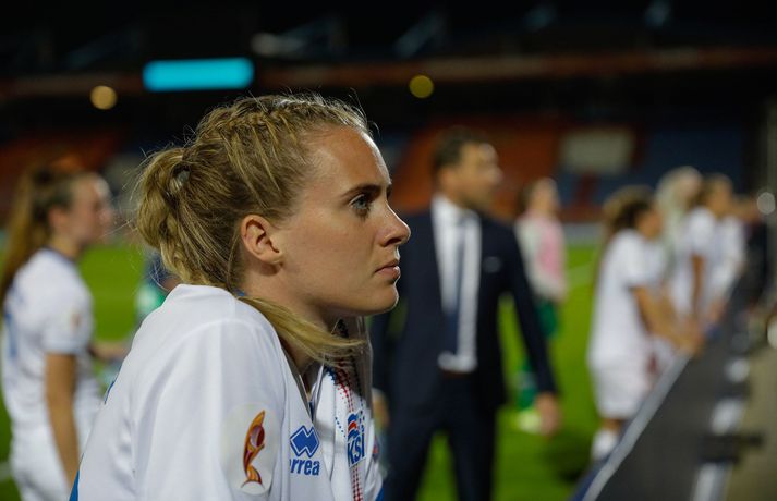 Sara Björk: "Ég er búin að jafna mig“ Fyrirliðinn gekk ótrúlega stolt en þó ótrúlega svekkt af velli í Tilburg í kvöld. 18. júlí 2017 22:12