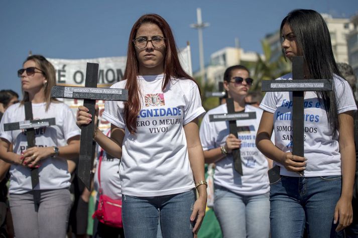 Ógnaröld í Ríó Margrét Helga Erlingsdóttir skrifar 23. júlí 2017 22:36 Í kringum níutíu lögreglumenn hafa fallið í átökum við glæpagengi. Vísir/AFP Á fimmtíu og fjögurra klukkustunda fresti er lögregluþjónn myrtur í Rio de Janeiro. Vinir og ættingjar lögreglumanna í Rio de Janeiro fjölmenntu í mótmælagöngu eftir að enn einn lögreglumaðurinn lét lífið í átökum við glæpagengi. Þetta kemur fram á vef breska ríkisútvarpsins BBC. Hundruð gengu fylktu liði meðfram Copacabana-ströndinni og kröfðust aukins stuðnings til handa lögreglunni og almenningi. Níutíu lögreglumenn hafa látist í átökum við glæpagengi í Rio de Janeiro það sem af er árinu. Það er mun meira en heildarfjöldi látinna lögreglumanna árið 2016. „Ég er full örvæntingar því eiginmaðurinn minn gæti orðið næstur,“ segir Rogeria Quaresma sem tók þátt í kröfugöngunni. Hún bætir auk þess við að það sé daglegt brauð að fjölskyldur leysist upp. Quaresma segist ekki taka það í mál að verða næsta ekkja. Í síðustu viku tilkynntu brasilísk yfirvöld að þau myndu senda þúsund ríkislögreglumenn til þess að styrkja staðbundna löggæslu í Rio de Janeiro. Fjölskyldur og vinir lögreglumanna segja að lögreglumenn í landinu skorti bæði heimildir og búnað til að stemma stigu við glæpaöldunni. Þá er þess einnig krafist að breytingar verði gerðar á almennum hegningarlögum. Þess er óskað að refsingin fyrir lögreglumorð verði þyngd. Í skýrslu frá Amnesty International er komið á framfæri áhyggjum af tíðni dauðsfalla í aðgerðum lögreglunnar. Meira en átta hundruð manns voru drepnir í Rio de Janeiro árið 2016.Fjölskyldur lögreglumanna í Brasilíu fjölmenntu í mótmælagöngu.Vísir/AFP Mest lesið Hljóp inn í brennandi byggingu til að bjarga nágrannanum Innlent „Hættulegasti maður Noregs“ fannst látinn í fangaklefa Erlent Sveitarstjóra ekki heimilt að banna hundahald Innlent Ellefu meðlimir glæpafjölskyldu teknir af lífi í Kína Erlent Leigubílar verði á lituðum númeraplötum Innlent Vísar ásökunum um óeðlileg afskipti í kosningabaráttu á bug Innlent Spyr hvort ekki sé tími á að Palestínumenn snúi aftur í friðinn heima Innlent Hátt í sjötíu ár síðan það snjóaði eins lítið Innlent Óttast vaxtahækkanir vegna sleggjunnar sem stjórnvöld „fengu í trýnið“ Innlent Hvort myndu þau hringja fyrst til baka í Pétur eða Hildi? Innlent Fleiri fréttir „Hættulegasti maður Noregs“ fannst látinn í fangaklefa Segir Venesúela munu þurfa að sækja um úthlutun úr eigin olíusjóði í Katar Ellefu meðlimir glæpafjölskyldu teknir af lífi í Kína Fundu fjarlægustu vetrarbrautina hingað til Segir útsendara „mögulega“ ekki hafa fylgt verkreglum Segir Trump ekki reiðan Íslandi Dómsdagsklukkan færð fram Sendir herskipaflota að Íran og hótar „ofbeldi“ Helsta klappstýran sögð slegin yfir sálarástandi Trumps Verða ekki viðstödd réttarhöld stjúpsonarins Vilja veita þúsundum sem dvelja ólölega á Spáni dvalarleyfi Ná saman um myndun minnihlutastjórnar í Hollandi Maður sprautaði illa lyktandi vökva á Ilhan Omar Róa á nýnasistamið í leit að ICE-liðum Dómari stöðvar brottflutning Liam og föður hans Bandaríkin hyggja á heræfingar í Mið-Austurlöndum Svíar líta til kjarnorkuvopna Tónninn breytist með yfirmannaskiptum hjá ICE Tala fallinna og særðra nálgast tvær milljónir Svíar hyggjast lækka sakhæfisaldur „Móðir allra samninga“ Um þriðjungur Dana fær 50 þúsund króna „matartékka“ beint í vasann frá ríkinu Segja mögulegt að yfir 30.000 hafi verið drepin í mótmælunum Franska þingið samþykkti símabann hjá börnum Evrópusambandið og Indland ganga frá fríverslunarsamningi Bovino sendur til Kaliforníu og Leavitt dregur í land Lét þingmenn heyra það og sagði Evrópu ekki geta varið sig sjálfa Trump sagður hafa lofað óháðum rannsóknum í Minnesota Einn lifði flugslys í Maine af en sjö dóu Hafa fundið lík síðasta gíslsins á Gasa Sjá meira