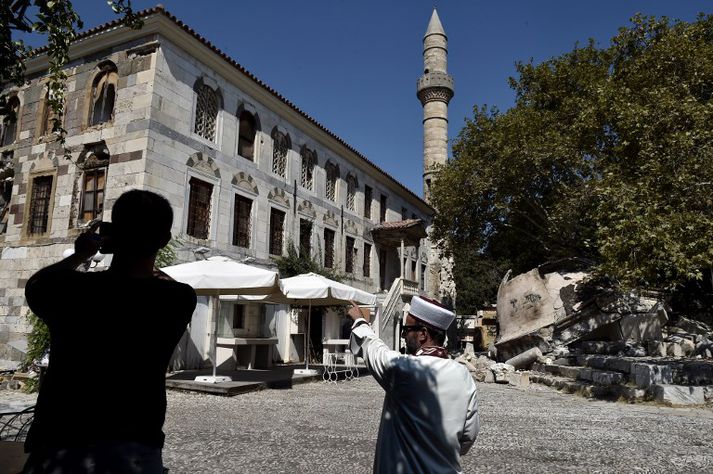 Tveir eru látnir og um hundrað særðust þegar skjálfti 6,5 að stærð varð í Eyjahafi í nótt. Grískir fjölmiðlar hafa eftir lögreglu þar í landi að sænskur maður hafi farist þegar þakið hrundi á skemmtistaðnum White Corner á eyjunni Kos. Þá greinir Guardian frá því að að tveir Svíar til viðbótar og Norðmaður hafi slasast alvarlega. Skjálftinn varð klukkan 1:30 að staðartíma, suðvestur af tyrkneska ferðamannabænum Marmaris og nærri grísku eyjunni Kos í Eyjahafi. AP greinir frá því að upptök skjálftans hafi verið á tíu kílómetra dýpi, tíu kílómetrum suður af Bodrum í Trklandi og sextán kílímetrum aust-norðaustur af Kos. Í frétt SVT segir að sænska utanríkisráðuneytið hafi staðfest að einhverjir Svíar hafi slasast í skjálftanum, en hefur enn ekki viljað staðfesta að Svíi hafi látið lífið. Grísk yfirvöld hafa varað við að íbúar og ferðamenn á eyjunum í Eyjahafi megi eiga von á eftirskjálftum. Samkvæmt upplýsingum frá íslenska utanríkisráðuneytinu hafa engar fréttir borist af slösuðum Íslendingum þó að vitað sé um einhverja Íslendinga á Kos.Uppfært 11:14: Sænska utanríkisráðuneytið hefur nú staðfest að sænskur karlmaður á þrítugsaldri hafi farist í skjálftanum.Vísir/AFPVísir/AFPVísir/AFP