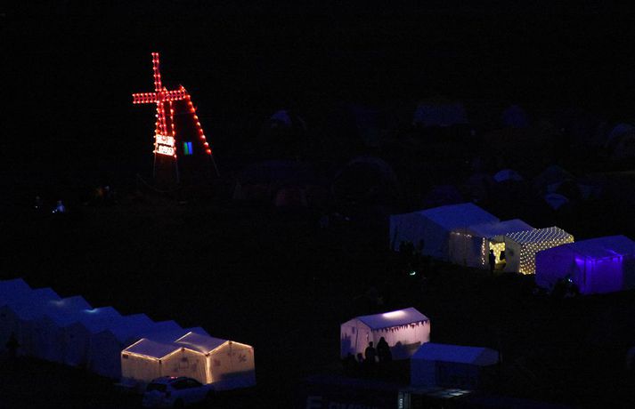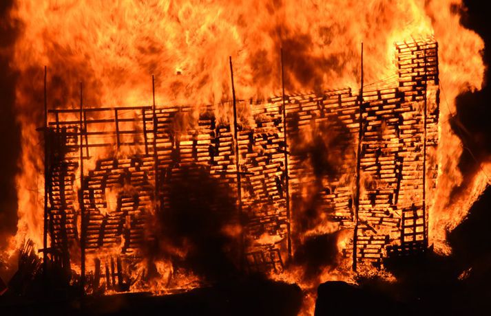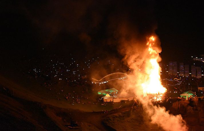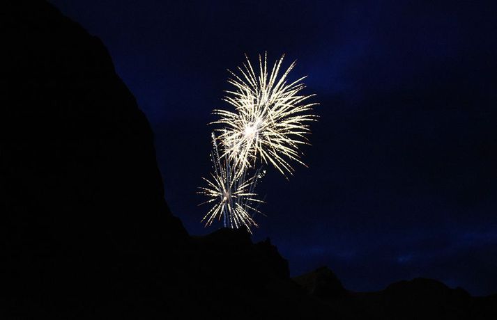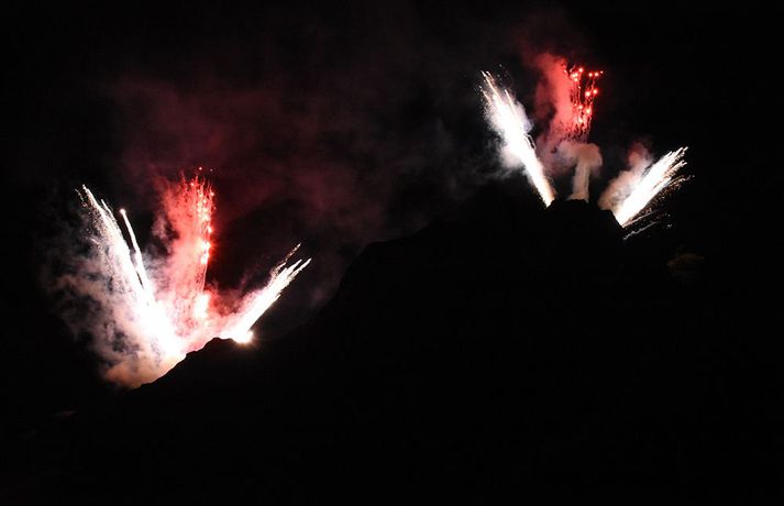 Það væsti ekki um eyjaskeggja þegar setning Þjóðhátíðar í Vestmannaeyjum fór fram í gærkvöldi. Ragnhildur Gísladóttir flutti Þjóðhátíðarlagið 2017, Sjáumst þar, ásamt því að halda uppi fjörinu eins og henni einni er lagið. Þegar leið að miðnætti hélt hópur manna að þremur stöðum fyrir ofan Dalinn, á Blátindi og sitthvoru megin við hann. Mennirnir báru upp á fjallið risavaxnar flugeldatertur og komu þeim fyrir þar og þegar klukkan sló tólf á miðnætti var skotið úr tertunum og blys látin renna niður að brennu til að kveikja í henni. Á miðnæturtónleikum stigu svo á stokk Emmsjé Gauti, Aron Can og Herra Hnetusmjör sem trylltu lýðinn. Hér að neðan má sjá myndir af herlegheitunum sem Óskar P. Friðriksson tók í gærkvöldi.