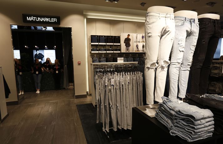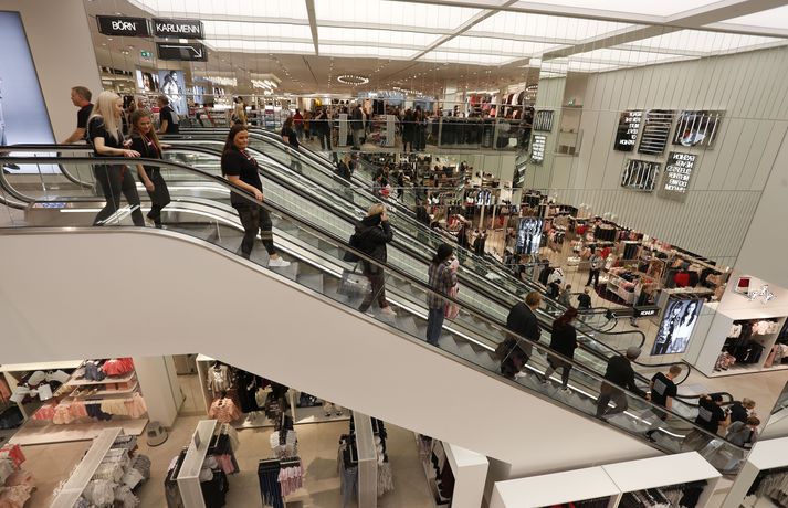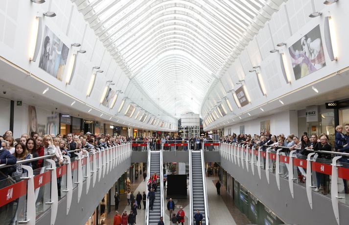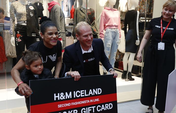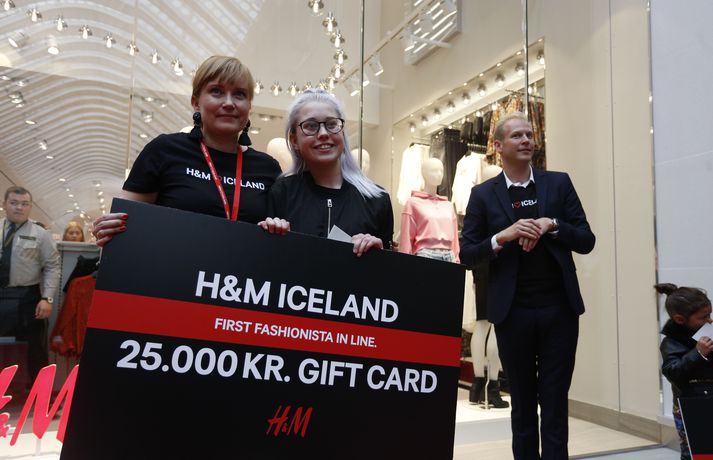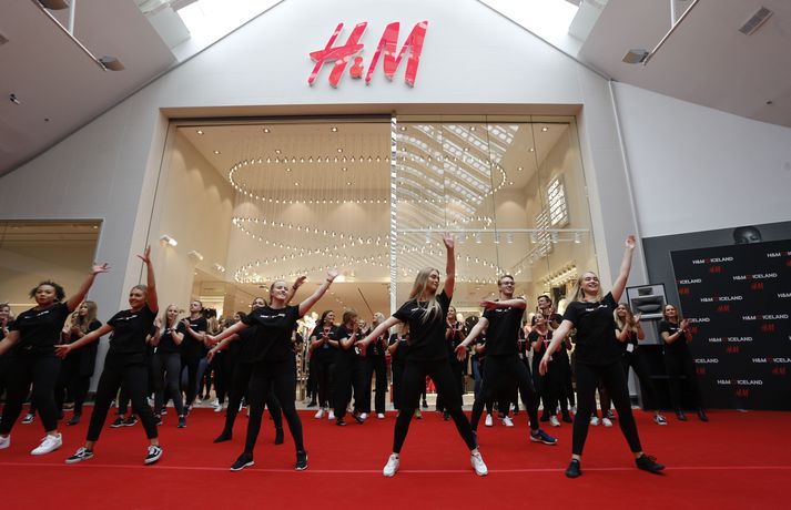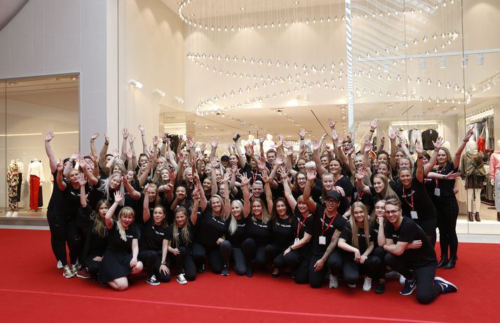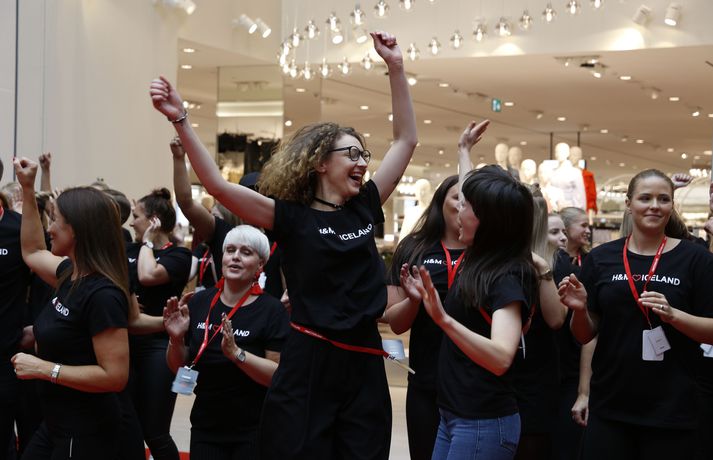 Margt var um manninn þegar verslun H&M opnaði dyrnar í Smáralind nú í hádeginu, Talið er að um 300 manns hafi staðið í röðinni þegar mest var og fylgdist Vísir grannt með gangi máli í beinni útsendingu. Leikkonurnar Vala Kristín Eiríksdóttir og Júlíana Sara Gunnarsdóttir, sem hvað þekktastar eru sem tvíeykið Þær Tvær, héldu uppi fjörinu og starfsmenn H&M stigu trylltan dans skömmu áður en verslunin loks opnaði.Sjá einnig: Í rúman sólarhring fyrir utan H&M: Höfuðverkur, svimi og blóðsykursfall en annars spennt Glatt var á hjalla og var ekki að sjá annað en að gestir Smáralindar kynnu vel að meta það sem fyrir augu bar. Ljósmyndari Vísis, Andri Marínó, var með myndavélina á lofti og fangaði augnablikið eins og honum einum er lagið.Vísir/Andri MarinóVísir/Andri Marinó