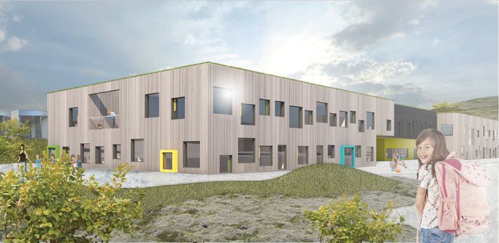 Fyrsta skóflustungan tekin að Skarðshlíðarskóla Sylvía Rut Sigfúsdóttir skrifar 21. ágúst 2017 17:06 Frá fyrstu skóflustungunni í dag - Guðlaug Kristjánsdóttir, Alexander Dýri Eyjólfsson, Kristbjörg Eva Arnarsdóttir og Rósa Guðbjartsdóttir. Fyrsta skóflustungan að byggingu Skarðshlíðarskóla í Vallarhverfinu í Hafnarfirði var tekin kl. 15 í dag. Skólinn er áttundi grunnskóli bæjarins en áætlanir gera ráð fyrir að skólinn verði eingöngu byggður fyrir eigið fé Hafnarfjarðar. Samkvæmt fréttatilkynningu verða það einkum tekjur af lóðasölu. Það voru þær Rósa Guðbjartsdóttir formaður bæjarráðs og formaður fræðsluráðs og Guðlaug Kristjánsdóttir forseti bæjarstjórnar og formaður fjölskylduráðs sem tóku fyrstu skóflustunguna ásamt þeim Alexander Dýra Eyjólfssyni elsta nemenda skólans og þeim yngsta, Kristbjörgu Evu Arnarsdóttur. ,,Þetta er bæði mikilvægur og ánægjulegur áfangi í hafnfirskri skólasögu,“ sagði Rósa Guðbjartsdóttir formaður bæjarráðs og fræðsluráðs við skóflustunguna í dag. ,,Vil ég óska tilvonandi nemendum, foreldrum, starfsmönnum og Hafnfirðingum öllum til hamingju og vona að gæfa eigi eftir að fylgja framkvæmdinni og skólastarfinu öllu í framtíðinni.“ Skarðshlíðarskóli hefur nú þegar hafið starfsemi en kennslan fer fram í safnaðarheimili Ástjarnarkirkju á meðan framkvæmdir við fyrsta áfangann standa yfir. 96 nemendur eru skráðir í skólann þetta skólaár en þegar hann verður fullbyggður verður hann tveggja hliðstæðu grunnskóli með 400 til 500 nemendur. Samkvæmt fréttatilkynningu frá Hafnarfjarðarbæ er gert ráð fyrir fjögurra deilda leikskóla fyrir 80 til 90 nemendur og auk þess útibúi frá Tónlistarskóla Hafnarfjarðar sem mun geta annað allt að 200 nemendum. Gert er ráð fyrir að fyrsta áfanga verði lokið haustið 2018 og þá flytji grunnskólinn í húsnæðið en húsnæði fyrir leikskólann á að verða tilbúið sumarið 2019. Stefnt er að því að skólinn verði fullbyggður sumarið 2020. Grunnskóli, leikskóli, íþróttahús og tónlistarskóli verður samtals 8.910 m2. Mest lesið Tæpum fjögur hundruð þúsund krónum eytt í vorgjöf Innlent „Það gerist ekkert ef ljósin eru slökkt“ Innlent Tvö erindi borist Þingvallanefnd vegna tónleika Kaleo Innlent Fyrstu viðræður Ísraela og Líbana Erlent Eftirför lögreglu endaði á Sorpu Innlent Tveir handteknu starfsmenn Eimskipa Innlent Skorað á Guðmund að snúa aftur heim Innlent Ný atvinnustefna vanmeti stærstu tæknibreytingu samtímans Innlent Segir viðræður mögulega hefjast á ný á næstu dögum Erlent „Ég reikna sterklega með því að karma banki upp á hjá þeim“ Innlent Fleiri fréttir Tæpum fjögur hundruð þúsund krónum eytt í vorgjöf Tvö erindi borist Þingvallanefnd vegna tónleika Kaleo „Það gerist ekkert ef ljósin eru slökkt“ Ný atvinnustefna vanmeti stærstu tæknibreytingu samtímans Eftirför lögreglu endaði á Sorpu Tveir handteknu starfsmenn Eimskipa Skorað á Guðmund að snúa aftur heim Slagsmál, falsað ökuskírteini og ölvunarakstur Keyrðu utan í bílinn í eftirförinni Endurskoða gjaldsvæði borgarinnar Verulegt magn fíkniefna og hönnunarbolli í vorgjöf Flogið til Vestmannaeyja til mánaðamóta „Þyngra fyrir fæti að fá vinnu“ Hælisleitendamálin settu þrýsting á Reykjanesbæ Vilja verða áheyrnarfulltrúar og hækka laun sín gríðarlega Unnar kjötvörur af matseðli í skólum: „Stranglega bannað að hafa pylsupartý“ Sex handteknir og um verulegt magn sterkra efna að ræða Ekki hægt að taka framboð gilt þó flokkur misskilji reglur Góðkunninginn í vikulangt gæsluvarðhald vegna smygls Kvikuhlaup enn líklegasta sviðsmyndin Áfrýja ekki dómi vegna dauða dóttur þeirra Slökkti í málskotsbeiðni Matvís vegna Flame Sundlaugar opnar lengur um helgar í sumar Hyggst banna mánaðarlega hækkun leigu Ari hlær að gagnrýni á myndbandið Kosningapallborð fréttastofu: Baráttan um Reykjanesbæ Fimm hundruð bleikjur sluppu úr landeldisstöð „Ég reikna sterklega með því að karma banki upp á hjá þeim“ Betur fór en á horfðist við Mývatn: Lenti á þvervegi og tókst á loft Ekkert að frétta af rannsókn þjófnaðarins í Freysnesi Sjá meira