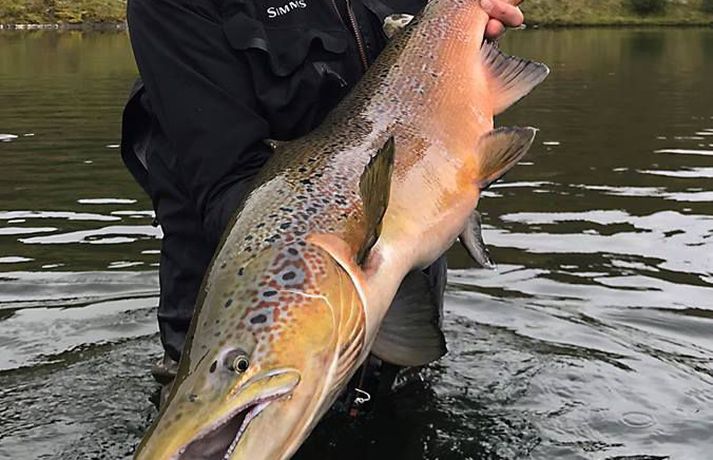 Núna er tíminn þar sem fréttir af stórum hausthængum fara að berast því hængarnir eru komnir á ferðina. Laxá í Nesi hefur oft borið höfuð og herðar yfir árnar þegar teknar eru saman tölur af veiddum stórlöxum og það verður líklega í þeim takti þetta sumarið líka. Nils Folmer sem allir veiðimenn þekkja orðið var við veiðar á Nesi og landaði í þeim túr meðal annars tveimur stórlöxum en þeir mældust 106 og 103 sm. Eins og sést á meðfylgjandi myndum eru þetta sannkallaðir höfðingjar og fallegri litir í laxfiskum líklega vandfundnir. Sá stærri veiddist í Beygjunni á fluguna Erna sem er hönnuð af Nils sjálfum og mældist laxinn 106 sm langur og 60 sm í ummáli. Seinni laxinn mældist 103 sm og 55 sm í ummáli og tók í Presthyl en var landað nokkru neðar eftir allharða baráttu en samkvæmt okkar heimildum þurfti aðstoð þriggja vaskra manna og árabát til að klára þennan slag. Það verður spennandi að fylgjast með næstu dögum og spurning hvaða stærðir við erum að fara sjá í hausthængunum en stærsti laxinn á þessum tímabili er 109 sm sem veiddist í Hofsá og það tvisvar.