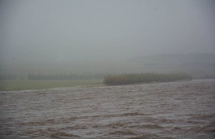 Talið er að tugir kinda hafi drepist þegar Jökulsá á Fljótsdal flæddi yfir bakka sína við Valþjófstaðanes eftir mikla úrkomu í dag og í nótt. Björgunarsveitarmenn sigla á bátum yfir túnin í von um að bjarga því sem hægt er að bjarga. „Það eru flöt tún hérna sem liggja að Jökulsá á Fljótsdal. Þetta er kallað Valþjófsstaðanes og yfir það liggur klofhátt vatn að stórum hluta,“ segir Agnar Benediktsson í Björgunarsveitinni jökli í samtali við Vísi. Töluverð úrkoma hefur verið á Suðausturlandi og Austfjörðum og hafa orðið miklir vatnavextir í ám og lækjum vegna þess. Á vef Veðurstofunnar má sjá að rennsli í Jökulsá í Fljótsdal hefur nærri þrefaldast á örfáum klukkutímum við Valþjófsstaðanes. Þá hefur vatnshæð hækkað um nærri einn og hálfan metra.Sigmar Daði Viðarsson.Sigmar Daði Viðarsson, formaður björgunarsveitarinnar, segist í samtali við Vísi telja að vatn sé enn að aukast á svæðinu. Verið er að taka stöðuna og skoða önnur svæði í grennd og hvort bregðast þurfi við þar. Agnar segir ljóst að tugir kinda hafi drepist en í samtali við Austurfrétt sagði Friðrik Ingi Ingólfsson, bóndi á Valþjófsstað 2, að um 200 lömb hafi átt að vera á túnunum. Samkvæmt upplýsingum frá lögreglunni á Egilstöðum hefur rignt mikið og er talið líklegt að þjóðvegur 1 um Skriðdal við Skriðuvatn lokist vegna vatnavaxtanna. Þá hefur björgunarsveitin á Höfn í Hornafirði aðstoðað bændur á Volaseli í Lóni í Austur-Skaftafellsýslu við að bjarga fé frá drukknun eftir mikla vatnavexti. Þar hefur einnig rignt mikið.Ljóst er að úrhellið hefur haft áhrif víðar á Austurlandi en í Fljótsdal.Að neðan má sjá myndir sem Ingi Ragnarsson, tók af Hamarsá í Hamarsfirði í ham í úrhellinu á Austurlandi. Smellið á örvarnar til að fletta eða flettið með fingrunum í snjallsíma.