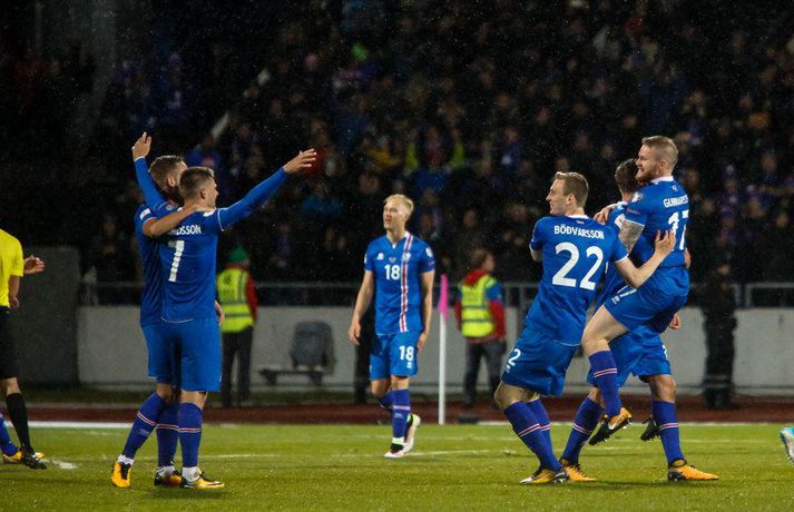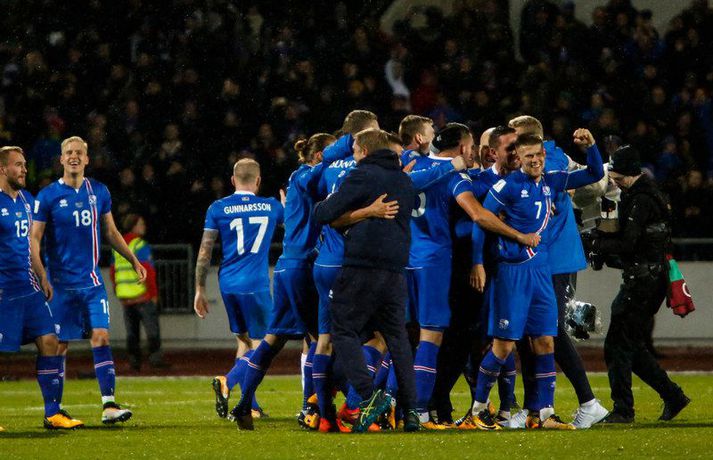 Ísland skrifaði knattspyrnusöguna í kvöld þegar íslenska karlalandsliðið tryggði sér sæti á HM í fyrsta sinn. Strákarnir í landsliðinu voru ekki aðeins að endurskrifa íslensku knattspyrnusöguna heldur einnig 88 ára sögu heimsmeistarakeppninnar. Aldrei áður hefur þjóð með minna en milljón íbúa komist inn á HM og Ísland tók þar með metið af Trínidad og Tóbagó. Ísland tryggði sér HM-sætið með 2-0 sigri á Kósóvó og er nú ein af sautján þjóðum sem eru komnar með farseðilinn til Rússlands næsta sumar. Eftir að hafa fagnað vel og lengi með stuðningsfólkinu sínu á Laugardalsvellinum lá leiðin niður á Ingólfstorgið þar sem tók við mikil sigurhátíð sem endaði með því að strákarnir okkar mættu og fóru upp á svið. Ljósmyndarar Vísis og Fréttablaðsins þeir Ernir Eyjólfsson, Eyþór Árnason, Anton Brink Hansen og Hanna Andrésdóttir voru með myndavélarnar á lofti í kvöld og mynduðu þennan sögulega dag í sögu íslensku þjóðarinnar. Það má þessar skemmtilegu myndir hér fyrir neðan.