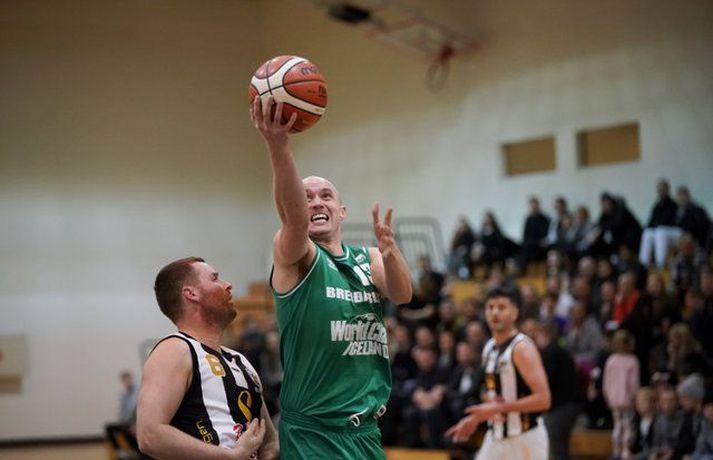 Marcus Walker, sem varð Íslands- og bikarmeistari með KR 2011, klæddist svarthvíta búningnum á ný í kvöld og sýndi að hann hefur engu gleymt. Walker skoraði 42 stig þegar KR b tapaði fyrir Breiðabliki, 100-108, í 16-liða úrslitum Maltbikars karla í körfubolta. Fleiri kunnar kempur spiluðu með KR b í kvöld, leikmenn á borð við Fannar Ólafsson, Helga Má Magnússon og Skarphéðin Frey Ingason. KR-ingar voru sterkari aðilinn framan af og leiddu með 16 stigum í hálfleik, 62-46. Í seinni hálfleik dró af Vesturbæingum og Blikar kláruðu dæmið í 4. leikhluta sem þeir unnu 34-13. Walker spilaði nánast allan leikinn, skoraði 42 stig, tók fimm fráköst og gaf sex stoðsendingar. Hann hitti úr 14 af 23 skotum sínum utan af velli. Jeremy Herbert Smith átti einnig frábæran leik fyrir Breiðablik. Hann skoraði 38 stig, tók sjö fráköst og gaf sex stoðsendingar.Eyþór Árnason, ljósmyndari Fréttablaðsins og Vísis, var í DHL-höllinni í kvöld og tók myndirnar hér fyrir neðan.KR b-Breiðablik 100-108 (30-28, 32-18, 24-29, 14-33)KR b: Marcus Walker 42/5 fráköst/6 stoðsendingar, Helgi Már Magnússon 29/4 fráköst, Ingvaldur Magni Hafsteinsson 9/6 fráköst, Ólafur Már Ægisson 8/6 stoðsendingar, Skarphéðinn Freyr Ingason 7/6 fráköst, Fannar Ólafsson 3, Guðmundur Þór Magnússon 2, Þórólfur H. Þorsteinsson 0, Ellert Arnarson 0, Johannes Arnason 0, Halldór Bachmann 0.Breiðablik: Jeremy Herbert Smith 38/7 fráköst/6 stoðsendingar, Ragnar Jósef Ragnarsson 23/7 fráköst, Árni Elmar Hrafnsson 17/4 fráköst, Sveinbjörn Jóhannesson 12, Snorri Vignisson 10/6 fráköst, Leifur Steinn Arnason 6/7 fráköst, Halldór Halldórsson 2/6 fráköst, Hafþór Sigurðarson 0, Hilmar Geirsson 0, Guðjón Hlynur Sigurðarson 0, Þröstur Kristinsson 0, Matthías Örn Karelsson 0, Björn Kristjánsson 0.