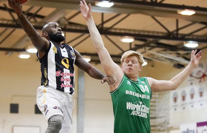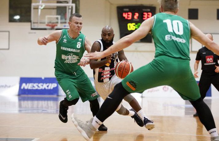 Marcus Walker hefur engu gleymt | Myndir Ingvi Þór Sæmundsson skrifar 3. nóvember 2017 22:04 Marcus Walker var illviðráðanlegur í kvöld. vísir/eyþór Marcus Walker, sem varð Íslands- og bikarmeistari með KR 2011, klæddist svarthvíta búningnum á ný í kvöld og sýndi að hann hefur engu gleymt. Walker skoraði 42 stig þegar KR b tapaði fyrir Breiðabliki, 100-108, í 16-liða úrslitum Maltbikars karla í körfubolta. Fleiri kunnar kempur spiluðu með KR b í kvöld, leikmenn á borð við Fannar Ólafsson, Helga Má Magnússon og Skarphéðin Frey Ingason. KR-ingar voru sterkari aðilinn framan af og leiddu með 16 stigum í hálfleik, 62-46. Í seinni hálfleik dró af Vesturbæingum og Blikar kláruðu dæmið í 4. leikhluta sem þeir unnu 34-13. Walker spilaði nánast allan leikinn, skoraði 42 stig, tók fimm fráköst og gaf sex stoðsendingar. Hann hitti úr 14 af 23 skotum sínum utan af velli. Jeremy Herbert Smith átti einnig frábæran leik fyrir Breiðablik. Hann skoraði 38 stig, tók sjö fráköst og gaf sex stoðsendingar.Eyþór Árnason, ljósmyndari Fréttablaðsins og Vísis, var í DHL-höllinni í kvöld og tók myndirnar hér fyrir neðan.KR b-Breiðablik 100-108 (30-28, 32-18, 24-29, 14-33)KR b: Marcus Walker 42/5 fráköst/6 stoðsendingar, Helgi Már Magnússon 29/4 fráköst, Ingvaldur Magni Hafsteinsson 9/6 fráköst, Ólafur Már Ægisson 8/6 stoðsendingar, Skarphéðinn Freyr Ingason 7/6 fráköst, Fannar Ólafsson 3, Guðmundur Þór Magnússon 2, Þórólfur H. Þorsteinsson 0, Ellert Arnarson 0, Johannes Arnason 0, Halldór Bachmann 0.Breiðablik: Jeremy Herbert Smith 38/7 fráköst/6 stoðsendingar, Ragnar Jósef Ragnarsson 23/7 fráköst, Árni Elmar Hrafnsson 17/4 fráköst, Sveinbjörn Jóhannesson 12, Snorri Vignisson 10/6 fráköst, Leifur Steinn Arnason 6/7 fráköst, Halldór Halldórsson 2/6 fráköst, Hafþór Sigurðarson 0, Hilmar Geirsson 0, Guðjón Hlynur Sigurðarson 0, Þröstur Kristinsson 0, Matthías Örn Karelsson 0, Björn Kristjánsson 0. Dominos-deild karla Mest lesið „Ísland í hópi með Norður-Kóreu og Íran“ Sport Alfreð klæddist kvennatreyjunni á leiknum við Ísland Handbolti Dönsk landsliðskona eignaðist barn tólf vikum fyrir tímann Handbolti Loksins þorði einhver í Kolbein sem stígur aftur inn í hringinn Sport Fanndís hefur ekkert heyrt frá Val og íhugar að hætta Íslenski boltinn „Búnt á skenkinn, Halli Egils á vegginn“ Sport Kærastan tók eftir því að eitthvað var að Handbolti Forðuðu sér frá bráðsmitandi óléttu í Fram Handbolti Segir allt tal um leiðinlegan fótbolta hjá Arsenal heimskulegt Enski boltinn Viðtökurnar á Anfield munu ekki breyta neinu Fótbolti Fleiri fréttir Íslandsmeistararnir mæta bikarmeisturunum Skagamenn senda Kanann heim Tilþrif 5. umferðar: Jukic stal senunni Ólíkar niðurstöður hjá landsliðsmönnunum Er Tóti Túrbó ofmetinn? „Gott að við gátum verið liðið sem kláraði þetta“ Erfitt kvöld fyrir Ármann og Tindastól Tvöföld tvenna Tryggva í tæpu tapi Góður lokaleikhluti tryggði Njarðvík sigurinn Styrmir með þrettán í öruggum sigri Zamora Uppgjörið: Valur - KR | 93-100 | KR hafði betur í slag Reykjavíkurstórveldanna Diljá stórkostleg í lokin í endurkomu í Hveragerði „Einn af bestu leikmönnunum í sögu íslensks körfubolta“ Hlýtur að vera alvöru krísufundur í Valsheimilinu um helgina Besta byrjun Chicago Bulls síðan Jordan var í liðinu Blikar áfram með fullt hús stiga ÍR - Ármann 96-83 | Nýliðarnir enn í leit að fyrsta sigrinum „Bara feginn að við fundum þó leið“ Tindastóll - Stjarnan 96-95 | Ótrúlegur endir á Króknum „Við þurfum að vera betri varnarlega“ Íslenski körfuboltinn og Grindavík verðlaunuð NBA-leikmaður með krabbamein Haukur Helgi: Höfum ekki verið að spila góðan körfubolta „Getum verið fjandi góðir“ Uppgjörið: Álftanes-Njarðvík 93-92 | Heitur Haukur var hetjan á Álftanesinu Uppgjörið: Keflavík - Þór Þ. 86-82 | Þarf ekki alltaf að vera fallegt ef það virkar „Varnarleikur snýst eiginlega bara um að nenna“ Uppgjörið: Valur - Grindavík 55-90 | Taplausir Grindvíkingar kjöldrógu Val „Búnir að sýna hvað við getum verið lélegir“ KR - ÍA 109-75 | KR-ingar sýndu allar sínar bestu hliðar þegar þeir burstuðu Skagamenn Sjá meira