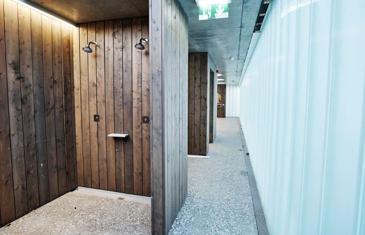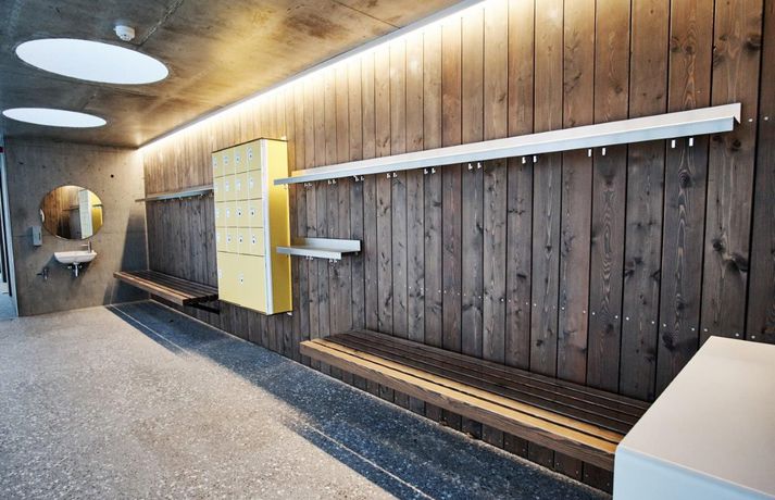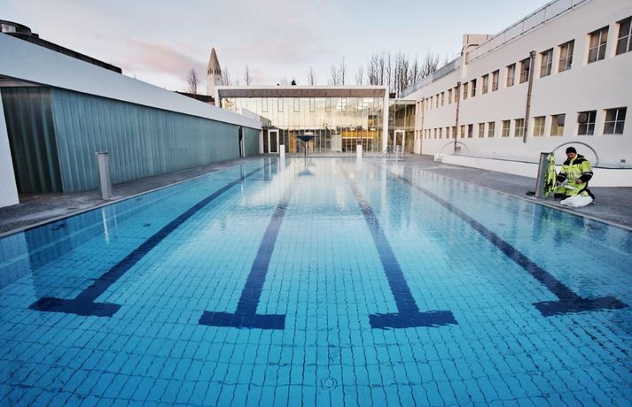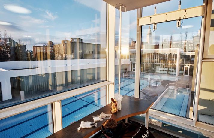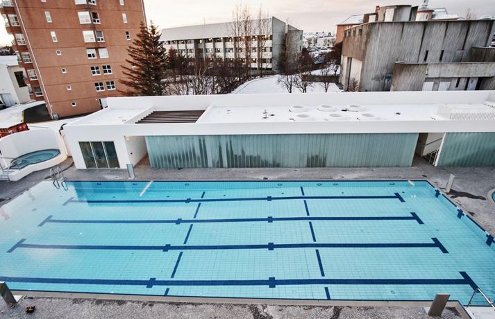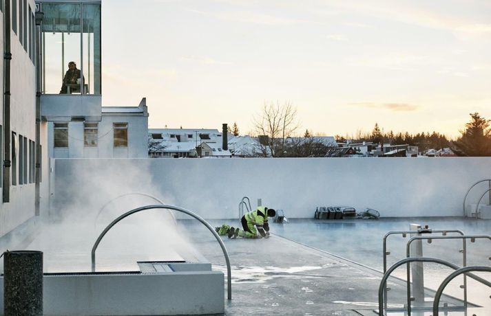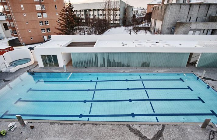 Þann 3. desember má reikna með fjölmenni í Sundhöll Reykjavíkur þegar ný útisundlaug verður vígð. Ókeypis verður fyrir gesti í sundlaugina þann daginn en daginn fer starfsemin af stað samkvæmt áætlun. Blaðamaður og ljósmyndari Vísis fengu að fara í skoðunarferð um nýju húsakynnin í morgun. Vatn er komið í útilaugina og pottana sömuleiðis. Raunar er nýja mannvirkið svo til tilbúið. Viðgerð stendur yfir á gamla karlaklefanum en tvær og hálf vika er til stefnu fram að opnun. Sundhöll Reykjavíkur við Barónstíg var tekin í notkun árið 1937 en arkitektinn var Guðjón Samúelsson, húsameistari ríkisins. Sundhöllin fagnar því 80 ára afmæli sínu á árinu. Þegar sundhöllin var opnuð var aðeins klefi fyrir karla á efri hæð. Tveimur árum síðar var geymslum á neðri hæð breytt í búningsklefa fyrir konur sem gátu þá sömuleiðis farið í sund. Búningklefar kvenna færast yfir í nýju bygginguna en karlarnir verða áfram í gömlu byggingunni. Til viðbótar eru útiklefar fyrir bæði kyn. Vaðpottur (38°C), heitur pottur (40°C) og kaldur pottur eru umhverfis útilaugina sem er með fjórum brautum. Hiti er í jörðu á bökkum laugarinnar til að bræða frost og snjó. Þá er gufubað við útiklefana en gufubaðið sem var við útipottana í gömlu lauginni verður breytt í þurrgufu (saunu). Áætlaður kostnaður við framkvæmdirnar er talinn um 1,6 milljarður króna. Ístak er aðalverktaki við framkvæmdirnar. Unnið var eftir vinningstillögu VA arkitekta sem urðu hlutskarpastir í hönnunarsamkeppni um útisvæðið. Forstöðumaðurinn Logi Friðfinnsson segir aðstandendur hvað stoltasta af aðgengi við fatlaða sem verði gríðarlega gott með sérstökum klefum og lyftum í húsnæðinu og ofan í laugina. Breytingar, stækkun og aukinn þjónustutími, hafa í för með sér að starfsfólki fjölgar nokkuð en aðstaða starfsfólks verður allt önnur og betri en verið hefur. Logi segir að fjölgað verði um tvo starfsmenn á hverri vakt auk þess sem átján ungmenni kom að störfum í hlutastarfi um helgar. Nándin við miðbæinn gæti gert það að verkum að ferðamenn muni streyma í laugina. Logi segir starfsfólkið búa sig undir mikla aðstókn. „Það er mikið um gististaði í nágrenninu og svo er mikil íbúabyggð í kring í göngufæri.“ Sundhöllin verður með sama opnunartíma og Laugardalslaugin, þ.e. frá 6:30-22 á virkum dögum og frá 8-22 um helgar. Nánar um hönnun laugarinnar Lögð var áhersla á að form og fyrirkomulag viðbyggingarinnar tæki mið af þessu þannig að aðalbyggingin nyti sín sem best um leið og til yrði samstæð heild. Laugargólf nýs útisvæðis er hæð neðar en aðkoma frá Barónsstíg, með þessu móti er suðurhlið aðalbyggingar að mestu óbreytt og verður vel sýnileg frá götunni vegna þess hve langhliðar nýbyggingar eru gagnsæjar. Léttleiki var í fyrirrúmi við mótun viðbyggingar og hæð og hlutföll, bæði flata og glugga, laga sig að eldri lágbyggingu. Gengið er inn í nýjan afgreiðslusal frá Barónsstíg. Úr salnum má njóta útsýnis yfir laugasvæði. Aðkoma að núverandi búningsklefum karla er um tengibyggingu en nýir búningsklefar kvenna og búningsherbergi fatlaðra koma á neðri hæð viðbyggingar. Útiklefar og eimbað koma í lágbyggingu meðfram suðurlóðarmörkum. Frambygging og lágbygging meðfram suðurlóðarmörkum mynda ásamt eldri byggingu og veggjum skjólgott laugasvæði. Á útisvæði koma fjögurra brauta, 25 metra löng útilaug, vaðlaug fyrir börn og tveir heitir pottar, sá stærri undir suðurhlið þar sem sólar nýtur yfir daginn.Fleiri myndir úr Sundhöllinni má sjá hér að neðan. Hægt er að fletta myndunum með því að ýta á örvarnar eða draga myndirnar ef þú ert að lesa í snjallsíma. Nýja afgreiðslan í Sundhöllina. Þar fyrir aftan er aðstaða fyrir starfsfólk. Á neðri hæðinni er kvennaklefinn og klefar fyrir starfsfólk.Vísir/Anton BrinkKaldi potturinn sem var um 10°C þegar blaðamaður kom við í dag. Auðvelt er að stjórna hitastiginu og hægt að breyta honum í heitan pott með léttum hætti.Vísir/Anton BrinkÚr kvennaklefanum í nýbyggingunni. Karlarnir verða áfram í sömu klefum sem verið er að gera við þessa dagana.Vísir/Anton BrinkNýja útisvæðið séð að ofan. Á hægri hönd er nýi inngangurinn á efri hæð og kvennaklefinn á þeirri neðri. Útilklefarnir eru í löngu álmunni vinstra megin á myndinni.Vísir/Anton BrinkÚr vaktturninum þar sem sundlaugaverðir hafa aðstöðu.Vísir/Anton BRink