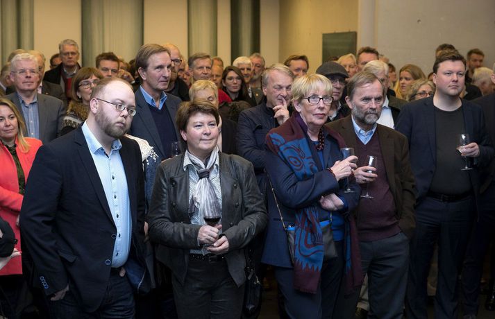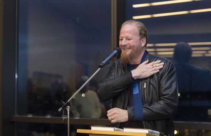 Orri Páll Ormarsson, blaðamaður og rithöfundur, mætti í útgáfuhóf vegna nýrrar bókar sinnar, ævisögu Gunnars Birgissonar, í fatla. Orri slasaðist á fjölmiðlamótinu í fótbolta síðastliðinn laugardag þegar hann reyndi að ná boltanum af syni sínum, Nökkva Fjalari, sem er einn af forsprökkum Áttunnar. Ekki vildi betur til en að Orri var aðeins of seinn, flæktist einhvern veginn í löppunum á Nökkva og steinlá. „Mér tókst að slíta liðband í öxlinni en það hefði getað verið verra sögðu sérfræðingarnir. Viðbeinið stóð þarna eitthvað út í loftið. Ég þarf ekki að fara í aðgerð en verð í fatla í einhverjar vikur,“ segir Orri. Mikið fjölmenni var í hófinu og var mikið hlegið og mikið brosað enda Orri annálaður gleðigjafi. Hann segir að Nökkvi eigi alveg heimboð áfram í sunnudagslærið. „Þetta skrifast alfarið á mig. Ég hljóp einhvern veginn aftan á hann. Ég var aðeins of seinn og flæktist í honum og hann steinlá líka. Ég get ekki bent á nokkurn annan nema kannski Kristófer, kokkinn hér uppi í Morgunblaði. Hann er alltaf með svo helvíti góðan mat að það er farið að hægjast á manni,“ segir hann.