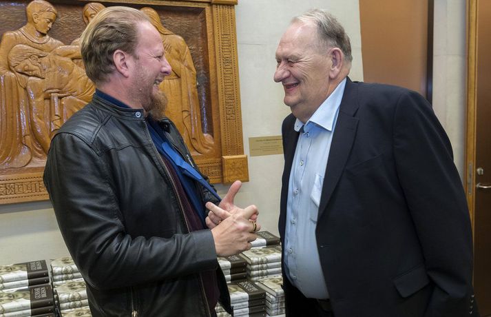 Nökkvi slasaði pabba sinn á fótboltamóti Benedikt Bóas skrifar 16. nóvember 2017 15:30 Feðgarnir Nökkvi Fjalar og Orri Páll voru glæsilegir sem fyrr – þrátt fyrir fatlann. Fréttablaðið/Vilhelm Orri Páll Ormarsson, blaðamaður og rithöfundur, mætti í útgáfuhóf vegna nýrrar bókar sinnar, ævisögu Gunnars Birgissonar, í fatla. Orri slasaðist á fjölmiðlamótinu í fótbolta síðastliðinn laugardag þegar hann reyndi að ná boltanum af syni sínum, Nökkva Fjalari, sem er einn af forsprökkum Áttunnar. Ekki vildi betur til en að Orri var aðeins of seinn, flæktist einhvern veginn í löppunum á Nökkva og steinlá. „Mér tókst að slíta liðband í öxlinni en það hefði getað verið verra sögðu sérfræðingarnir. Viðbeinið stóð þarna eitthvað út í loftið. Ég þarf ekki að fara í aðgerð en verð í fatla í einhverjar vikur,“ segir Orri. Mikið fjölmenni var í hófinu og var mikið hlegið og mikið brosað enda Orri annálaður gleðigjafi. Hann segir að Nökkvi eigi alveg heimboð áfram í sunnudagslærið. „Þetta skrifast alfarið á mig. Ég hljóp einhvern veginn aftan á hann. Ég var aðeins of seinn og flæktist í honum og hann steinlá líka. Ég get ekki bent á nokkurn annan nema kannski Kristófer, kokkinn hér uppi í Morgunblaði. Hann er alltaf með svo helvíti góðan mat að það er farið að hægjast á manni,“ segir hann. Mest lesið Tchéky Karyo látinn Lífið Stjörnurnar á hrekkjavökunni: Louvre-þjófur og vampírur Lífið Samkeppnin í New York minnti á X-Factor keppni Menning Telur Sweeney hafa verið blekkta í kjólinn Tíska og hönnun Fasteignasalar og ofurskvísur í Októberfest stemningu Lífið Ískyggilega líkur ofurfyrirsætu: „Ég er með píku“ Lífið Breytti um nafn eftir djúpa ástarsorg Tónlist Nýr skemmti- og spjallþáttur á Sýn Lífið Fréttatía vikunnar: Ríkislögreglustjóri, fellibylur og rasisti Lífið Fundin eftir sjö vikur á vergangi: „Takk hver sem þú ert“ Lífið Fleiri fréttir Tchéky Karyo látinn Stjörnurnar á hrekkjavökunni: Louvre-þjófur og vampírur Fréttatía vikunnar: Ríkislögreglustjóri, fellibylur og rasisti Láta forræðishyggju hinna fullorðnu ekki fipa sig Heillandi raðhús Evu Maríu og Trausta til sölu Nýr skemmti- og spjallþáttur á Sýn Fundin eftir sjö vikur á vergangi: „Takk hver sem þú ert“ Fresta hrekkjavöku til að tryggja öryggi lítilla skrímsla Stjörnurnar skinu skært á sögulegum sjónvarpsverðlaunum Atli Steinn fann ástina á ný „Síðasta flugtak“ Play í Gamla bíói Már Gunnars genginn út Verk Þórdísar Erlu munu prýða auglýsingaskilti borgarinnar Steingleymdi að taka niður sólgleraugun Hvenær má byrja að spila jólalög? Stílhrein og stílíseruð útsýnisíbúð við Heiðmörk Ískyggilega líkur ofurfyrirsætu: „Ég er með píku“ „Get ekki gengið óstudd og framundan er mikil endurhæfing“ Ótrúlegur bílskúr Hönnu Rúnar: „Hvar ertu?“ Lét flúra brúðkaupsdaginn á sig en gerði mistök Sviti, mjólk og hóstakast eftir að hafa manað hvor annan Yfir 170 góðgerðafélög hlutu styrk í áheitasöfnun Reykjavíkurmaraþons Sigurjón og Sóley gjörbreyttu eldhúsinu með einstakri útkomu „Alvöru“ jólasveinn gisti á Hótel Rangá Fasteignasalar og ofurskvísur í Októberfest stemningu Eitt glæsilegasta hús Reykjavíkur til sölu „Þetta er það fallegasta sem einhver hefur sagt um mig“ Hvað þýðir „six-seven“? Smáforrit til að deila heimilisverkum: „Fæ þrjú stig fyrir að þurrka af á heimilinu“ Kynslóðabilið kom í ljós þegar umræðan beindist að blautbolakeppni Sjá meira