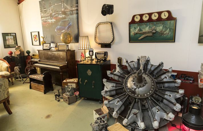 Gersemar geymdar á Garðskaga Garðar Örn Úlfarsson skrifar 16. desember 2017 13:00 Hilmar Foss í "Stóra húsinu“. Flugvélin er Cessna 150 árgerð 1973. "Helgi Jónsson flugmaður gaf mér vænginn, en hann var skemmdur og því í lagi að opna að hluta svo innviðir sæjust,“ segir Hilmar. Ljósin yfir billjardborðinu rakst Hilmar á og keypti í Góða hirðinum er hann var þar að fylgja dóttur sinni. "Var ekta ljós fyrir snókerborð, aldrei notað og kostaði heilar 1.500 krónur.“ Myndir/Vilhelm Þetta er bara dót,“ segir Hilmar Foss um ýmsa stórmerkilega og spennandi muni sem hann hefur komið fyrir í stórri skemmu nærri íbúðarhúsi sínu á Garðskaga. Óhætt er að segja að kenni ýmissa grasa í dótinu hans Hilmars. Glæsibifreiðar og flugvélar eru þar innan um gamlar bensíndælur, endann af gamla barnum úr Hressingarskálanum, köfunarbúning, siglingaljós úr gamla Goðafossi og hvað eina. „Ég kalla þetta bara Stóra húsið,“ segir Hilmar um safnið sitt sem hann kveðst aldrei hafa hugsað sem safn.Ýmsir bílar og hluti úr flugvél í einum salnum. Gína í búningi breska flughersins í forgrunni. „Gínan var auglýst þegar verslunin Elfur á Laugavegi hætti. Mér datt í hug að það væri góð hugmynd að eignast gamla gínu og fór og sótti hana á laugardegi í góðu veðri. „Daman“ var aðeins klædd í rauðar blúndunærbuxur og eina bílastæðið sem ég fékk var á Grettisgötu. Það var ekkert annað að gera en að rölta með „dömuna“ fáklædda þangað,“ rifjar Hilmar upp. En hvernig byrjaði þetta allt saman? „Þetta byrjaði aldrei en umgjörðin sem var þegar maður ólst upp var fótógenísk, hugguleg og skemmtileg,“ útskýrir Hilmar og á þar við æskuheimili sitt hjá foreldrum sínum, þeim Hilmari Foss, löggiltum skjalaþýðanda og dómtúlki, og Guðrúnu G. Foss. Hann rifjar upp þegar hann var lítill drengur og fjölskyldan bjó á Þinghólsbraut í Kópavogi. „Við mamma fórum austur í sveitir þar sem mamma þekkti gamla konu sem hét Aldís og var næstum bogin ofan í gólf. Aldís hafði komist á snoðir um gamlan strokk sem lá úti í móa. Við fórum og sóttum strokkinn og hann er núna í Stóra húsinu,“ segir Hilmar frá. Þannig að þetta var alltaf partur af prógramminu – svipað og að sá sem er alinn upp við músík er líklegur til að spila á gítar.“ Meðal hluta sem Hilmar á enn er leikfangajárnbraut sem hann fékk er hann var tíu ára. „Ég á hana í kassanum. Það var ekki viljandi, það bara gerðist. Það er allt á sínum stað – við gætum sett hana upp á eftir og farið að leika okkur,“ segir hann.„Eldhúsið okkar – barinn – annar endinn af langa barnum, sem var á Hressó í Austurstræti. Einfaldasta eldhúsinnréttingin, sem mér datt í hug. Hinn endinn er í ísbúð í Keflavík og miðjan sjálfsagt einhvers staðar,“ segir Hilmar. Fjölskyldan er stundum með borðhald í skemmunni er gesti ber að garði.En hendir Hilmar engu? „Jú rusli,“ svarar hann strax. Hluti af mununum er frá foreldrum Hilmars. „Svo hefur annað bara slysast inn. Það er eins og maður segir á ensku: It seemed like a good idea at the time. Það eru hlutir sem grípa augað hverju sinni,“ útskýrir hann hvernig hlutirnir veljast. Hilmar er að velta fyrir sér hvernig hann geti hleypt fólki að því að skoða þetta merkilega safn sem er ekki safn. Þegar hafi nokkrir hópar skoðað sig um í Stóra húsinu og hann segir viðbrögðin hafa verið góð. Meðal annars hafi litið við hópur fyrrverandi starfsmanna Landhelgisgæslunnar og þótt mjög skemmtilegt. „Nú veit ég hvernig himnaríki lítur út, sagði einn sem kom hingað og þakkaði fyrir sig og fór.“Blái bíllinn fremst er MGB-GT, árgerð 1975. Breska leikkonan Hayley Mills átti bílinn á undan Hilmari og Margréti Rósu Pétursdóttur konu hans. Þau eignuðust bílinn fyrir þrjátíu árum. „Rósa sá hann nærri Harrods í London með „for sale“ í glugga,“ segir Hilmar. Þá sést í hvítan Jaguar MK2 3.8 árgerð 1960 og dökkbláan Jaguar XJ6 árgerð 1976. Guli Jagúarinn, er E-Type árgerð 1969. Myndir/VilhelmMeðfylgjandi myndir sýna brot af samansafni Hilmars af alls kyns skemmtilegum munum sem má sjá í Stóra húsinu. En er einhver hlutur sem Hilmar hefur alltaf langað í en ekki komist yfir ennþá? „Allt frá því ég var lítill strákur hefur verið draumur að eignast parísarhjól, það er ágætt að eiga draum, sem endist alla ævina,“ segir Hilmar Foss. Mest lesið Fá bandarísku sérgreinarnar ekki viðurkenndar Innlent „Manni líður bara eins og maður sé í James Bond mynd“ Innlent Andstaða eykst í Noregi gegn aðild Erlent Þingmenn segja eitt en Rubio annað: Margsaga um uppruna og tilgang friðartillagnanna Erlent „Við hjá ZoloIceland leggjum áherslu á spilavíti“ Innlent Hafna kröfu Rússa um undanhald frá Dónetsk Erlent Hefur látið sérsveitarmenn FBI vernda kærustu sína Erlent Læknar á sautján sólarhringa bakvakt Innlent Stakk af eftir harðan árekstur Innlent Öllum í Brussel drullusama um hefndaraðgerðir Íslands Innlent Fleiri fréttir Öllum í Brussel drullusama um hefndaraðgerðir Íslands „Við hjá ZoloIceland leggjum áherslu á spilavíti“ Óásættanlegt að ríflega helmingur sveitarfélaga falli í málefnum fatlaðra Heilbrigðisstofnun Suðurlands þarf nýja byggingu á Selfossi Fá bandarísku sérgreinarnar ekki viðurkenndar Stefnuleysi í málefnum fatlaðra og versnandi efnahagshorfur Bíll alelda við Setbergsskóla í nótt „Manni líður bara eins og maður sé í James Bond mynd“ Vextir, umhverfið og pólitíkin innan landssteina og utan Stakk af eftir harðan árekstur Læknar á sautján sólarhringa bakvakt „Elvis Presley“ skemmti á hjúkrunarheimili á Selfossi Þótti grunsamlegur og reyndist vera me
