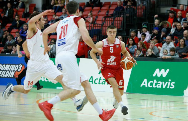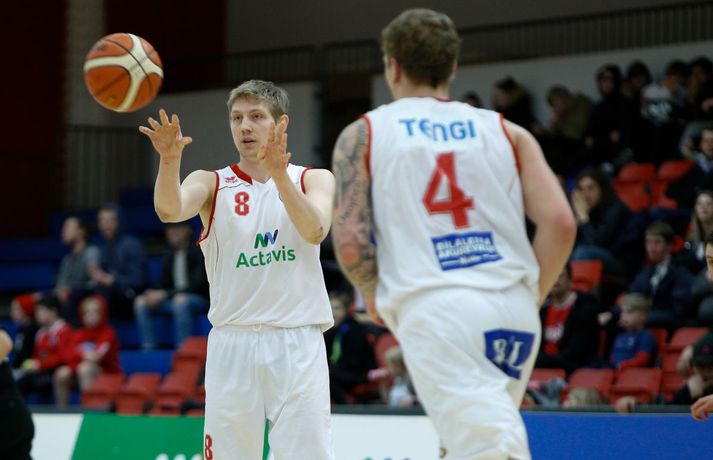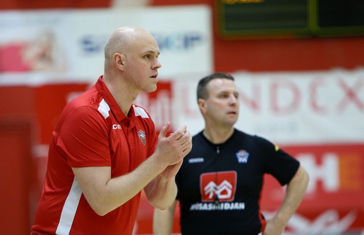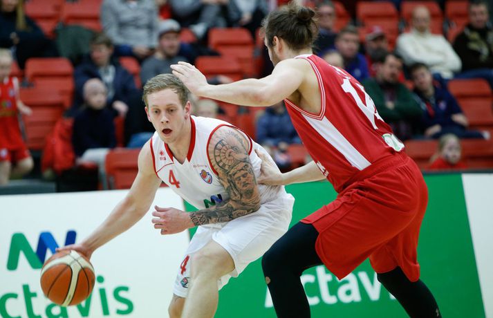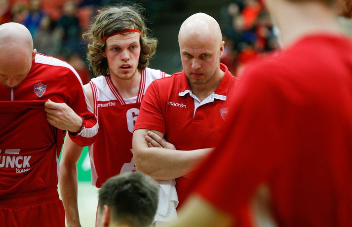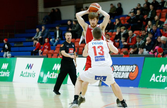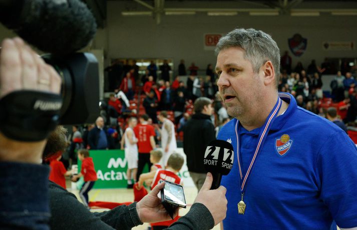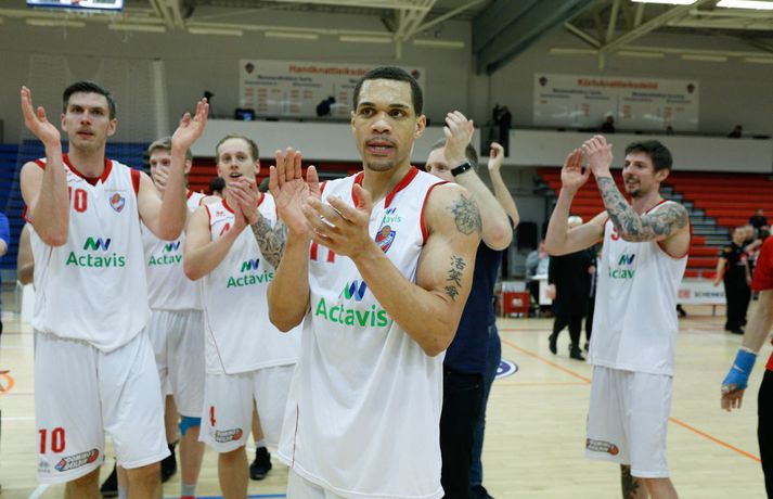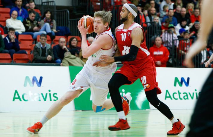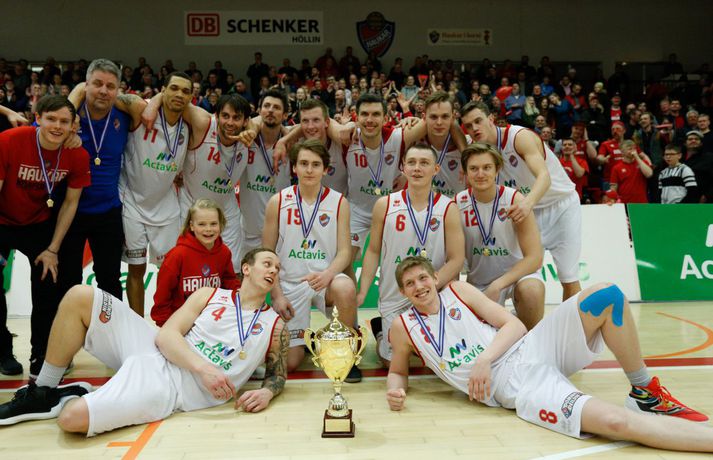 Haukar urðu deildarmeistarar í Dominos deild karla í körfuknattleik með því að vinna Val með 13 stigum 83-70 fyrr í kvöld að Ásvöllum. Haukar spiluðu af eðlilegri getu í leiknum og hittu skotunum sínum vel í fyrsta leikhluta á meðan Valsmenn hittu afleitlega en til marks um það þá fór ekki nema eitt af fyrstu 10 skotum gestanna ofan í körfuna og skapaði það gott forskot fyrir Haukana sem slepptu því ekki það sem eftir lifði leiks. Valsmenn náðu vopnum sínum aftur og gerðu nokkrar heiðarlegar tilraunir til að minnka muninn en Haukar hafa nóg af góðum leikmönnum í sínu liði til að svara áhlaupunum sem þeir og gerðu. Heimamenn fengu þó næg tækifæri til að leyfa yngri mönnum að spila mínútur í leiknum en það gæti verið mikilvægt þegar í úrslitakeppnina er komið sem flestir hafi fengið nasaþef af úrvalsdeildarkörfubolta.Afhverju unnu Haukar? Eins og áður segir þá eru Haukar með betra körfuboltalið en Valur. Þeir eiga fyrsta sætið skilið í deildarkeppninni en þeir hafa spilað mjög vel á löngum köflum. Það hjálpaði þeim þó ða Valsmenn hittu hrikalega illa í fyrsta leikhluta en það skapaði gott forskot.Hvað gekk illa? Hjá Val gekk mjög illa að hitta í fyrsta leikhluta en þegar þeir komust í takt við leikinn varð nýting þeirra eðlilegri. Það gekk í raun og veru ekkert illa hjá heimamönnum en þeir þurftu á köflum að standast áhlaup og pressuvörn Valsmanna en á suttum tíma í seinni hálfleik þá gekk Haukum illa að halda boltanum innan liðsins en það var ekkkert sem eitt leikhlé gat ekki lagað.Bestu menn vallarins? Haukamenn fengu gott framlag frá mörgum mönnum í kvöld og voru fimm leikmenn sem skoruðu 10 stig eða meira. Stigahæstur var Paul A. Jones III með 21 stig en næst honum kom Haukur Óskarsson með 20 stig. Hjá Val var Urald King stigahæstur en hann náði sér í tröllatvennu og var með 24 stig og 17 fráköst. Flest stiganna komu þó í seinni hálfleik en honum gekk illa í þeim fyrri að skora.Hvað næst? Valur eru komnir í sumarfrí og nú byrjar undirbúningur fyrir næsta tímabil en þetta er í fyrsta sinn síðan 1997 sem þeir halda sæti sínu í úrvalsdeild eftir að hafa komið upp. Haukar fagna í kvöld deildarmeistaratitli þar sem væntanlega verður gætt sér á eins og einni Dominos pizzasneið en það er skammt stórra högga á milli. Eftir Haukunum bíða nefnilega Keflvíkingar í fyrstu umferð úrslitakeppninnar sem hefst eftir slétta viku. Það hafa oft verið þægilegri áttunda sætis lið sem deildarmeistarar mæta í fyrstu umferð en það er aldrei að vita hvaða Keflavíkur lið mætir til leiks í næstu viku.Haukar-Valur 83-70 (21-11, 20-16, 24-22, 18-21) Haukar: Paul Anthony Jones III 21, Haukur Óskarsson 20/5 fráköst, Finnur Atli Magnússon 12/10 fráköst, Breki Gylfason 11, Hjálmar Stefánsson 10/4 fráköst, Emil Barja 9/6 fráköst/6 stoðsendingar.Valur: Urald King 24/17 fráköst/4 varin skot, Austin Magnus Bracey 23/4 fráköst, Sigurður Dagur Sturluson 7, Þorgeir Kristinn Blöndal 7, Benedikt Blöndal 3/7 stoðsendingar, Gunnar Ingi Harðarson 2, Birgir Björn Pétursson 2/4 fráköst, Illugi Auðunsson 2/4 fráköst.Ívar Ásgrímsson, þjálfari Hauka.Vísri/Andri MarinóÍvar Ásgrímsson: „Tilfinningin er frábær“ „Tilfinningin er frábær, þetta er mjög erfiður titil að vinna þar sem maður þarf að vera einbeittur í heilan vetur til að vinna hann. Við Haukar höfum verið að leitast eftir titli í nokkur ár og nú er hann kominn en þetta er bara byrjunin, við megum ekki missa okkur heldur verðum við að halda haus og vera tilbúnir að mæta erfiðum andstæðingum í Keflavík“, sagði glaður þjálfari Hauka eftir að búið var að afhenda Haukamönnum deildarmeistarabikarinn fyrr í kvöld. Ívar var spurður að því hvað hafði skilað þessum sigri í kvöld sem tryggði titilinn. „Vörnin var frábær hjá okkur, sóknin var pínu mistæk en vörnin var frábær. Við héldum líka haus allan tímann og þó að Valur hafi komið með nokkur áhlaup sem við stóðum af okkur af því að við héldum einbeitingu á leiknum“. Eins og áður segir þá mæta Haukar liði Keflavíkur í fyrstu umferð og Ívar var beðinn um að leggja mat á viðureignina og mikilvægi heimavallarins í einvíginu. „Mér líst bara mjög vel á, við vitum það að þetta verður gríðarlega erfitt. Við erum kannski ekki sammála varaformanni þeirra að þeir séu aumingjar, við höldum og vitum að við erum að fara að spila á móti mjög góðu liði þannig að við búumst við hörkuviðureign og þurfum að búa okkur vel undir það. Við höfum trú á því að heimavöllurinn skipti máli, við höfum bara tapað einum leik sem var reyndar á móti Keflavík og við eigum þess vegna harma að hefna. Við förum ekki að tapa fleiri leikjum hér heima.“ Ágúst Sigurður Björgvinsson: Markmiðið náðistÁgúst Björgvinsson, þjálfari Vals.Vísir/Andri MarinóÞjálfari Valsmanna var ánægður með sína menn í kvöld þrátt fyrir tap. Hann kallaði eftir baráttu og vilja fyrir leik og var að sögn ánægður með framlag sinna manna. „Ég er ánægður með strákana, þeir börðust og gáfumst ekki upp. Við vorum að spila á móti mjög vel mönnuðu Haukaliði sem var að spila upp á deildarmeistaratitilinn og það var ekki að sjá að það væri 10 sæta munur á liðunum. Ég var mjög ánægður með framlag minna manna í kvöld“. Aðspurður hvort að Valsmenn hefðu getað gert eitthvað betur í kvöld þá stóð ekki á svari en Valsmenn hefðu mátt hitta betur og þá sérstaklega í fyrri hálfleik. Ágúst var beðinn um að gera upp tímabilið hjá Val í fáum orðum. „Markmiðið náðist. Það eru fæstu orðin sem ég get haft um tímabilið. Það var að halda sæti sínu í deildi