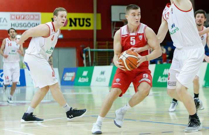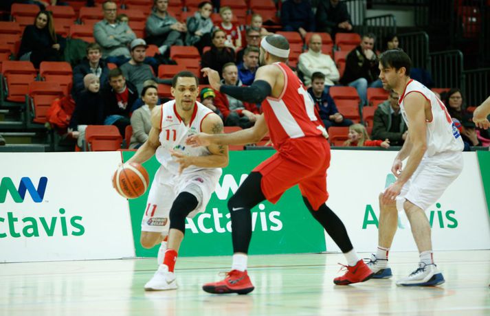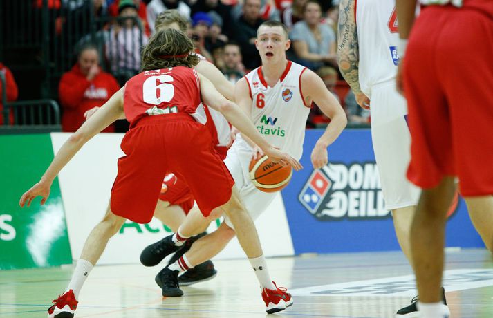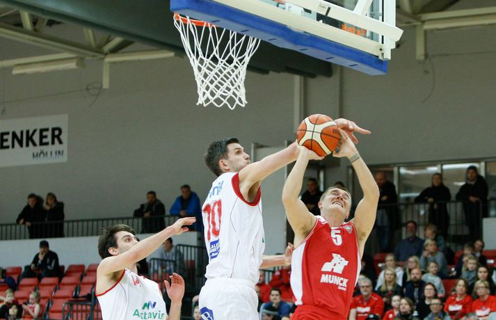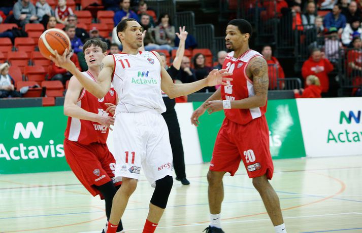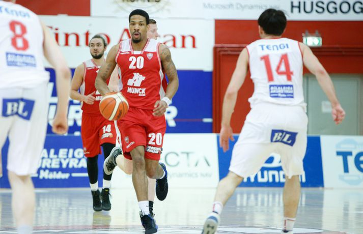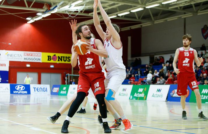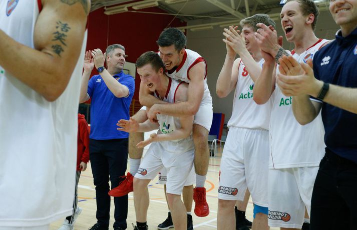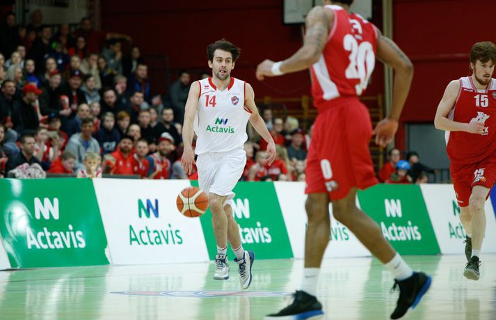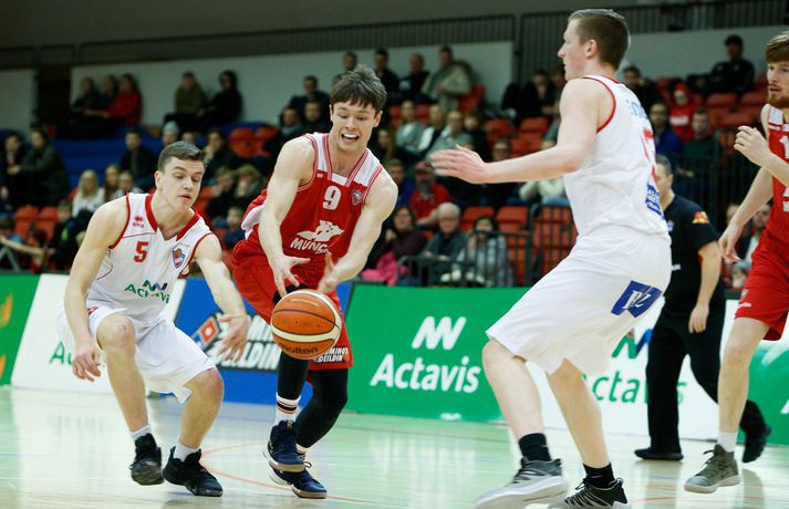 Haukar urðu deildarmeistarar í Dominos deild karla í körfuknattleik með því að vinna Val með 13 stigum 83-70 fyrr í kvöld að Ásvöllum. Haukar spiluðu af eðlilegri getu í leiknum og hittu skotunum sínum vel í fyrsta leikhluta á meðan Valsmenn hittu afleitlega en til marks um það þá fór ekki nema eitt af fyrstu 10 skotum gestanna ofan í körfuna og skapaði það gott forskot fyrir Haukana sem slepptu því ekki það sem eftir lifði leiks. Valsmenn náðu vopnum sínum aftur og gerðu nokkrar heiðarlegar tilraunir til að minnka muninn en Haukar hafa nóg af góðum leikmönnum í sínu liði til að svara áhlaupunum sem þeir og gerðu. Heimamenn fengu þó næg tækifæri til að leyfa yngri mönnum að spila mínútur í leiknum en það gæti verið mikilvægt þegar í úrslitakeppnina er komið sem flestir hafi fengið nasaþef af úrvalsdeildarkörfubolta.Afhverju unnu Haukar? Eins og áður segir þá eru Haukar með betra körfuboltalið en Valur. Þeir eiga fyrsta sætið skilið í deildarkeppninni en þeir hafa spilað mjög vel á löngum köflum. Það hjálpaði þeim þó ða Valsmenn hittu hrikalega illa í fyrsta leikhluta en það skapaði gott forskot.Hvað gekk illa? Hjá Val gekk mjög illa að hitta í fyrsta leikhluta en þegar þeir komust í takt við leikinn varð nýting þeirra eðlilegri. Það gekk í raun og veru ekkert illa hjá heimamönnum en þeir þurftu á köflum að standast áhlaup og pressuvörn Valsmanna en á suttum tíma í seinni hálfleik þá gekk Haukum illa að halda boltanum innan liðsins en það var ekkkert sem eitt leikhlé gat ekki lagað.Bestu menn vallarins? Haukamenn fengu gott framlag frá mörgum mönnum í kvöld og voru fimm leikmenn sem skoruðu 10 stig eða meira. Stigahæstur var Paul A. Jones III með 21 stig en næst honum kom Haukur Óskarsson með 20 stig. Hjá Val var Urald King stigahæstur en hann náði sér í tröllatvennu og var með 24 stig og 17 fráköst. Flest stiganna komu þó í seinni hálfleik en honum gekk illa í þeim fyrri að skora.Hvað næst? Valur eru komnir í sumarfrí og nú byrjar undirbúningur fyrir næsta tímabil en þetta er í fyrsta sinn síðan 1997 sem þeir halda sæti sínu í úrvalsdeild eftir að hafa komið upp. Haukar fagna í kvöld deildarmeistaratitli þar sem væntanlega verður gætt sér á eins og einni Dominos pizzasneið en það er skammt stórra högga á milli. Eftir Haukunum bíða nefnilega Keflvíkingar í fyrstu umferð úrslitakeppninnar sem hefst eftir slétta viku. Það hafa oft verið þægilegri áttunda sætis lið sem deildarmeistarar mæta í fyrstu umferð en það er aldrei að vita hvaða Keflavíkur lið mætir til leiks í næstu viku.Haukar-Valur 83-70 (21-11, 20-16, 24-22, 18-21) Haukar: Paul Anthony Jones III 21, Haukur Óskarsson 20/5 fráköst, Finnur Atli Magnússon 12/10 fráköst, Breki Gylfason 11, Hjálmar Stefánsson 10/4 fráköst, Emil Barja 9/6 fráköst/6 stoðsendingar.Valur: Urald King 24/17 fráköst/4 varin skot, Austin Magnus Bracey 23/4 fráköst, Sigurður Dagur Sturluson 7, Þorgeir Kristinn Blöndal 7, Benedikt Blöndal 3/7 stoðsendingar, Gunnar Ingi Harðarson 2, Birgir Björn Pétursson 2/4 fráköst, Illugi Auðunsson 2/4 fráköst.Ívar Ásgrímsson, þjálfari Hauka.Vísri/Andri MarinóÍvar Ásgrímsson: „Tilfinningin er frábær“ „Tilfinningin er frábær, þetta er mjög erfiður titil að vinna þar sem maður þarf að vera einbeittur í heilan vetur til að vinna hann. Við Haukar höfum verið að leitast eftir titli í nokkur ár og nú er hann kominn en þetta er bara byrjunin, við megum ekki missa okkur heldur verðum við að halda haus og vera tilbúnir að mæta erfiðum andstæðingum í Keflavík“, sagði glaður þjálfari Hauka eftir að búið var að afhenda Haukamönnum deildarmeistarabikarinn fyrr í kvöld. Ívar var spurður að því hvað hafði skilað þessum sigri í kvöld sem tryggði titilinn. „Vörnin var frábær hjá okkur, sóknin var pínu mistæk en vörnin var frábær. Við héldum líka haus allan tímann og þó að Valur hafi komið með nokkur áhlaup sem við stóðum af okkur af því að við héldum einbeitingu á leiknum“. Eins og áður segir þá mæta Haukar liði Keflavíkur í fyrstu umferð og Ívar var beðinn um að leggja mat á viðureignina og mikilvægi heimavallarins í einvíginu. „Mér líst bara mjög vel á, við vitum það að þetta verður gríðarlega erfitt. Við erum kannski ekki sammála varaformanni þeirra að þeir séu aumingjar, við höldum og vitum að við erum að fara að spila á móti mjög góðu liði þannig að við búumst við hörkuviðureign og þurfum að búa okkur vel undir það. Við höfum trú á því að heimavöllurinn skipti máli, við höfum bara tapað einum leik sem var reyndar á móti Keflavík og við eigum þess vegna harma að hefna. Við förum ekki að tapa fleiri leikjum hér heima.“ Ágúst Sigurður Björgvinsson: Markmiðið náðistÁgúst Björgvinsson, þjálfari Vals.Vísir/Andri MarinóÞjálfari Valsmanna var ánægður með sína menn í kvöld þrátt fyrir tap. Hann kallaði eftir baráttu og vilja fyrir leik og var að sögn ánægður með framlag sinna manna. „Ég er ánægður með strákana, þeir börðust og gáfumst ekki upp. Við vorum að spila á móti mjög vel mönnuðu Haukaliði sem var að spila upp á deildarmeistaratitilinn og það var ekki að sjá að það væri 10 sæta munur á liðunum. Ég var mjög ánægður með framlag minna manna í kvöld“. Aðspurður hvort að Valsmenn hefðu getað gert eitthvað betur í kvöld þá stóð ekki á svari en Valsmenn hefðu mátt hitta betur og þá sérstaklega í fyrri hálfleik. Ágúst var beðinn um að gera upp tímabilið hjá Val í fáum orðum. „Markmiðið náðist. Það eru fæstu orðin sem ég get haft um tímabilið. Það var að halda sæti sínu í deildi