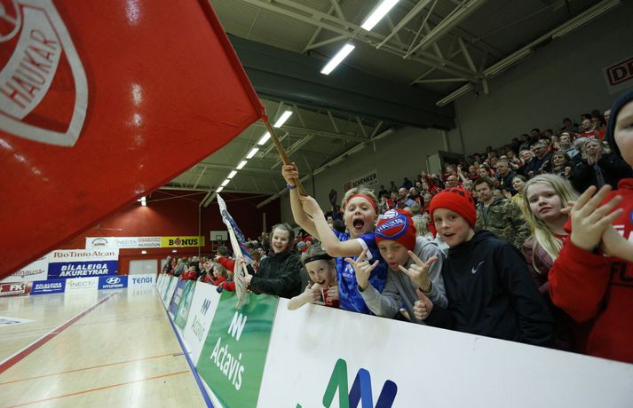 Umfjöllun, viðtöl og myndir: Haukar - Valur 83-70 | Fyrsti deildarmeistaratitillinn í Hafnarfjörðinn Árni Jóhannsson skrifar 8. mars 2018 21:30 Haukar unnu deildarmeistaratitilinn í körfubolta í fyrsta sinn í kvöld Vísir/Andri Marinó Haukar urðu deildarmeistarar í Dominos deild karla í körfuknattleik með því að vinna Val með 13 stigum 83-70 fyrr í kvöld að Ásvöllum. Haukar spiluðu af eðlilegri getu í leiknum og hittu skotunum sínum vel í fyrsta leikhluta á meðan Valsmenn hittu afleitlega en til marks um það þá fór ekki nema eitt af fyrstu 10 skotum gestanna ofan í körfuna og skapaði það gott forskot fyrir Haukana sem slepptu því ekki það sem eftir lifði leiks. Valsmenn náðu vopnum sínum aftur og gerðu nokkrar heiðarlegar tilraunir til að minnka muninn en Haukar hafa nóg af góðum leikmönnum í sínu liði til að svara áhlaupunum sem þeir og gerðu. Heimamenn fengu þó næg tækifæri til að leyfa yngri mönnum að spila mínútur í leiknum en það gæti verið mikilvægt þegar í úrslitakeppnina er komið sem flestir hafi fengið nasaþef af úrvalsdeildarkörfubolta.Afhverju unnu Haukar? Eins og áður segir þá eru Haukar með betra körfuboltalið en Valur. Þeir eiga fyrsta sætið skilið í deildarkeppninni en þeir hafa spilað mjög vel á löngum köflum. Það hjálpaði þeim þó ða Valsmenn hittu hrikalega illa í fyrsta leikhluta en það skapaði gott forskot.Hvað gekk illa? Hjá Val gekk mjög illa að hitta í fyrsta leikhluta en þegar þeir komust í takt við leikinn varð nýting þeirra eðlilegri. Það gekk í raun og veru ekkert illa hjá heimamönnum en þeir þurftu á köflum að standast áhlaup og pressuvörn Valsmanna en á suttum tíma í seinni hálfleik þá gekk Haukum illa að halda boltanum innan liðsins en það var ekkkert sem eitt leikhlé gat ekki lagað.Bestu menn vallarins? Haukamenn fengu gott framlag frá mörgum mönnum í kvöld og voru fimm leikmenn sem skoruðu 10 stig eða meira. Stigahæstur var Paul A. Jones III með 21 stig en næst honum kom Haukur Óskarsson með 20 stig. Hjá Val var Urald King stigahæstur en hann náði sér í tröllatvennu og var með 24 stig og 17 fráköst. Flest stiganna komu þó í seinni hálfleik en honum gekk illa í þeim fyrri að skora.Hvað næst? Valur eru komnir í sumarfrí og nú byrjar undirbúningur fyrir næsta tímabil en þetta er í fyrsta sinn síðan 1997 sem þeir halda sæti sínu í úrvalsdeild eftir að hafa komið upp. Haukar fagna í kvöld deildarmeistaratitli þar sem væntanlega verður gætt sér á eins og einni Dominos pizzasneið en það er skammt stórra högga á milli. Eftir Haukunum bíða nefnilega Keflvíkingar í fyrstu umferð úrslitakeppninnar sem hefst eftir slétta viku. Það hafa oft verið þægilegri áttunda sætis lið sem deildarmeistarar mæta í fyrstu umferð en það er aldrei að vita hvaða Keflavíkur lið mætir til leiks í næstu viku.Haukar-Valur 83-70 (21-11, 20-16, 24-22, 18-21) Haukar: Paul Anthony Jones III 21, Haukur Óskarsson 20/5 fráköst, Finnur Atli Magnússon 12/10 fráköst, Breki Gylfason 11, Hjálmar Stefánsson 10/4 fráköst, Emil Barja 9/6 fráköst/6 stoðsendingar.Valur: Urald King 24/17 fráköst/4 varin skot, Austin Magnus Bracey 23/4 fráköst, Sigurður Dagur Sturluson 7, Þorgeir Kristinn Blöndal 7, Benedikt Blöndal 3/7 stoðsendingar, Gunnar Ingi Harðarson 2, Birgir Björn Pétursson 2/4 fráköst, Illugi Auðunsson 2/4 fráköst.Ívar Ásgrímsson, þjálfari Hauka.Vísri/Andri MarinóÍvar Ásgrímsson: „Tilfinningin er frábær“ „Tilfinningin er frábær, þetta er mjög erfiður titil að vinna þar sem maður þarf að vera einbeittur í heilan vetur til að vinna hann. Við Haukar höfum verið að leitast eftir titli í nokkur ár og nú er hann kominn en þetta er bara byrjunin, við megum ekki missa okkur heldur verðum við að halda haus og vera tilbúnir að mæta erfiðum andstæðingum í Keflavík“, sagði glaður þjálfari Hauka eftir að búið var að afhenda Haukamönnum deildarmeistarabikarinn fyrr í kvöld. Ívar var spurður að því hvað hafði skilað þessum sigri í kvöld sem tryggði titilinn. „Vörnin var frábær hjá okkur, sóknin var pínu mistæk en vörnin var frábær. Við héldum líka haus allan tímann og þó að Valur hafi komið með nokkur áhlaup sem við stóðum af okkur af því að við héldum einbeitingu á leiknum“. Eins og áður segir þá mæta Haukar liði Keflavíkur í fyrstu umferð og Ívar var beðinn um að leggja mat á viðureignina og mikilvægi heimavallarins í einvíginu. „Mér líst bara mjög vel á, við vitum það að þetta verður gríðarlega erfitt. Við erum kannski ekki sammála varaformanni þeirra að þeir séu aumingjar, við höldum og vitum að við erum að fara að spila á móti mjög góðu liði þannig að við búumst við hörkuviðureign og þurfum að búa okkur vel undir það. Við höfum trú á því að heimavöllurinn skipti máli, við höfum bara tapað einum leik sem var reyndar á móti Keflavík og við eigum þess vegna harma að hefna. Við förum ekki að tapa fleiri leikjum hér heima.“ Ágúst Sigurður Björgvinsson: Markmiðið náðistÁgúst Björgvinsson, þjálfari Vals.Vísir/Andri MarinóÞjálfari Valsmanna var ánægður með sína menn í kvöld þrátt fyrir tap. Hann kallaði eftir baráttu og vilja fyrir leik og var að sögn ánægður með framlag sinna manna. „Ég er ánægður með strákana, þeir börðust og gáfumst ekki upp. Við vorum að spila á móti mjög vel mönnuðu Haukaliði sem var að spila upp á deildarmeistaratitilinn og það var ekki að sjá að það væri 10 sæta munur á liðunum. Ég var mjög ánægður með framlag minna manna í kvöld“. Aðspurður hvort að Valsmenn hefðu getað gert eitthvað betur í kvöld þá stóð ekki á svari en Valsmenn hefðu mátt h