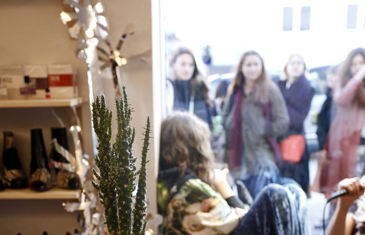 Fatahönnuðurinn Hildur Yeoman frumsýndi nýjustu fatalínu sína Venus með glæsilegum gjörning í verslun sinni á Skólavörðustíg í gær í tengslum við HönnunarMars. Þær Kristín Anna og Aðalheiður Halldórsdóttir voru með söng- og dansgjörning umkringar fyrirsætum sem tók yfir glugga verslunarinnar. Mjög falleg og ferskt, í anda vorsins framundan. Þessi nýja fatalína Hildar Yeoman er innblásin af gyðjunni Venus. „Venus, gyðja ástarinnar, tákngervingur fegurðar, löngunar, vonar og vorsins.“ Hægt er sjá myndalbúm neðst í fréttinni en myndirnar tók Andri Marínó. Myndir/Andri Marínó