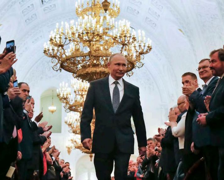 Fjórða kjörtímabilið er hafið hjá Pútín Þórgnýr Einar Albertsson skrifar 8. maí 2018 06:00 Gestir freistuðu þess að ná mynd af leiðtoganum þegar hann gekk inn í hallarsalinn í gær. Fréttablaðið/EPA Vladímír Pútín var í gær settur inn í embætti Rússlandsforseta. Athöfnin fór fram með miklum glæsibrag í Kreml. Um fimm þúsund sóttu forsetann heim, meðal annars Gerhard Schröder, fyrrverandi kanslari Þýskalands og nú lykilmaður hjá rússneska gasfyrirtækinu Gazprom, og fyrrverandi Hollywood-stjarnan og rússneski ríkisborgarinn Steven Seagal. Athöfnin var svo sem ekki ný fyrir forsetanum en þetta var í fjórða skipti sem hann er settur í embætti. Það gerðist fyrst árið 2000, svo 2004 og því næst 2012. Valdatíð Pútíns er löng, lengri en nokkurs í Rússlandi frá því Stalín var við völd. Hún spannar samtals fjórtán ár á forsetastóli auk fjögurra í forsætisráðuneytinu. Þegar næstu forsetakosningar fara fram munu árin á forsetastóli verða tuttugu, enda var kjörtímabil forseta lengt úr fjórum árum í sex árið 2008. Samkvæmt stjórnarskránni ætti þetta kjörtímabil að verða Pútíns síðasta. Ekkert er þó öruggt í þeim málum, enda komst Pútín áður framhjá stjórnarskránni með því að sitja eitt kjörtímabil á stóli forsætisráðherra, frá 2008 til 2012. Pútín fór um víðan völl í innsetningarræðu sinni. „Við höfum endurvakið stolt þjóðarinnar á föðurlandinu. Sem þjóðhöfðingi mun ég gera allt sem í valdi mínu stendur til að margfalda styrk Rússlands og velsæld Rússa,“ sagði forsetinn. Sem þjóðhöfðingi vill Pútín stuðla að hagkvæmri samvinnu við öll önnur ríki og vinna að friði og stöðugleika á jörðu. „Rússland er sterkur og áhrifaríkur leikmaður á sviði alþjóðastjórnmálanna. Þjóðaröryggi er tryggt og varnarmöguleikar okkar miklir. Við munum halda áfram að einbeita okkur að þessum málaflokkum.“Pútín verður að óbreyttu forseti Rússlands til 2024.Vísir/ApÞótt Pútín verði 71 árs þegar kjörtímabilinu lýkur og þótt hann eigi ekki möguleika á að bjóða sig aftur fram til forseta strax samkvæmt stjórnarskránni þykir ekki öruggt að þessi fyrrverandi KGB-liði hverfi frá völdum árið 2024. Undanfarna mánuði, sér í lagi í kringum forsetakosningar marsmánaðar, hefur því verið haldið fram að Pútín muni annaðhvort breyta stjórnarskránni svo hann geti boðið sig fram aftur eða að hann muni koma á fót ríkisráði þar sem hann taki sjálfur stöðu leiðtoga. Yrði staða Pútíns sem leiðtoga einhvers konar ríkisráðs þá sambærileg stöðu Ali Khamenei, æðstaklerks Írans. The Washington Post tók í mars saman ummæli fjölmargra bandamanna Pútíns sem þykja benda til að eitthvað þessu líkt sé í pípunum hjá Rússlandsforseta. Konstantín Gaaze, sjálfstæður stjórnmálaskýrandi, sagði til að mynda að með kosningasigrinum hefði leið opnast fyrir Pútín að því að koma á fót einhvers konar ævilangri stöðu þjóðhöfðingja. Alexeí Tjesnakov, áður ráðgjafi í Kreml og nú sjónvarpsmaður, sagði eftir kosningarnar í mars að hann væri nokkuð viss um að Pútín myndi ekki fara neitt árið 2024. „Það er of snemmt að segja til um hvernig það verður. Ég veit ekki hvort hann hætti sem forseti eða hvort hann framlengi valdatíð sína einhvern veginn.“ Þá vitnaði The Washington Post einnig í Vladímír Sjírínovskí, bandamann Pútíns og ævarandi forsetaframbjóðanda. Sjírínovskí sagði í aðdraganda forsetakosninganna að fólk hefði einfaldlega ekki áhuga á að velja annan leiðtoga en Pútín. „Þessar kosningar verða þær síðustu. Þú ættir að skilja það. Komið verður á fót ríkisráði sem forsetinn mun stýra.“ Setti Sjírínovskí framtíð Pútíns í samhengi við Xi Jinping, forseta Kína. Benti á að Xi hefði nýverið afnumið reglur um hversu mörg kjörtímabil forseti Kína má sitja. Sjálfur hefur Pútín ekki viljað tala mikið um hvað framtíðin ber í skauti sér. Þegar hann var spurður um hvort hann ætlaði að bjóða sig fram aftur, stuttu eftir kosningarnar í mars, sagði hann spurninguna nokkuð fáránlega. „Á ég að vera forseti þangað til ég verð hundrað ára gamall? Nei,“ svaraði Pútín svo.Andstaðan við Pútín Ljóst er að ekki eru allir sáttir við Pútín í Rússlandi þótt hann sé að hefja sitt fjórða kjörtímabil. Það sást bersýnilega um helgina þegar þúsundir mótmæltu í níutíu borgum og bæjum víðs vegar um Rússland. Alexeí Navalní, stjórnarandstæðingur og aktívisti, var handtekinn við mótmælin ásamt um 1.600 öðrum mótmælendum. Navalní var þó sleppt úr haldi síðar um helgina. Þetta var ekki í fyrsta skipti sem Navalní kemst í kast við lögin. Þegar ljóst var að hann ætlaði í forsetaframboð var hann til að mynda sakfelldur fyrir fjárdrátt. Navalní hefur sjálfur sagt þær sakir upplognar, hann hafi einungis verið sakfelldur svo hann gæti ekki boðið sig fram. Á mótmælum laugardagsins mátti heyra mótmælendur hrópa: „Niður með keisarann!“ Navalní sagði á mótmælunum að Moskva tilheyrði Pútín ekki. Engin þörf væri á keisara. Eftir að honum var sleppt úr haldi sagði hann svo: „Það kom greinilega tilskipun frá Kreml um að fangelsa mig ekki fyrir innsetningarathöfnina!“ En Navalní hefur ekki tekist að steypa Pútín af stóli, hvergi nærri. Og þótt Vesturlönd einblíni á utanríkismálastefnu Rússa virðist hún ekki vera Rússum til armæðu. Það eru efnahagsmálin sem reynast Pútín erfiðust. Samkvæmt skoðanakönnun Levada hafa Rússar einna helst verið ósáttir við að ekki hafi tekist að draga úr ójöfnuði í rússnesku samfélagi. Næstflestir sögðu að Pútín hefði helst átt að tryggja 