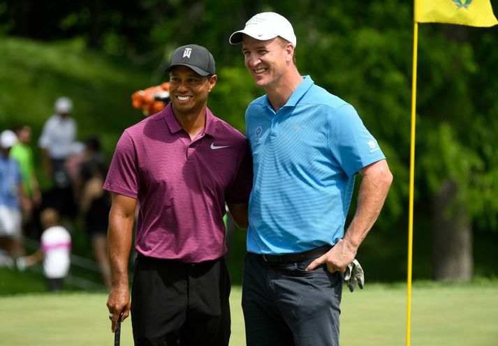 Þegar Manning náði að kveikja neistann hjá Tiger Henry Birgir Gunnarsson skrifar 4. júní 2018 23:15 Peyton og Tiger er vel til vina. vísir/getty Fyrrum NFL-leikstjórnandinn Peyton Manning sagði ansi magnaða sögu af því á dögunum hvernig honum tókst að æsa Tiger Woods upp með ruslatali er þeir spiluðu golf saman. Manning sagði söguna eftir að hafa spilað með Tiger í síðustu viku. Það var ekki í fyrsta skipti sem þessar goðsagnir spila golf saman. Þegar Manning spilaði með Indianapolis Colts og vildi keyra kerfin sín hratt þá notaði hann orðin Tiger og Phil. Ef hann sagði Tiger þá átti að fara af stað á einum en tveimur ef hann kallaði Phil. Þessa taktík notaði hann því Tiger var alltaf efstur á heimslistanum en Phil Mickelson í öðru sæti. Hann sagði Tiger frá þessu á sínum tíma og kylfingnum fannst það mjög merkilegt. Eftir fyrsta tímabil Manning með Denver Broncos árið 2013 þá spilaði hann með Tiger á nýjan leik. Tiger spurði þá hver helsti munurinn væri á því að spila með Broncos og Colts. Mannig skaut þá á Tiger. Það væri ruglandi að Rory McIlroy væri númer eitt en hann væri númer tvö. Tiger tók þessari kyndingu ekkert sérstaklega vel. Svo illa tók hann henni reyndar að hann notaði hana til að hvetja sig áfram. Hann vann tvö mót þennan mánuðinn og komst aftur á topp heimslistans. Morguninn eftir hringdi hann í Manning og minnti hann á að nú yrði að breyta kerfinu aftur. Á þann hátt sem væri réttur. Golf Mest lesið Þessi tíu eru tilnefnd sem Íþróttamaður ársins 2025: 23 ára aldursmunur Sport Sagan ekki sönn: „Veit ekki hvaðan þetta á að hafa komið“ Íslenski boltinn Sakaður um niðurlægingu: „Við viljum ekki hafa hann sem þjálfara“ Handbolti Erfitt að vera í burtu þegar mamma greindist Fótbolti Slot mun sakna Isak í tvo mánuði eftir „glórulausa tæklingu“ Enski boltinn Einn leikmaður með samning og völlurinn ólöglegur Fótbolti Áfallið staðreynd og Isak búinn í aðgerð Enski boltinn Kansas frá Kansas til Kansas Sport Vildi tapa legg: „Mesti hávaði sem ég hef heyrt“ Sport Missti alveg stjórn á skapinu en það skilaði sigri Körfubolti Fleiri fréttir Hættur aðeins þrítugur Guðrún Brá tveimur höggum frá því að öðlast fullan keppnisrétt á LET Mótið hálfnað og Guðrún Brá enn í góðri stöðu Guðrún Brá efst eftir fyrsta hring í Marokkó Íslensku stelpurnar misstu einn keppnisdag vegna eldingarhættu Áminntir fyrir að drekka einn bjór: Sagðir drukknir og hafa tekið „Happy Gilmore-sveiflu“ Ástand í Noregi: Hátt upp í fimm þúsund kylfingar án klúbbs Bananahýði gerði Rory McIlroy erfitt fyrir Dáður en umdeildur kylfingur látinn Gríðarleg fjölgun kylfinga: „Aðstaðan sprungin í höfuðborginni“ Barnabarn Donalds Trump: „Ég sló mörg góð högg, bara á ranga staði“ Vildi ekki svara spurningum um afa sinn, Donald Trump Tóku símana af stelpunum alla keppnisferðina Sjá meira