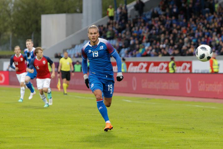 Rúrik Gíslason var maður leiksins að mati Vísis þegar Ísland tapaði í kvöld fyrir Noregi á Laugardalsvelli í næstsíðasta leik sínum fyrir HM. Rúrik fékk tækifærið í byrjunarliðinu í kvöld og var greinilega ákveðinn í að sýna að hann ætti skilið að fá mínútur í Rússlandi en hann var ekki í EM-hópi Íslands fyrir tveimur árum síðan. Íslenska liðið lék heilt yfir ekki vel í kvöld en hér fyrir neðan má sjá einkunnir okkar manna. Einkunnagjöf Íslands fyrir Ísland - Noregur Byrjunarlið:Frederik Schram, markvörður 3 Mátti mögulega gera betur í fyrra marki Norðmanna þó það hafi verið ágætlega skotið. Gerði skelfileg mistök og gaf Norðmönnum annað markið. Ófyrirgefanlegt á stóra sviðinu. Martraðaleikur fyrir Frederik.Birkir Már Sævarsson, hægri bakvörður 5 Lenti stundum í vandræðum með sinn mann og var eins og aðrir varnarmenn Íslands stundum úr stöðu. En harður af sér og gerði margt ágætlega.Kári Árnason, miðvörður 6 Besti varnarmaðurinn í annars slakri íslenskri vörn í dag. Eins og oft áður ótrúlega drjúgur í að skalla fyrirgjafir úr teignum. Átti sendinguna á Frederik í öðru marki Norðmanna sem gerði markverðinum enga greiða.Ragnar Sigurðsson, miðvörður 5 Leit ekki vel út í marki Norðmanna í fyrri hálfleik. Gerði samt sitt eftir það og við það skánaði varnarleikur Íslands.Hörður Björgvin Magnússon, vinstri bakvörður 5 Gerði fá mistök í sókninni en það var lítill kraftur í honum þegar hann var beðinn um að sækja.Jóhann Berg Guðmundsson, hægri kantmaður 6 Mikil gæði í þessum dreng og þegar hann náði að sýna þau var hann frábær. Dró af honum eftir því sem leið á leikinn.Emil Hallfreðsson, miðjumaður 7 Stóð vaktina ágætlega í mikilvægu hlutverki á miðjunni. Fékk fáein skotfæri sem hann nýtti illa.Birkir Bjarnason, miðjumaður 7 Orkumikill á miðjunni og hefði verið gaman að sjá meira koma úr hans aðgerðum. Sýnir að hann getur leyst þetta hlutverk vel af hólmi.Rúrik Gíslason, vinstri kantmaður 8 - maður leiksins Fékk tækifæri í byrjunarliðinu í dag og nýtti það vel til að minna á sig. Var manna sprækastur þegar okkar menn voru heldur daufir í upphafi leiks og vítið sem hann fékk breytti leiknum fyrir Ísland.Jón Daði Böðvarsson, framherji 5 Ávallt duglegur og gerði margt ágætlega þegar langir boltar komu fram. En það kom lítið úr hans aðgerðum og hann komst einhvern veginn aldrei i takt við leikinn.Alfreð Finnbogason, framherji 6 Skoraði fyrsta mark Íslands úr vítaspyrnu af miklu öryggi en fékk annars úr litlu að moða. Öflugur þegar hann fékk þó boltann. Varamenn:Björn Bergmann Sigurðarson - (Kom inn á fyrir Alfreð á 46. mínútu) 5 Gerði ágætlega í aðdraganda mark Gylfa Þórs en hann breytti annars litlu í leik Íslands.Sverri Ingi Ingason - (Kom inn á fyrir Ragnar á 46. mínútu) 5 Náði því miður ekki að bæta varnarleik Íslands.Ari Freyr Skúlason - (Kom inn á fyrir Rúrik á 63. mínútu) 6 Kom inn af krafti. Vinnusamur að vana.Gylfi Þór Sigurðsson - (Kom inn á fyrir Jón Daða á 63. mínútu) 7 Mark og stangarskot hjá Gylfa. Óhætt að hann gerði mikið fyrir sóknarleik Íslands eftir að hann kom inn á.Samúel Kári Friðjónsson - (Kom inn á fyrir Emil á 82. mínútu) - Spilaði of lítði til að fá einkunn.Albert Guðmundsson - (Kom inn á fyrir Birki Bjarnason á 88. mínútu) - Spilaði of lítið til að fá einkunn.