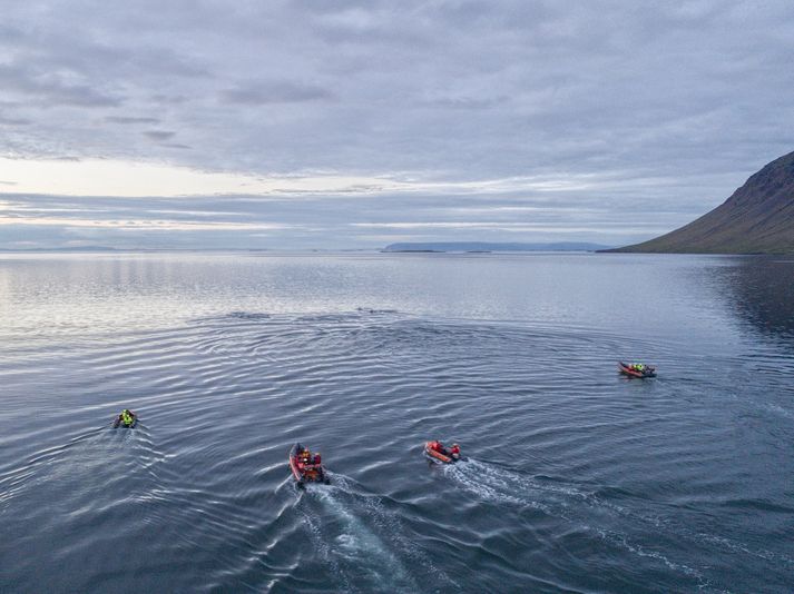 Hvalirnir farnir úr Kolgrafafirði Vésteinn Örn Pétursson skrifar 13. ágúst 2018 23:34 Hvalirnir eru komnir úr Kolgrafarfirði eftir að hafa verið smalað þaðan í annað sinn. Mynd/Sigurður Þór Helgason hjá DJI Reykjavik Grindhvalavaðan sem festist í Kolgrafafirði í gær er nú komin úr firðinum. Björgunarsveitarfólk vann fyrr í kvöld að því að smala hvölunum úr firðinum. Einar Þór Strand, formaður svæðisstjórnar hjá Landsbjörgu, segir hvalina vera komna vel út fyrir Urthvalafjörð. „Þeir virðast stefna eitthvað í norðvestur og við erum hættir að reka þá. Við erum að vona að þeir séu komnir nógu langt út til að þeir geti haldið ferðinni áfram. Svo verðum við bara að sjá hvað skeður.“ Einar segir að ekki verði fylgst nánar með ferðum hvalanna þar sem mannskapurinn til þess sé einfaldlega ekki fyrir hendi. „Það verður bara að koma í ljós hvað þeir gera. Það fréttist nú snemma ef þeir koma aftur.“ Þetta er í annað sinn sem hvalirnir voru reknir úr firðinum en eftir að hafa verið reknir einu sinni úr firðinum sneru þeir aftur. Því var brugðið á það ráð að reka þá lengra en gert hafði verið í fyrstu tilraun. Umhverfismál Tengdar fréttir Ætla ekki að skipta sér af hvölunum Slysavarnarfélagið Landsbjörg ætlar ekki að reka grindhvalavöðuna sem stödd er í Kolgrafafirði í burt. 13. ágúst 2018 13:11 Grindhvalavaða festist í Kolgrafafirði Fyrr í dag festist grindhvalavaða í Kolgrafafirði á Snæfellsnesi, björgunarsveitir voru kallaðir til og loks tókst að koma hvölunum út á haf. 12. ágúst 2018 20:50 Stórkostlegt myndband frá björguninni í Kolgrafafirði Vísir fjallaði fyrr í kvöld um grindhvalavöðu sem festist í Kolgrafafirði í kvöld. Haukur Páll Kristinsson var á staðnum og sendi Vísi magnað myndskeið af hvölunum og aðgerðum björgunarsveita. 12. ágúst 2018 22:37 Grindhvalirnir sneru aftur Grindhvalavaðan sem gerði vart við sig í Kolgrafafirði í gærkvöldi, en björgunarsveitarmönnum tókst að reka út úr firðinum á áttunda tímanum, sneri aftur til baka í nótt. 13. ágúst 2018 08:57 Mest lesið Blússandi hagvöxtur í Bandaríkjunum Erlent Minni rekstrarkostnaður fyrir eigendur bensínháka Innlent Maður í umferðarslysi reyndist fíkniefnasali Innlent Bæta við allt að 200 íbúðum og mathöll í Spöngina Innlent Hafnar „jólakveðju“ ríkisins Innlent Tveir lögreglumenn sprengdir í loft upp Erlent Hefði þurft hjólbörur undir öll verðlaunin sín Innlent Ekkert því til fyrirstöðu að Ásthildur Lóa verði aftur ráðherra Innlent Innflytjendamálin almenningi efst í huga Innlent „Krítískur massi af snarbrjáluðu fólki nær yfirhöndinni“ Innlent Fleiri fréttir Hvar er opið á aðfangadag? Innflytjendamálin almenningi efst í huga Bæta við allt að 200 íbúðum og mathöll í Spöngina Maður í umferðarslysi reyndist fíkniefnasali Minni rekstrarkostnaður fyrir eigendur bensínháka Hafnar „jólakveðju“ ríkisins Hefði þurft hjólbörur undir öll verðlaunin sín Ýmis ráð til taugatrekktra á Þorláksmessu Ekkert því til fyrirstöðu að Ásthildur Lóa verði aftur ráðherra Óvissa um ráðherraskipan og skata fyrir byrjendur Maðurinn fundinn Sigríður Halldórsdóttir nýr ritstjóri Kastljóss Íslendingur í gæsluvarðhaldi í Kólumbíu vegna gruns um kynferðisbrot Forsætisráðuneytið eyddi meiru í almannatengla í fyrra en í ár Inkalla snuð vegna of mikils magns BPA-plastefna Svanhildur Sif heiðruð Falskar netverslanir: Auglýsir rýmingarsölu nokkrum dögum eftir opnun Meðallaun upplýsingafulltrúa hækkuðu hlutfallslega mest Skötuilmurinn leggst yfir landið og Samkeppniseftirlitið ætlar að fylgjast vel með bensínverðinu Áfram auknar líkur á eldgosi Sektaður um hundruð þúsunda fyrir að sparka í hund Stýra fjármálum og mannauðsmálum Þjóðleikhússins Sló mann í höfuðið með glerflösku á ísfirskum skemmtistað Ekið á konu á Langholtsvegi Ríkissjóður greiðir fyrir flutning hinna látnu til Íslands Undrandi á ráðningu ráðgjafa „Krítískur massi af snarbrjáluðu fólki nær yfirhöndinni“ Fjölgun eldri kvenna í Kvennaathvarfi: „Þessar konur bíða ekki“ Ráðist á pilt á heimleið Stytting framhjá Blönduósi ekki á samgönguáætlun Sjá meira