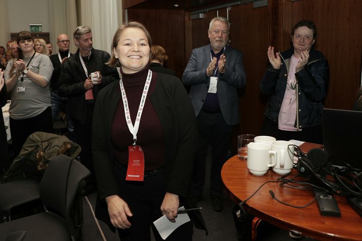 Drífa Snædal forseti ASÍ fyrst kvenna Hulda Hólmkelsdóttir skrifar 26. október 2018 11:15 Drífa Snædal hefur verið framkvæmdastjóri Starfsgreinasambandsins frá árinu 2012. Vísir/Vilhelm Drífa Snædal, framkvæmdastjóri Starfsgreinasambandsins, er nýr forseti Alþýðusambands Íslands. Kosið var um nýjan forseta á þingi sambandsins nú í morgun og hófst kosning klukkan 10:45. Drífa er fyrsta konan sem er kjörin í embætti forseta ASÍ í 102 ára sögu Alþýðusambands Íslands. Ásamt Drífu var Sverrir Mar Albertsson, framkvæmdastjóri Afls, í framboði. Drífa hlaut 192 atkvæði af 293 eða 65,8 prósent. Sverrir Mar hlaut 100 atkvæði eða 34,2 prósent. Einn skilaði auðu. Drífa Snædal er 45 ára viðskiptafræðingur frá Háskóla Íslands auk þess að vera með meistarapróf í vinnumarkaðsfræðum og vinnurétti frá Háskólanum í Lundi. Drífa hefur starfað sem framkvæmdastjóri Starfsgreinasambands Íslands frá árinu 2012 en áður var hún framkvæmdastjóri Vinstrihreyfingarinnar – græns framboðs og Samtaka um Kvennaathvarf. Ljóst er að ærin verkefni bíða Drífu en flestir kjarasamningar losna um áramótin. ASÍ er stærstu hagsmunasamtök íslensks launafólks. Félagsmenn í ASÍ eru um 133 þúsund í fimm landssamböndum og 49 aðildarfélögum um land allt. Deilur innan verkalýðshreyfingarinnar á Íslandi hafa harðnað síðustu mánuði og hefur mikil endurnýjun verið í forystu verkalýðsfélaga. Gylfi Arnbjörnsson hefur gegnt embættinu síðan í tíu ár, en hann tilkynnti í júní að hann myndi ekki gefa aftur kost á sér sem forseti ASÍ. Þegar Gylfi tilkynnti að hann hygðist ekki gefa kost á sér til endurkjörs sagðist hann sannfærður um að ákvörðunin væri sú rétta þó hún hafi verið erfið. Við setningu þingsins á miðvikudaginn sagðist Gylfi ganga sáttur frá borði. Kjaramál Tengdar fréttir Verkalýðshreyfingin eigi ekki að vera stjórnmálaflokkur Gylfi Arnbjörnsson, fráfarandi forseti ASÍ segist ganga sáttur frá borði. 24. október 2018 10:58 Tímamótaþing ASÍ hefst Fimm meginefni verða til umfjöllunar á þinginu. 24. október 2018 07:00 Gylfi hefði viljað sjá breiðari samstöðu innan ASÍ Fráfarandi forseti Alþýðusambandsins segir stjórnvöld bera ábyrgð á að ekki tókst að koma á nýju samningalíkani á vinnumarkaðnum og að samningagerð nú geti reynst erfið. 23. október 2018 13:28 Mest lesið Virðist ekki vera hægt á Íslandi Viðskipti innlent Hyggst kæra dyraverði Auto til lögreglu Innlent Hiti geti mest náð átján stigum Veður „Ótrúlega sorglegt að pabbi sé búinn að vera svona lengi í þessari stöðu“ Innlent Ný könnun Maskínu: „Væri alveg ný staða í íslenskum stjórnmálum“ Innlent Trump nefnir nýja kynslóð orrustuskipa í höfuðið á sjálfum sér Erlent Ráðist á pilt á heimleið Innlent Stytting framhjá Blönduósi ekki á samgönguáætlun Innlent Gaf fingurinn á Miklubraut Innlent Fjölgun eldri kvenna í Kvennaathvarfi: „Þessar konur bíða ekki“ Innlent Fleiri fréttir Fjölgun eldri kvenna í Kvennaathvarfi: „Þessar konur bíða ekki“ Ráðist á pilt á heimleið Stytting framhjá Blönduósi ekki á samgönguáætlun Vestmannaeyingar fá að eiga Vestmannaeyjar Hyggst kæra dyraverði Auto til lögreglu „Ótrúlega sorglegt að pabbi sé búinn að vera svona lengi í þessari stöðu“ Höfðu samband við dönsku herstjórnina á Grænlandi Ný könnun Maskínu: „Væri alveg ný staða í íslenskum stjórnmálum“ Glæný Maskínukönnun og jólaóveður Ársæll hringdi beint í utanríkisráðherra eftir fundinn Ósannað að fimmtán ára stúlka hafi stungið sextán ára pilt tvisvar Sameina Farice, Öryggisfjarskipti og hluta Neyðarlínunnar Gaf fingurinn á Miklubraut Birtir drög að lögum um lagareldi: Hyggst leggja niður Fiskeldissjóð Hundrað og fjörutíu milljarða bótakrafa á Samherja sé súrrealísk Skemmdir í kirkjugörðum vegna aksturs utan vegar Ólýsanlegur harmur fyrir fjölskylduna og söfnun hleypt af stokkunum „Ég hef aldrei upplifað annan eins harm“ Vill leiða lista Sjálfstæðismanna í Reykjanesbæ „Þetta hefur verið þungur tími“ Naut aðstoðar samskiptasérfræðinga vegna veiðigjaldamálsins Hrindir af stað söfnun fyrir móður stúlkunnar sem lést í Suður-Afríku Varð vitni að ótrúlegum norðurljósum: „Mér fannst þetta magnað“ Færir nýársboðið fram á þrettándann Fjórir fluttir á sjúkrahús eftir bílveltu á Suðurlandi Leggur aftur til hverfislögreglustöð í Breiðholti Nú má heita Love, Tóní, Ranimosk og Draumur Kvartar til umboðsmanns og vonar að Vegagerðin sjái að sér Ætlar ekki að beita sér í máli starfsmanns Útlendingastofnunar „Ég vil ekki nokkurn tímann sjá neitt svona aftur“ Sjá meira