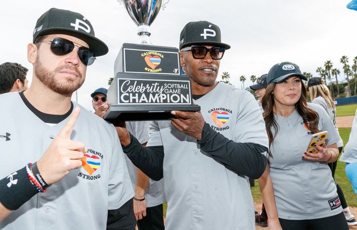 Stórstjörnur söfnuðu peningum Benedikt Bóas skrifar 15. janúar 2019 00:01 Gráa liðið var með Jamie Foxx og Adam Sandler í sínum röðum og vann sannfærandi sigur. NordicPhotos/Getty Kalifornía er enn í sárum eftir skógareldana sem lögðu fjölda húsa í rúst og ákváðu hafnaboltaleikmenn úr MLB-deildinni sem koma frá ríkinu að safna frægum einstaklingum saman og spila íþróttina. Safna þannig peningum fyrir þá sem þurfa á þeim að halda. Síðast þegar fréttist höfðu um 500 þúsund dollarar safnast, rúmar 60 milljónir króna. Leikurinn var ekki aðeins fyrir fórnarlömb skógareldanna heldur einnig fyrir þá sem þjást eftir nýlegar skotárásir. Þarna mættu Adam Sandler, Mira Sorvino, Jamie Foxx, Brad Paisley, Baker Mayfield, Reggie Miller og Patrick Schwarzenegger, svo fáeinir séu nefndir. Charlie Sheen meiddist á öxl og var því þjálfari. „Ég ólst upp hérna og sá hús vina minna brenna. Auðvitað skoraðist ég ekki undan,“ sagði Sheen við bandaríska fjölmiðla. Mest lesið Valdi fallegasta karlmanninn Lífið „Innsýn í djammlífið og hvernig Gugga í gúmmíbát djammar“ Lífið Laufey tilnefnd til Grammy-verðlauna Lífið Blondie verður stjarnan á RIFF um helgina Lífið Bragðlaust eins og skyr með sykri Gagnrýni Kynþokkafyllstu karlmenn landsins Lífið „Ekkert of gott að vera of grannur“ Lífið Ástin blómstrar hjá Ara Edwald og Ingibjörgu Lífið Algjör óvissa með Söngvakeppnina Lífið Ólafur og Hildur selja í Vesturbænum Lífið Fleiri fréttir Laufey tilnefnd til Grammy-verðlauna Elskar að bera klúta Valdi fallegasta karlmanninn Algjör óvissa með Söngvakeppnina Ólafur og Hildur selja í Vesturbænum „Ekkert of gott að vera of grannur“ Góð fjölskyldustund öll föstudagskvöld Nýsjálenskur James Bond-leikstjóri látinn Fundaði með rabbína til að biðjast afsökunar á gyðingaandúðinni „Þegar ég var átján ára gömul fæ ég aðra ábendingu“ „Innsýn í djammlífið og hvernig Gugga í gúmmíbát djammar“ Ástin blómstrar hjá Ara Edwald og Ingibjörgu „Veit að pabbi væri stoltur af mér“ Kynþokkafyllstu karlmenn landsins Love Island bomba keppir í Eurovision „Við vitum í raun ekkert hvað bíður okkar“ Finnur fyrir skoðunum fólks á aldursmuninum Öskraði „pegga“ og salurinn grét úr hlátri „Ég vil verða eins og þú þegar ég verð stór“ Yfirgáfu salinn þegar gæslunni var sigað á „heimska“ ungfrú Mexíkó Nablinn ræðir um naflann fræga: Enginn gröftur en stundum skvört Sóldís Vala hafnaði í öðru sæti í Miss Earth Klettaskóli og Langholtsskóli áfram í úrslit Skrekk Hálft ár af hári Draumur að vinna í listrænum heimi Stokkhólms Einstök ástarsaga: „Ástin okkar var nógu sterk til að yfirstíga hindranir“ Sköpunarkrafturinn var allsráðandi í Höfuðstöðinni Taka einbýlishús í Garðabænum í gegn Hélt að allir væru ættleiddir Rjóminn gleymdist en guð var að fylgjast með Sjá meira